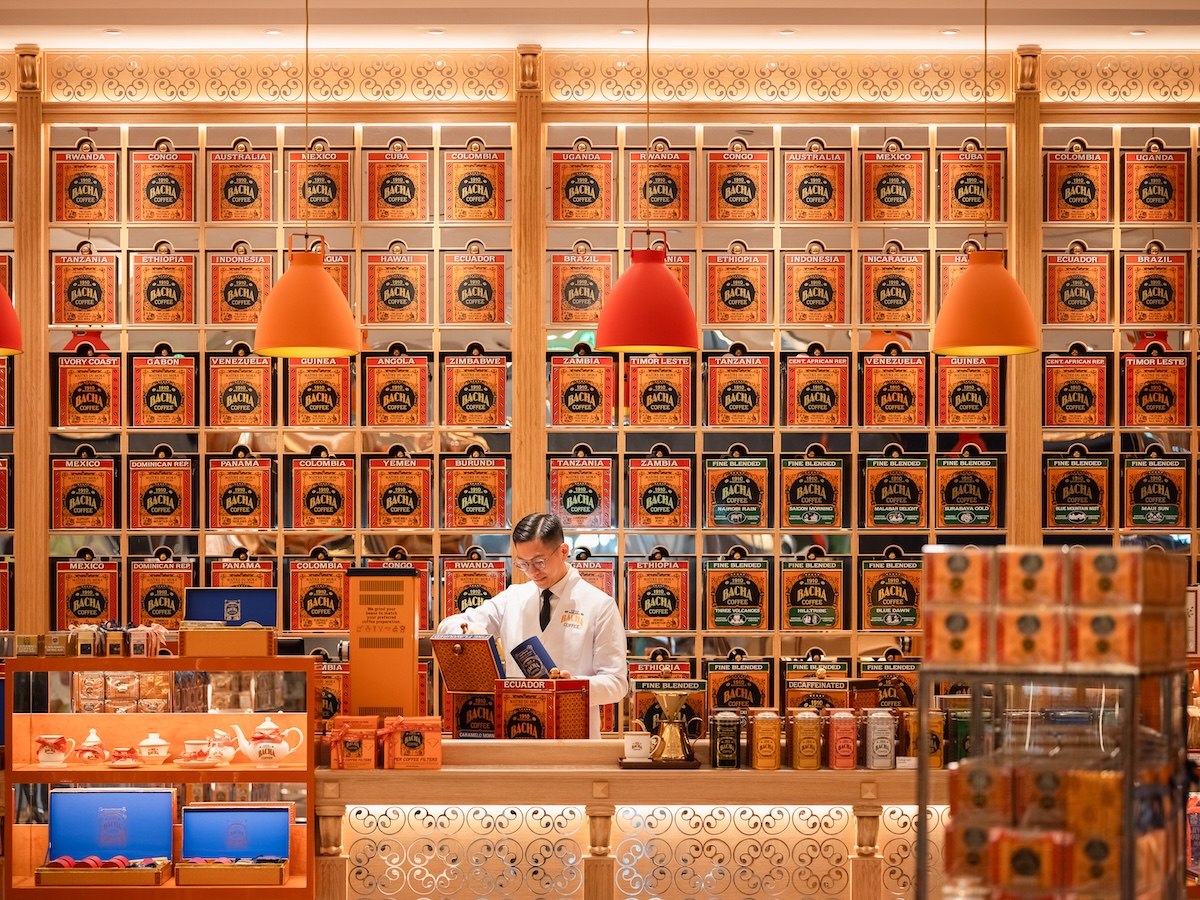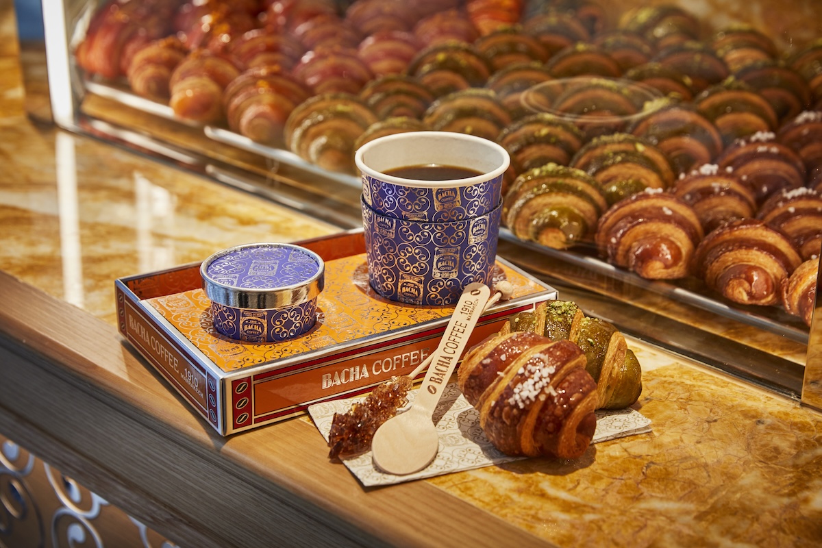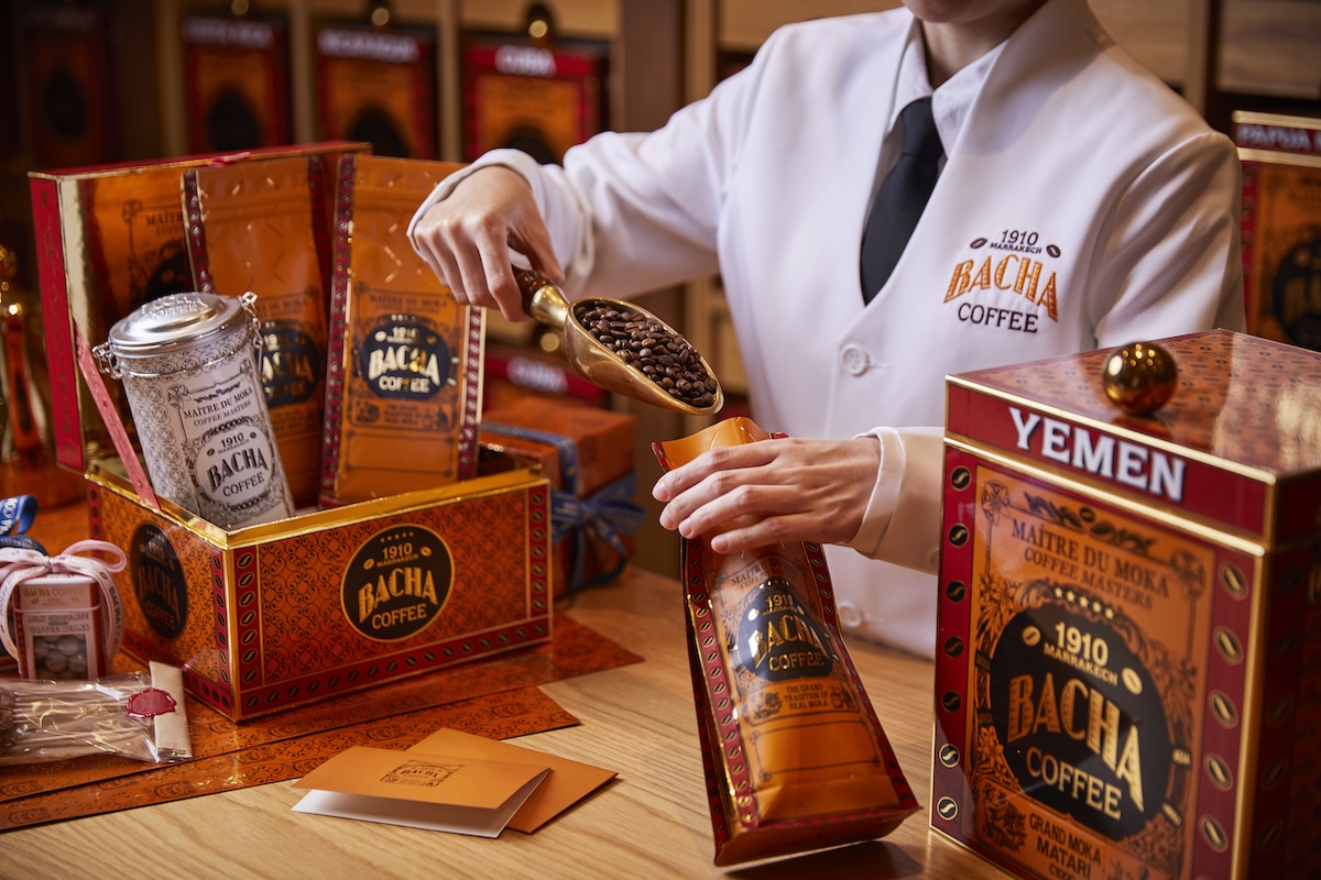 マラケシュ発コーヒー「バシャ. コーヒー(BACHA COFFEE)」(以下、バシャ)が12月、日本に上陸した。私はどちらかというと紅茶派だが、銀座・すずらん通りのシャッターに「バシャ」上陸の表示がされて以来、オープンを待ち望んでいた。マラケシュの宮殿で誕生したという歴史をはじめ、世界各地から集めたコーヒー約200種類そろえる専門性、エキゾチックでレトロなブランドの世界観から、ずっと試してみたいと思っていた。「バシャ」は、いわば、同じ通りに銀座本店を構える紅茶ブランド「マリアージュ フレール(MARIAGE FRERES)」のコーヒー版のような存在。19年には、イエローのパッケージで知られる「TWGティー」を手掛けるシンガポールのV3グルメが買収し、中東やアジアを中心に出店を加速している。日本では、「TWGティー」などを輸入販売する東急フロントグルメが手掛ける。ここでは、「バシャ」のブランドの歩みや同ブランドが提唱する“コーヒーガストロノミー”について紹介する。