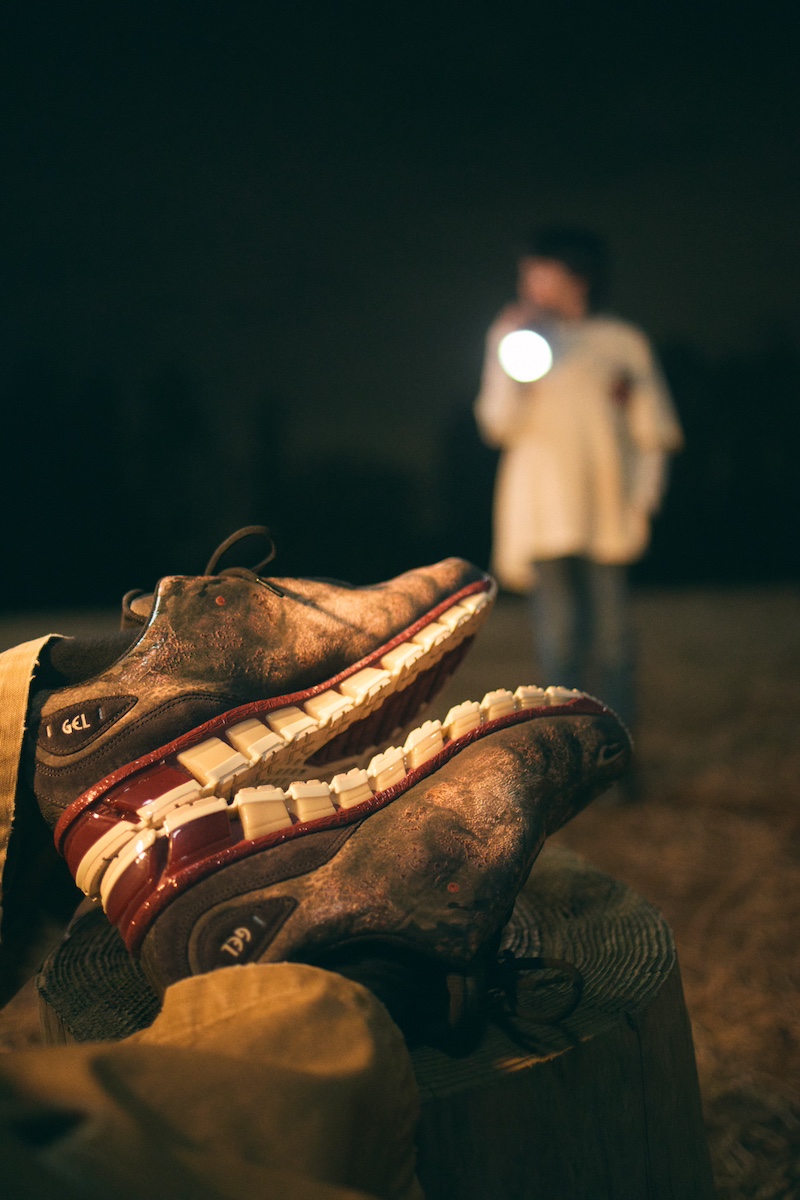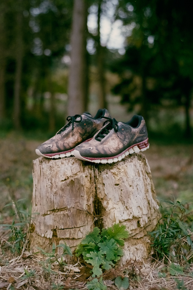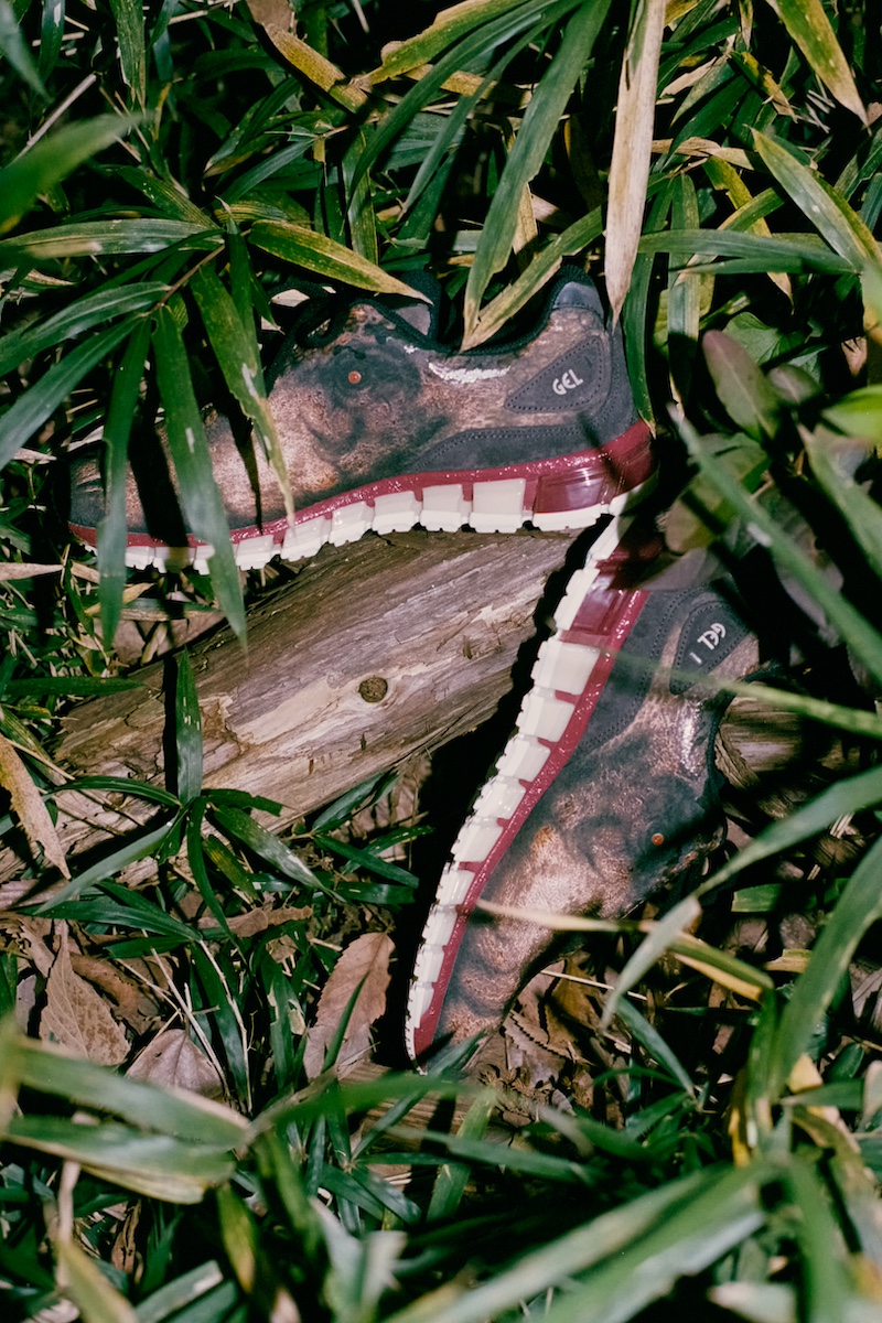 今回のコラボレーションのテーマは“ジュラ紀の世界観”。アッパー全体には恐竜の頭部を描いた大胆なグラフィックプリントを配置。3Dプリント加工によって恐竜の肌のような凹凸感を表現し、さらにウレタン素材の立体的な配置により、恐竜頭部の輪郭が浮かび上がるような設計が特徴。これは「アシックス」が追求してきた精緻な成形技術と機能美によって生まれたディテールもので、遊び心のあるデザインの奥に確かなスポーツテクノロジーが反映されている。