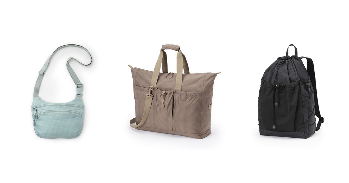 ラインアップは、“撥水 リップストップ リュックサック”(全4色、各4990円)と“撥水リップストップ ミニ ショルダーバッグ”(全4色、各2990円)、“撥水 リップストップ ショルダーバッグ”(全4色、各3990円)、“撥水 リップストップ ボストンバッグ”(全2色、各6990円)の4型をそろえる。今回の“リップストップ”シリーズは、軽くて丈夫なリップストップ生地を使用し、普段使いはもちろん、春夏のレジャーシーンでも使用できる。また、かさばらず旅行のサブバッグとしても活用できる。
