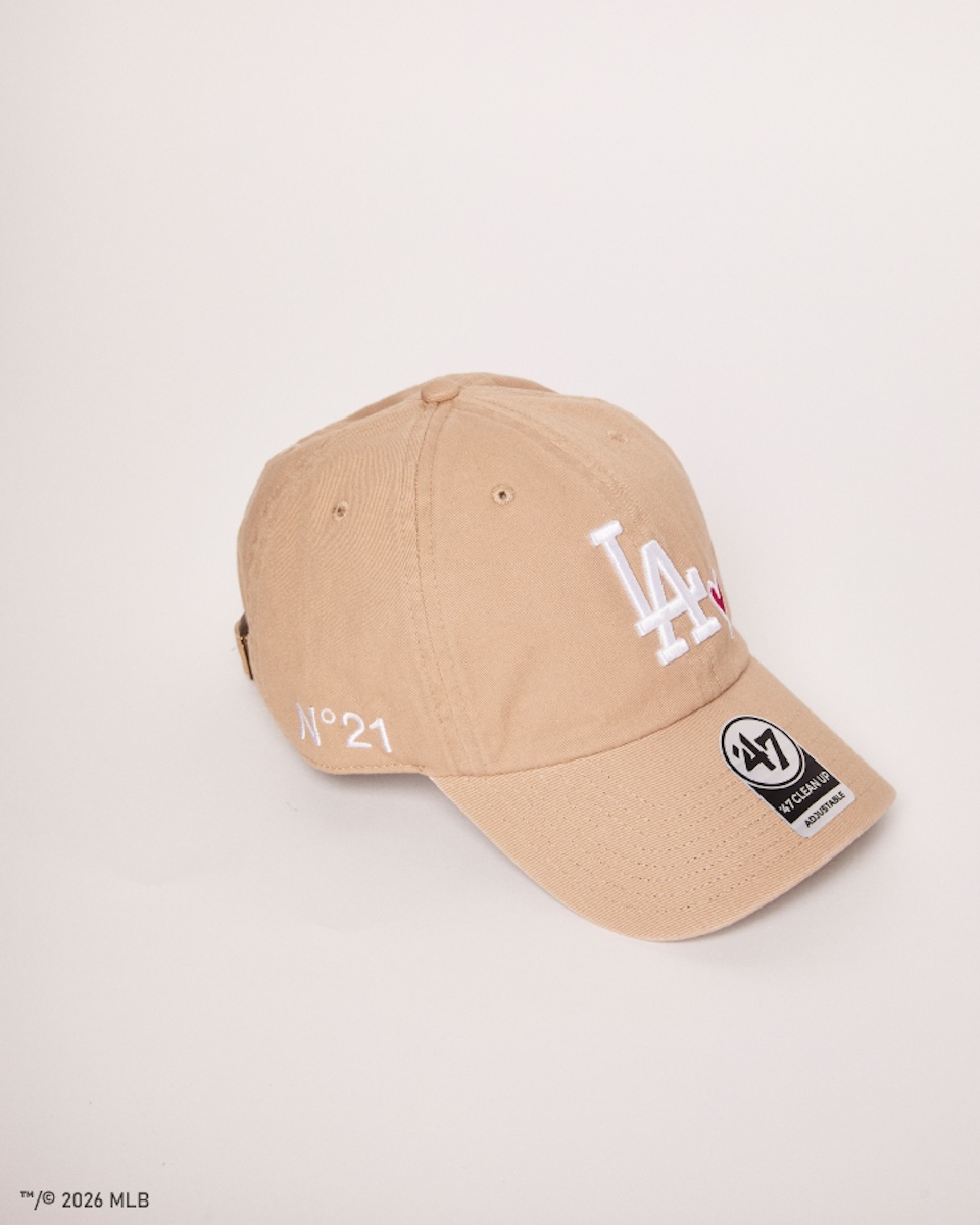 本コラボレーションで実現した日本限定のキャップコレクションは、「フォーティセブン」を代表する定番シルエット“クリーンナップ”をベースに、“ロサンゼルス・ドジャース”、“ロサンゼルス・エンゼルス”、“ニューヨーク・ヤンキース”、“サンディエゴ・パドレス”、“ボストン・レッドソックス”の5球団をフィーチャーした。各球団のロゴに“N21”のロゴやパームツリーの刺しゅうをあしらった。一部アイテムにはハートやローズのモチーフを施した特別仕様も展開する。