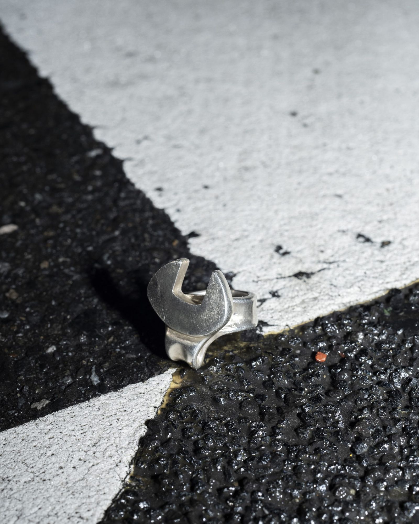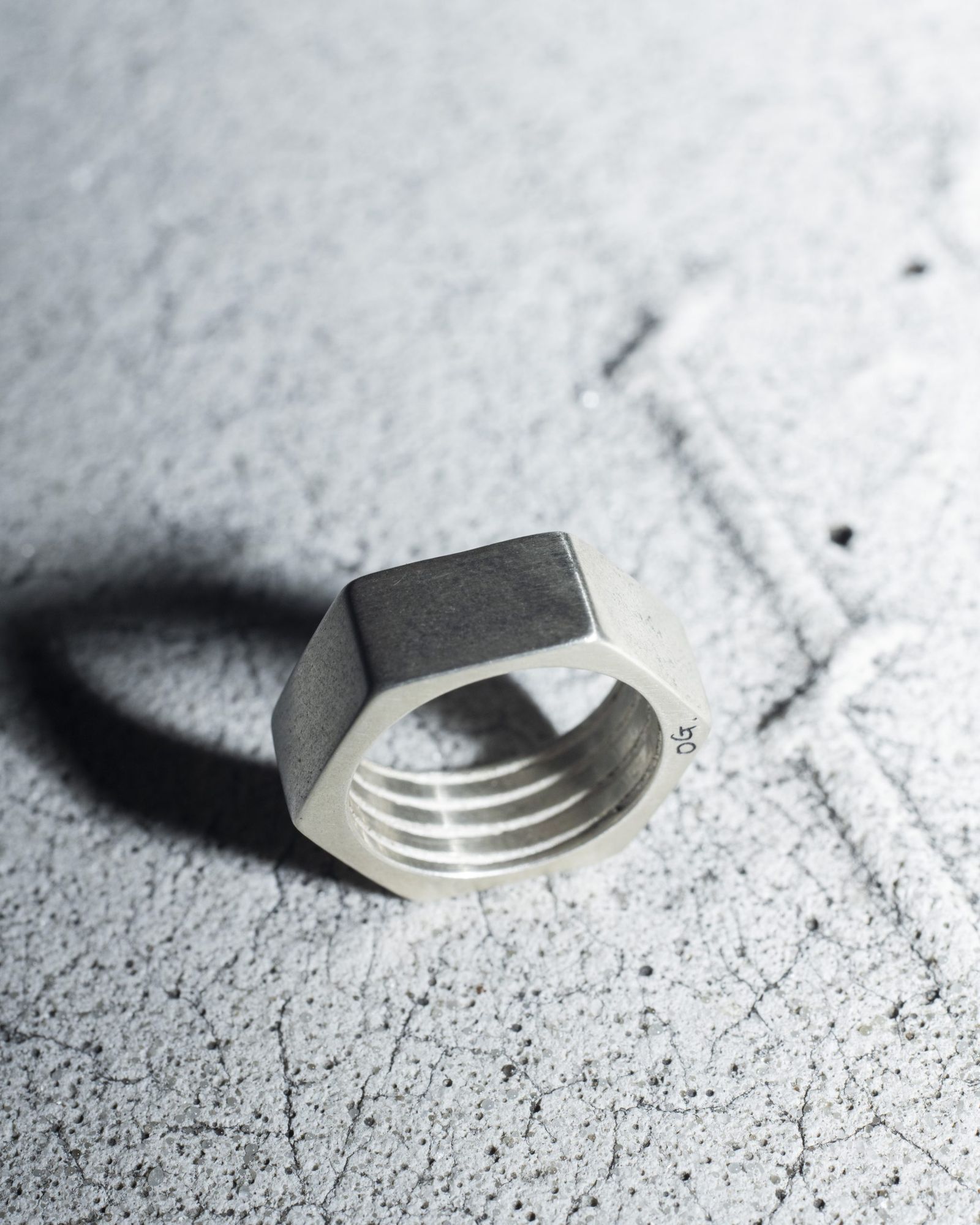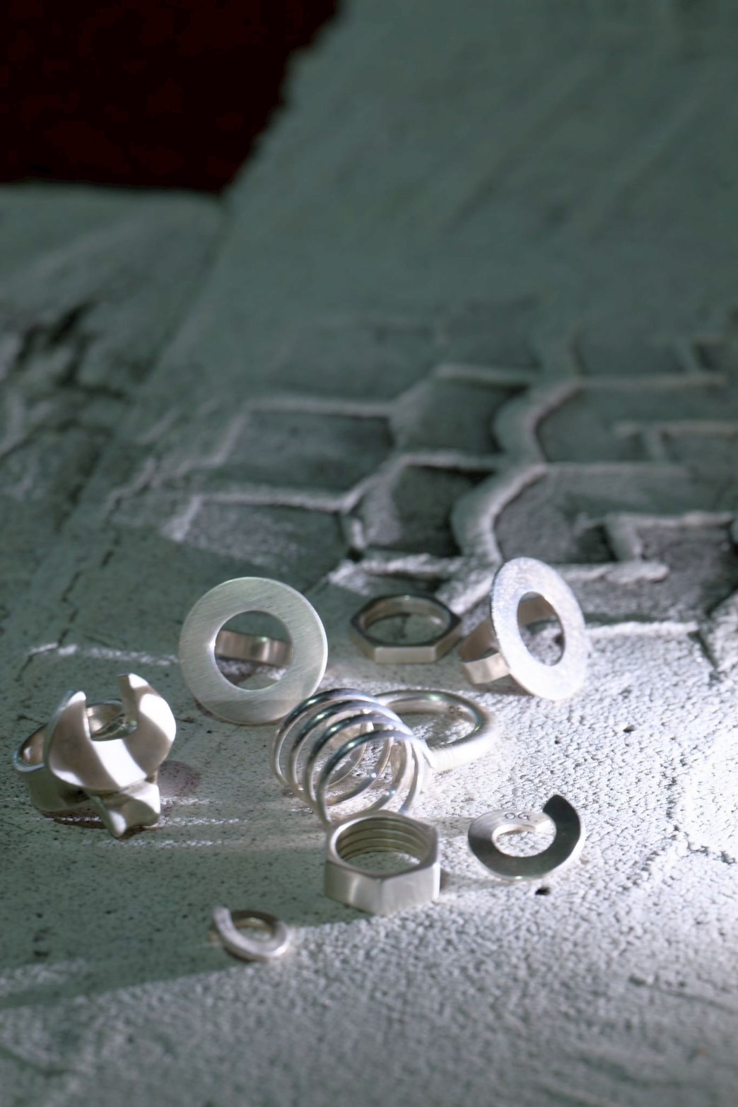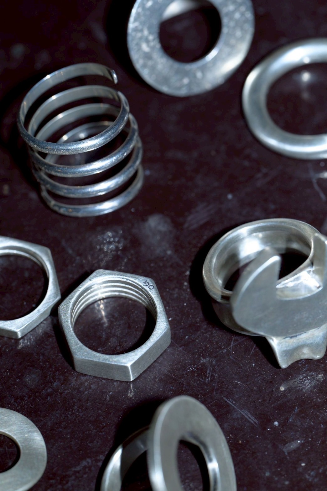 Tシャツはチャコールグレーとブラックの2色展開で、価格は9900円。ジュエリーは“Nut Ring” “Spring Ring”“Washer Ring”など、シルバー素材を用いた複数型をそろえる。いずれもライブ開催を記念したタイミングでの限定展開となる。