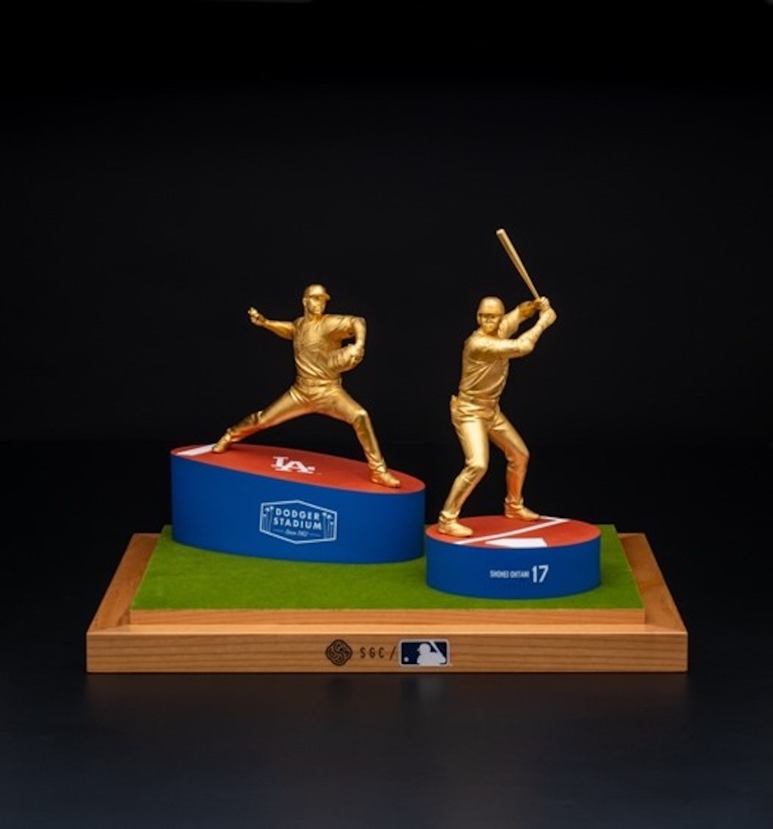 大谷翔平の等身大黄金像を二刀流そろえて初展示