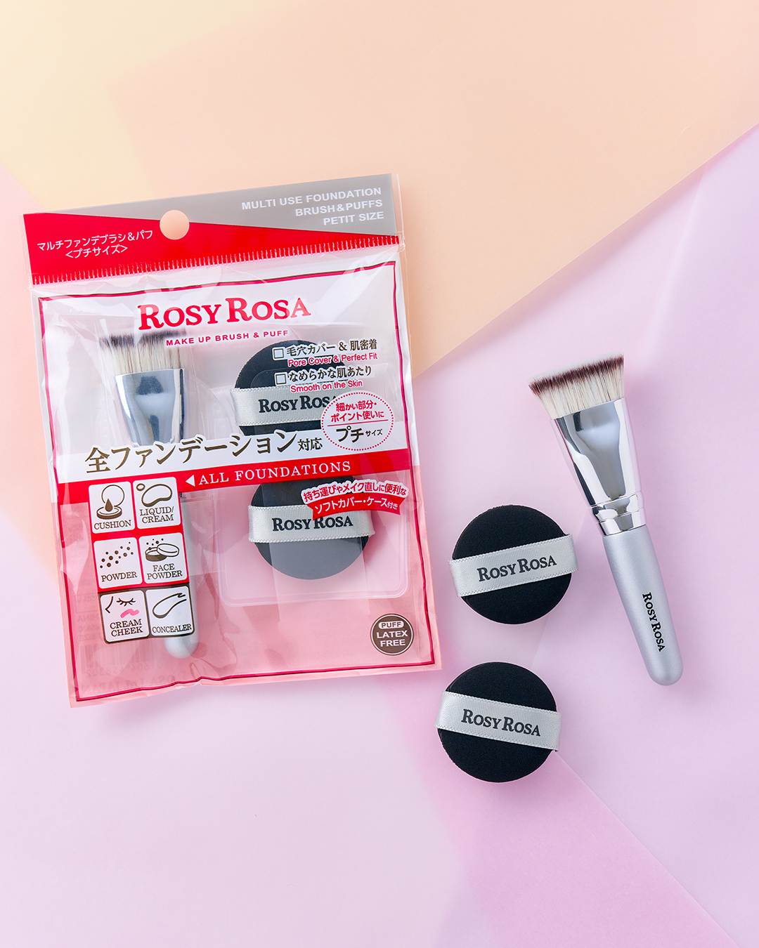 「ロージーローザ(ROSYROSA)」は2月21日、“全ファンデーション”に対応する“マルチファンデブラシ”と“マルチファンデパフ”のミニサイズセット“マルチファンデブラシ&パフ〈プチサイズ〉”(1210円)を発売する。