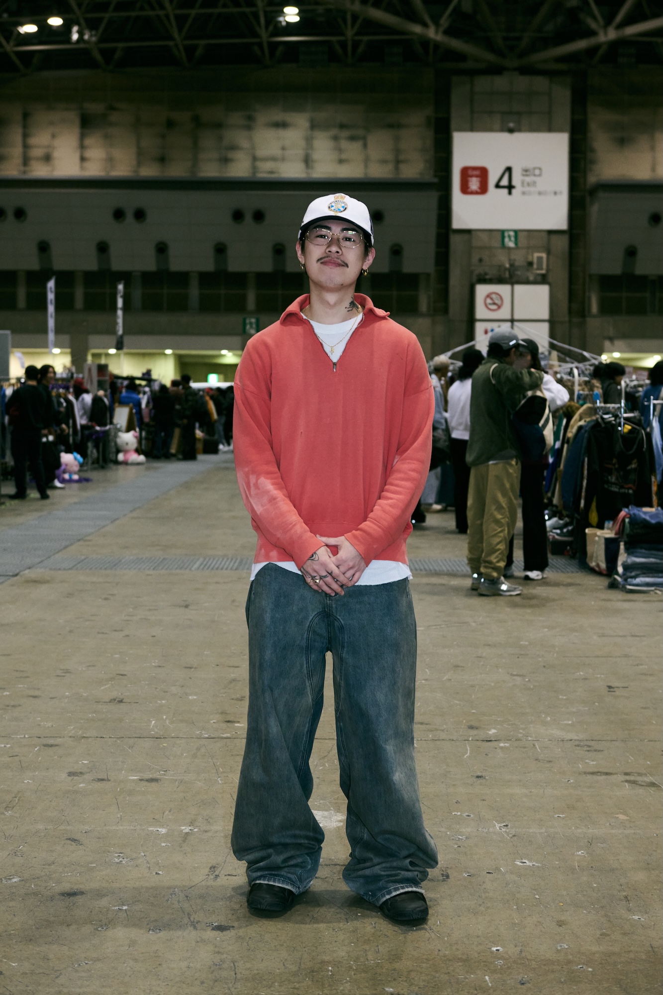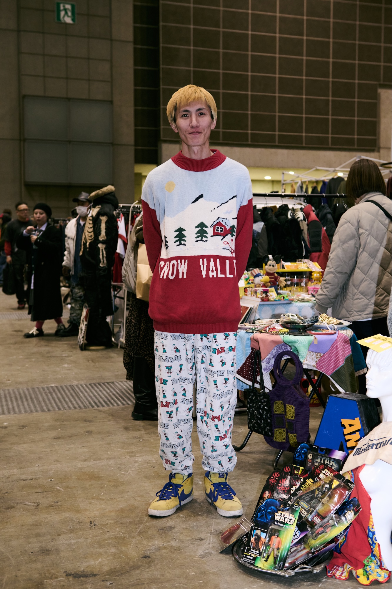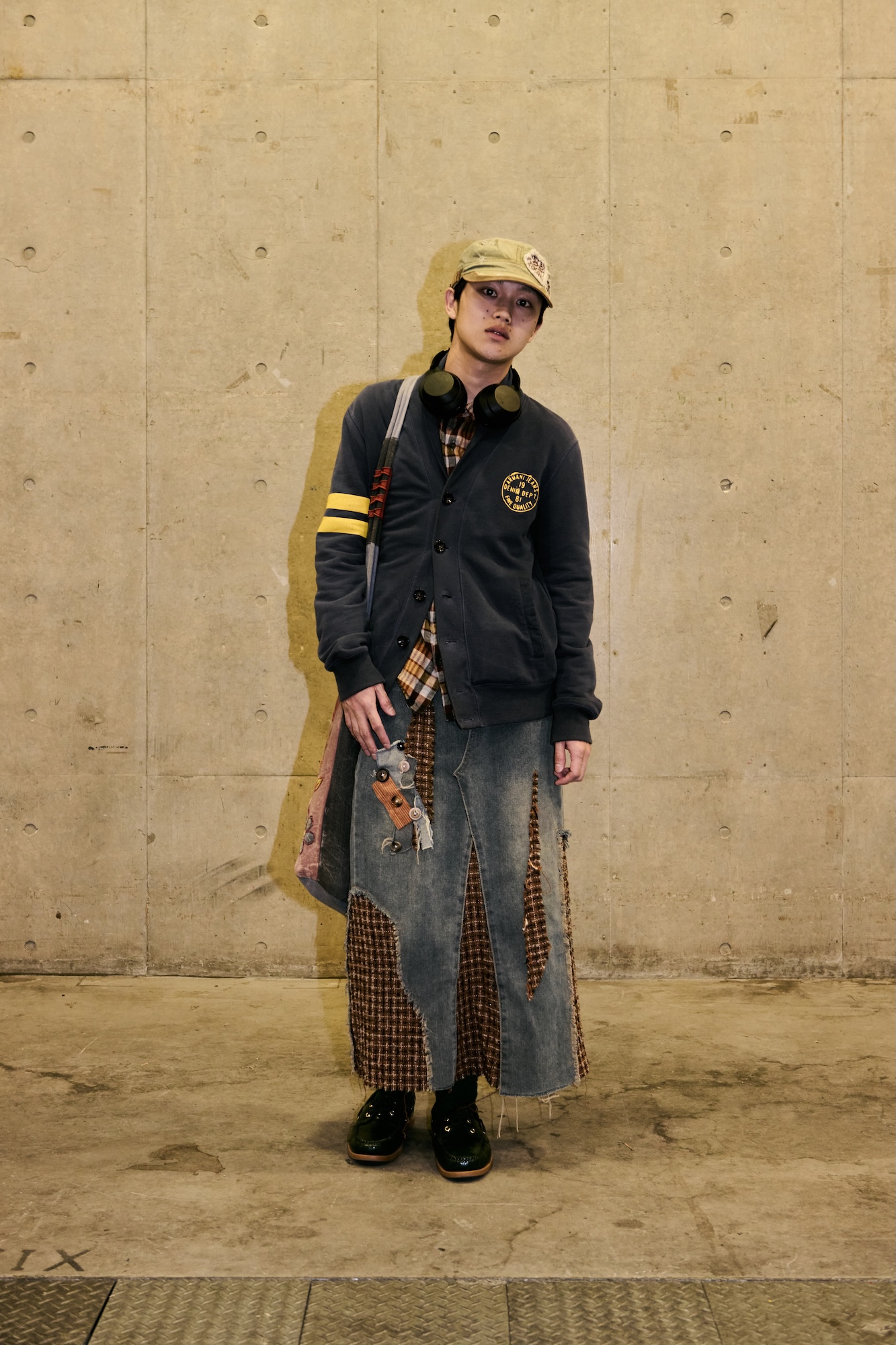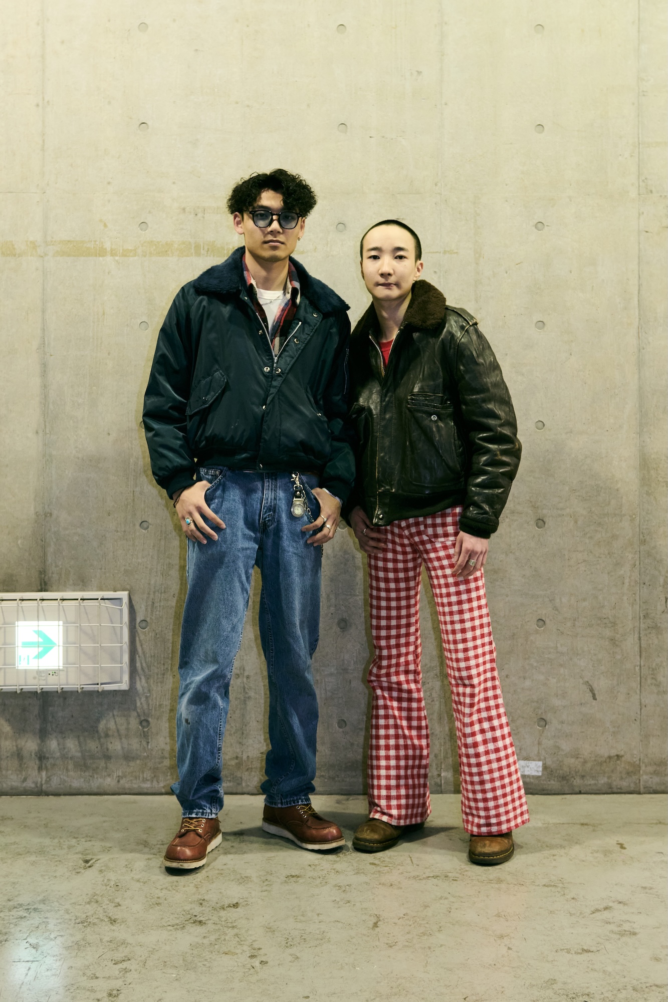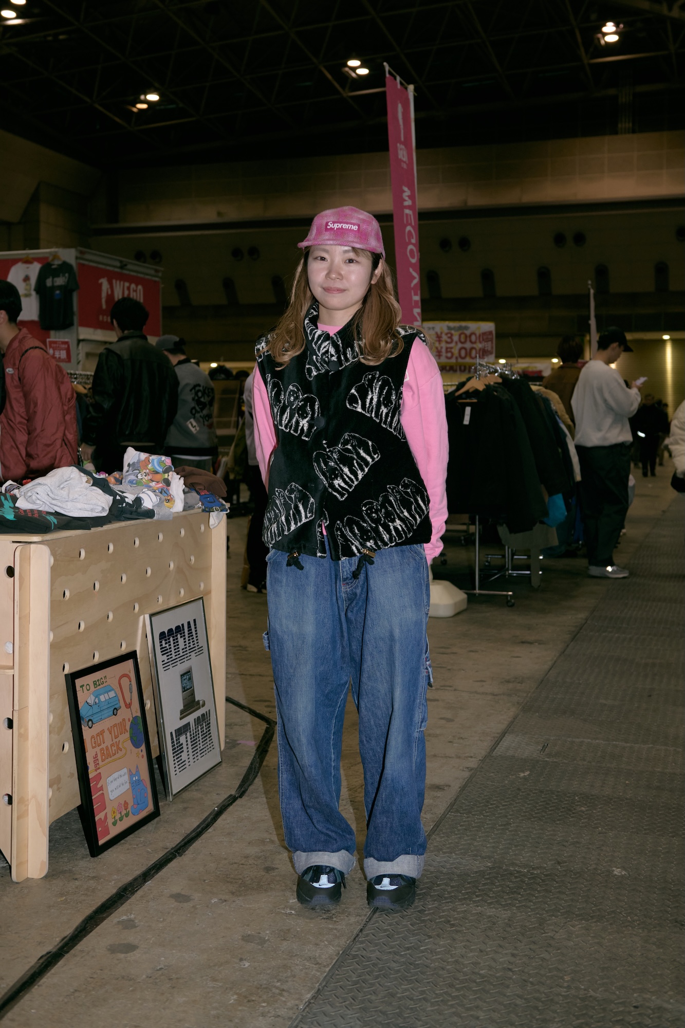 来場者はトップスに古着を取り入れ、足元には昨今注目を集めている「グラウンズ(GROUNDS)」を合わせるなど、古着ミックスのスタイリングを楽しむ人が目立った。色あせたバンドTやジャケットといった定番アイテムに、個性的なフォルムのシューズを合わせることで、ほどよく力の抜けた今っぽい着こなしに仕上げているのが印象的だった。