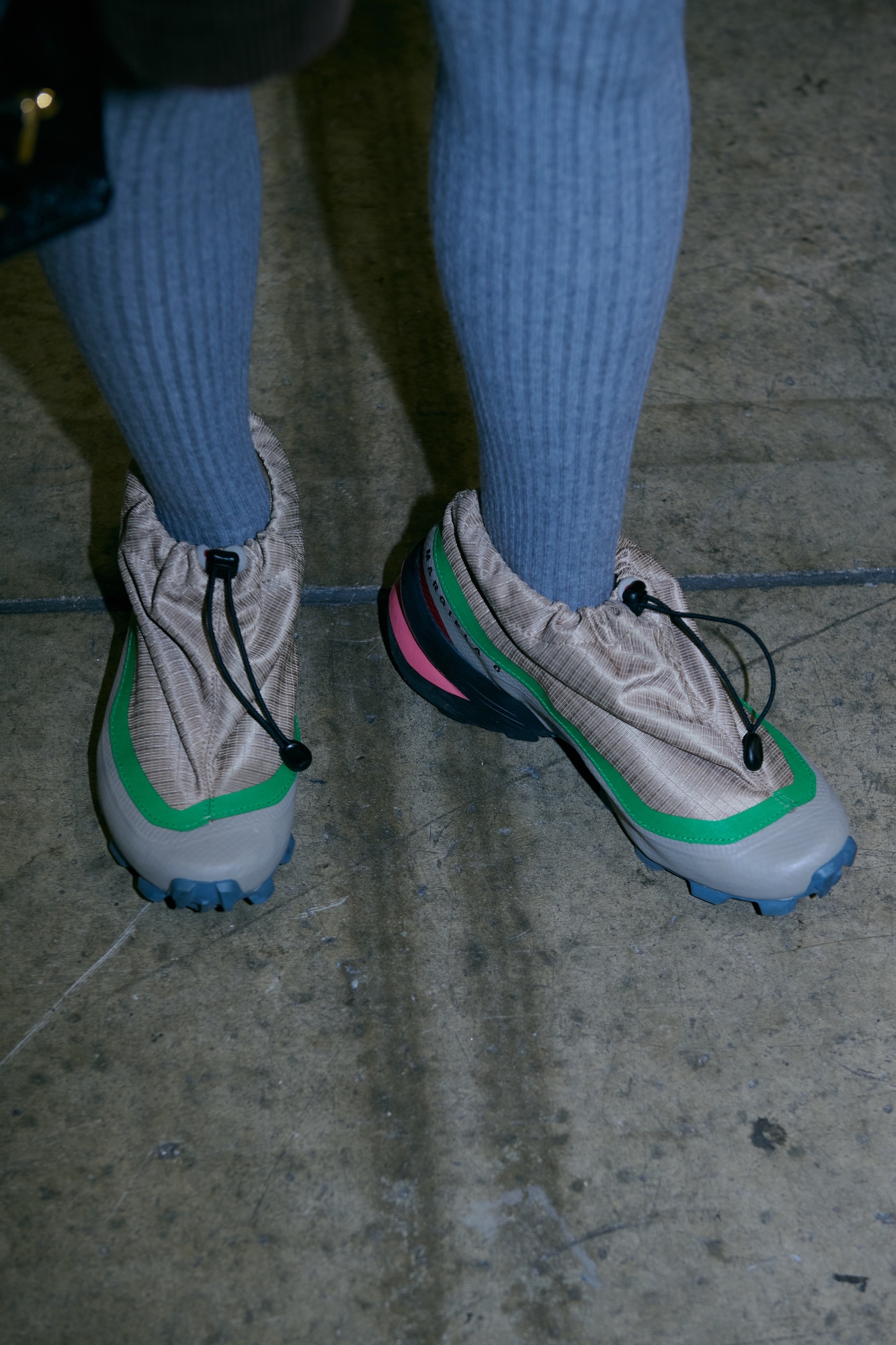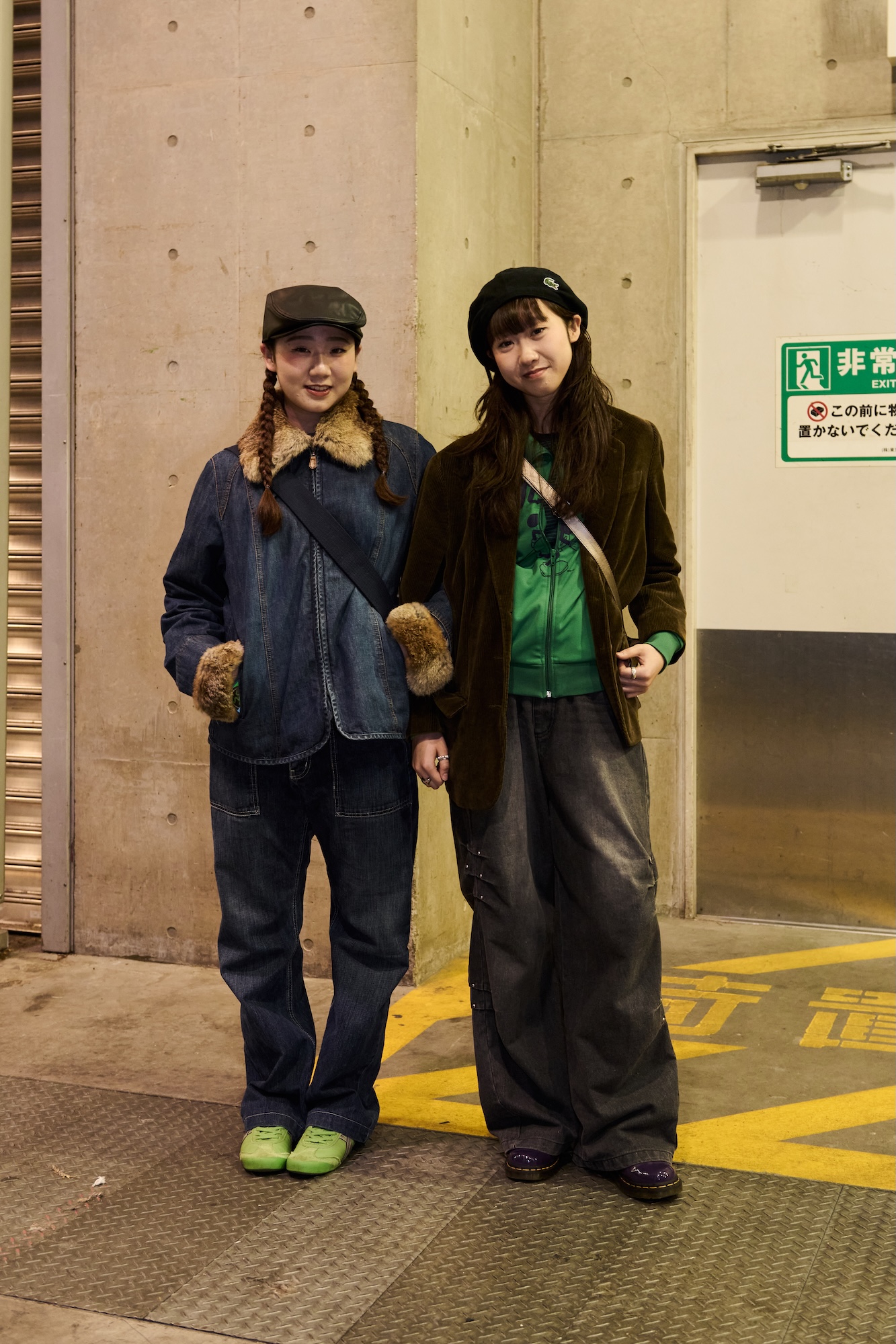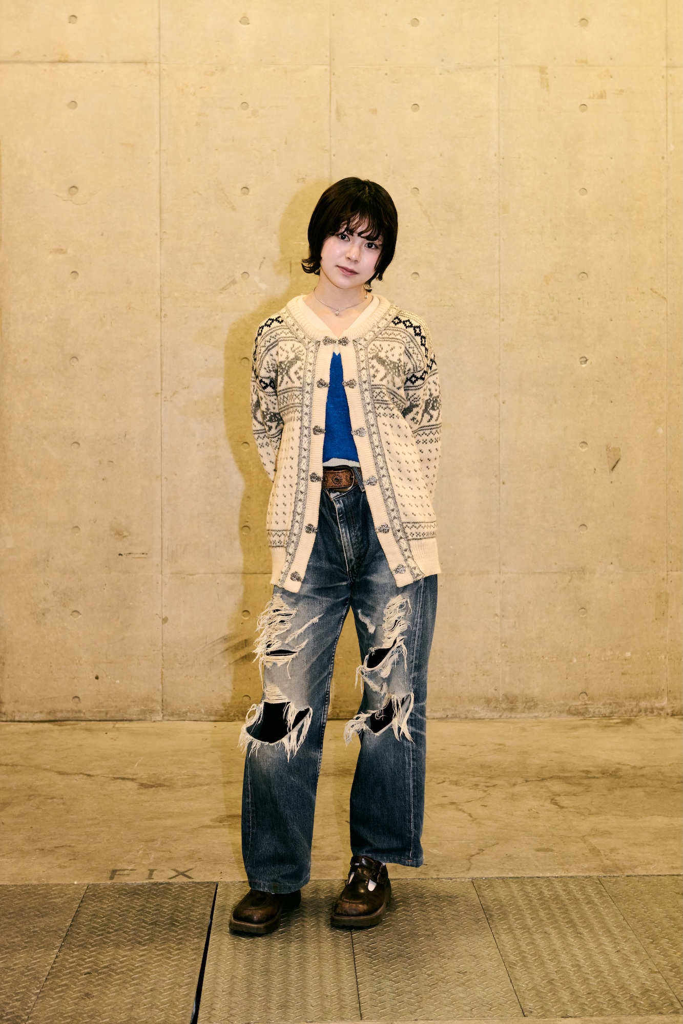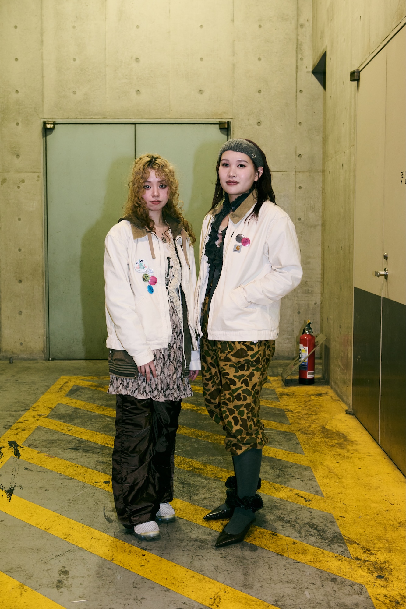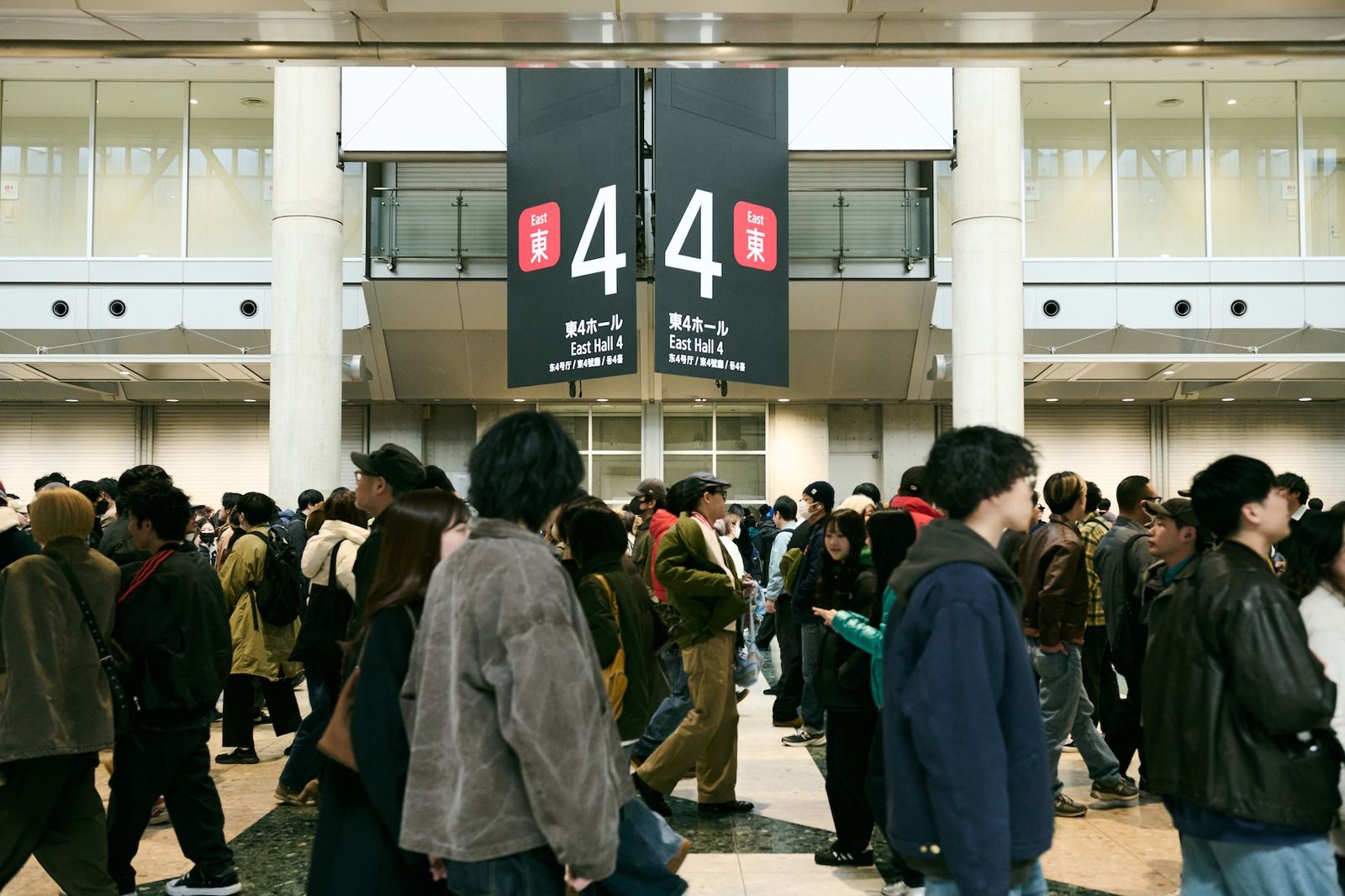 来場者はトップスに古着を取り入れ、足元には昨今注目を集めている「グラウンズ(GROUNDS)」を合わせるなど、古着ミックスのスタイリングを楽しむ人が目立った。色あせたバンドTやジャケットといった定番アイテムに、個性的なフォルムのシューズを合わせることで、ほどよく力の抜けた今っぽい着こなしに仕上げているのが印象的だった。