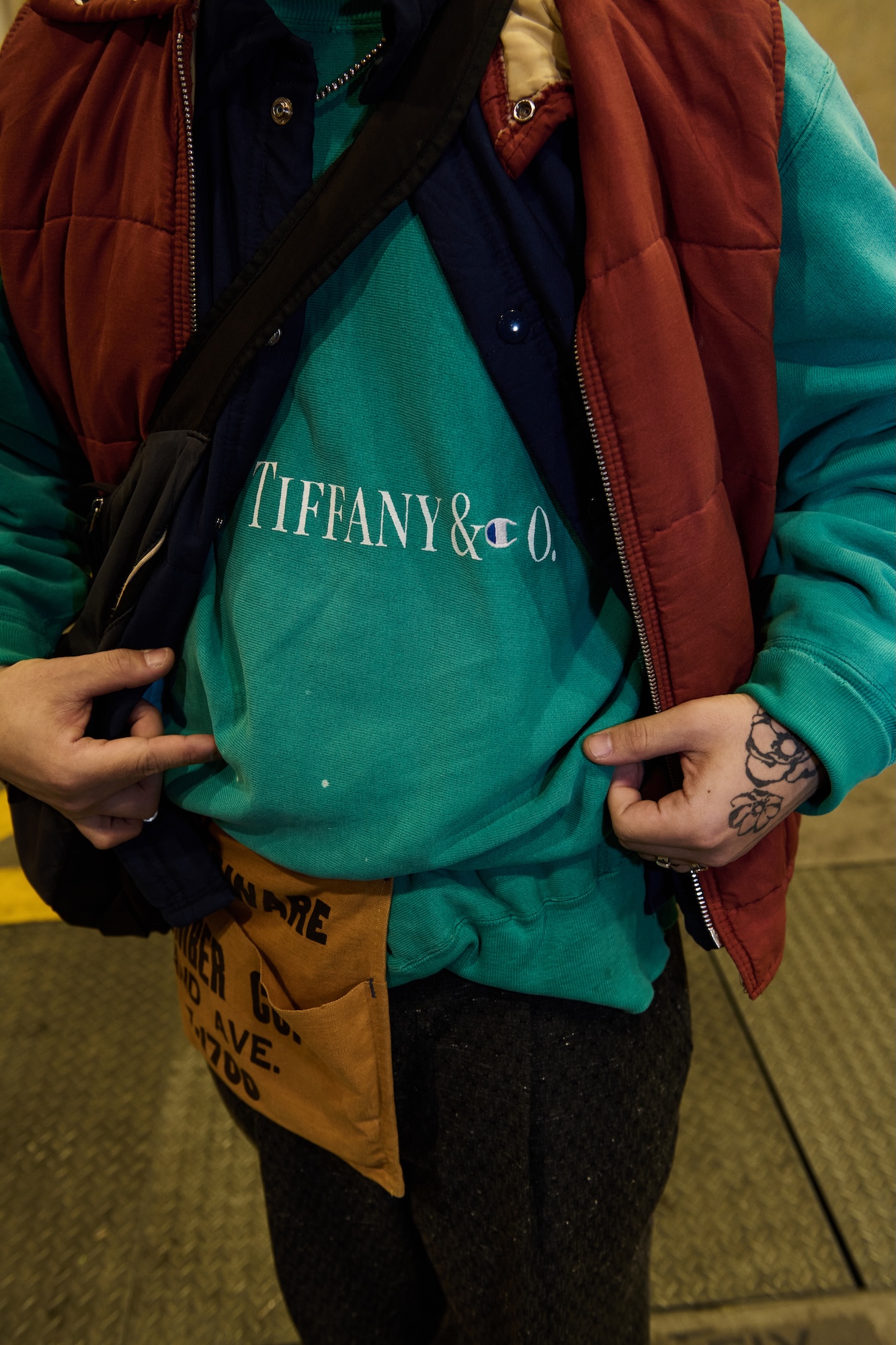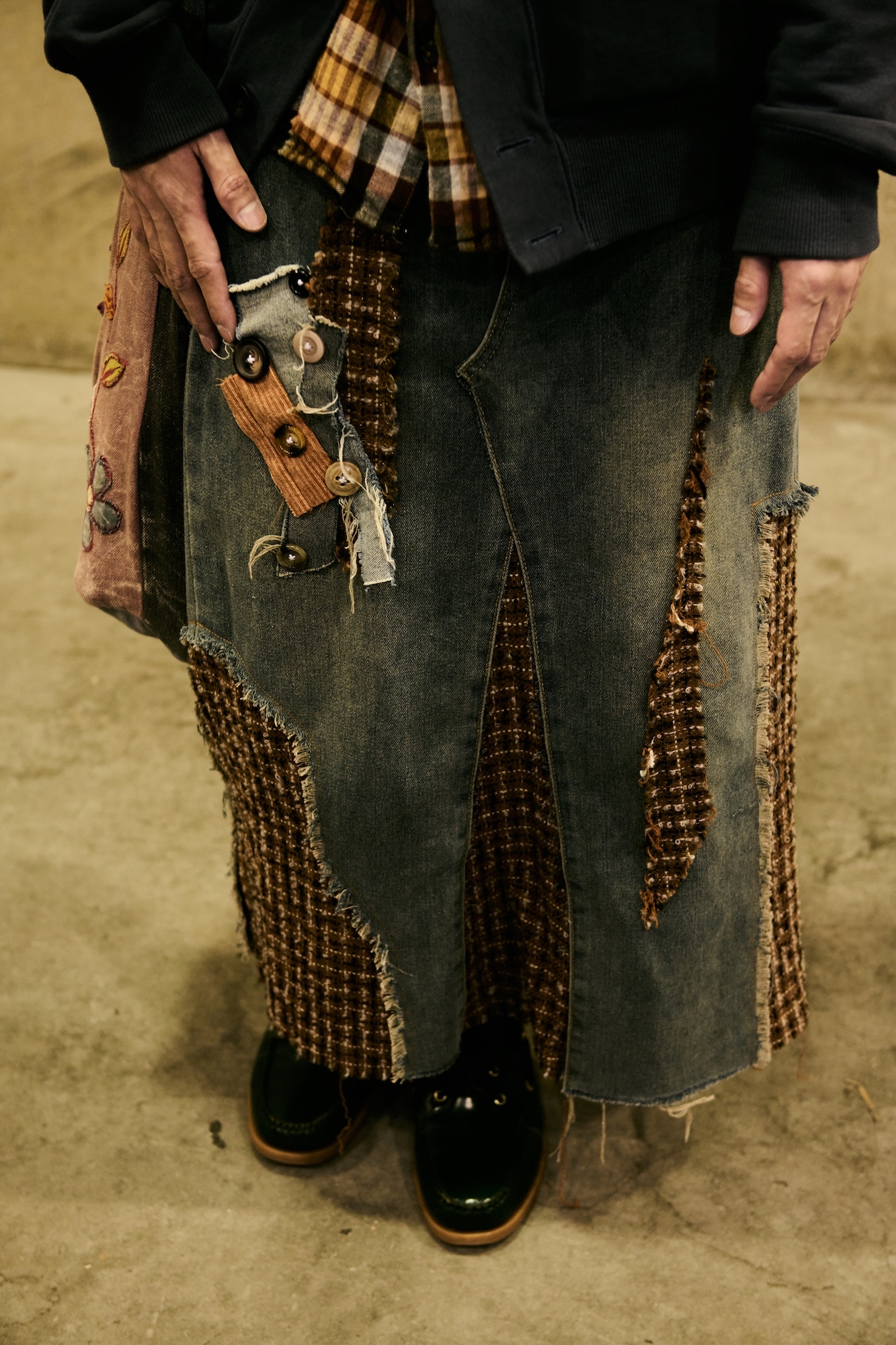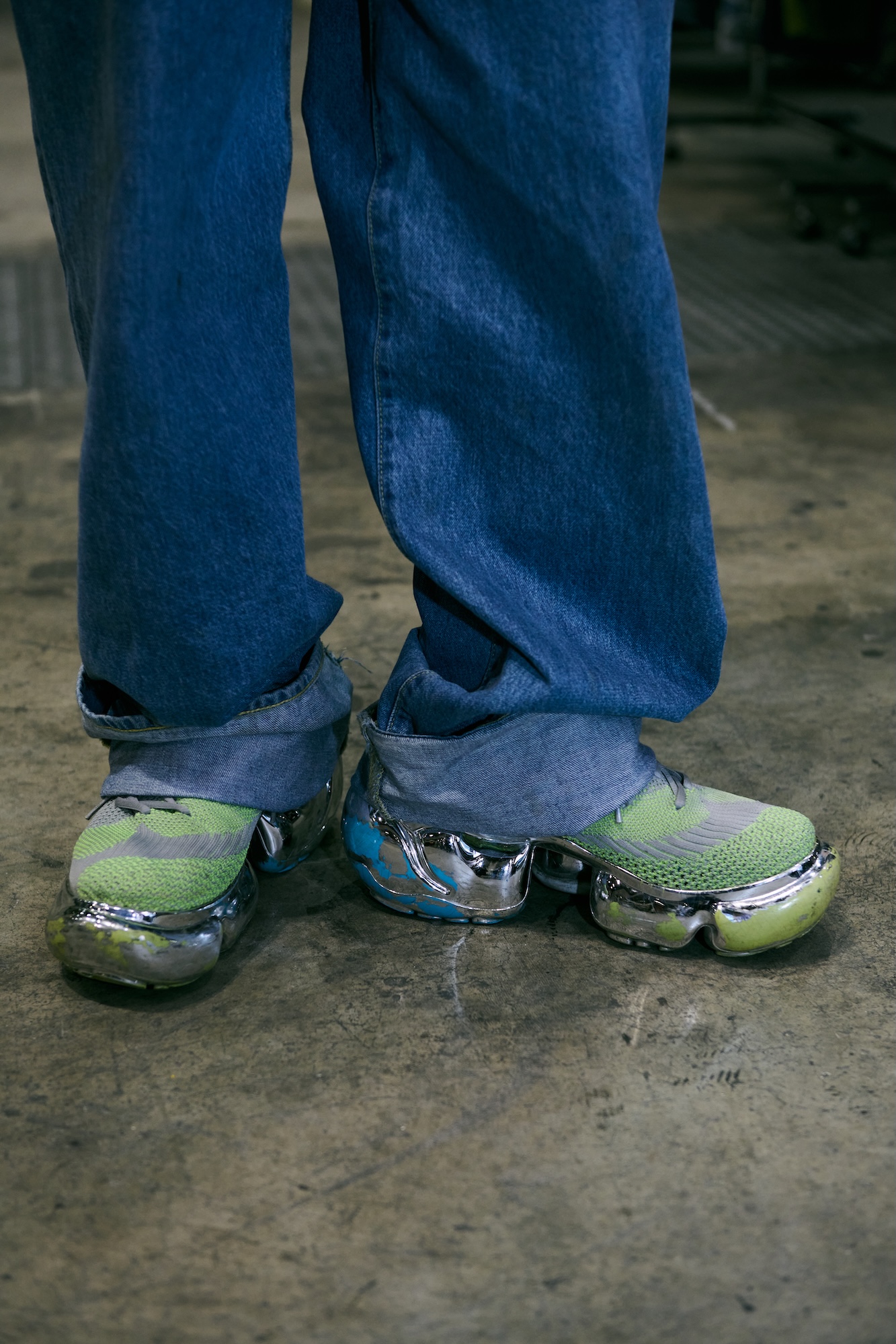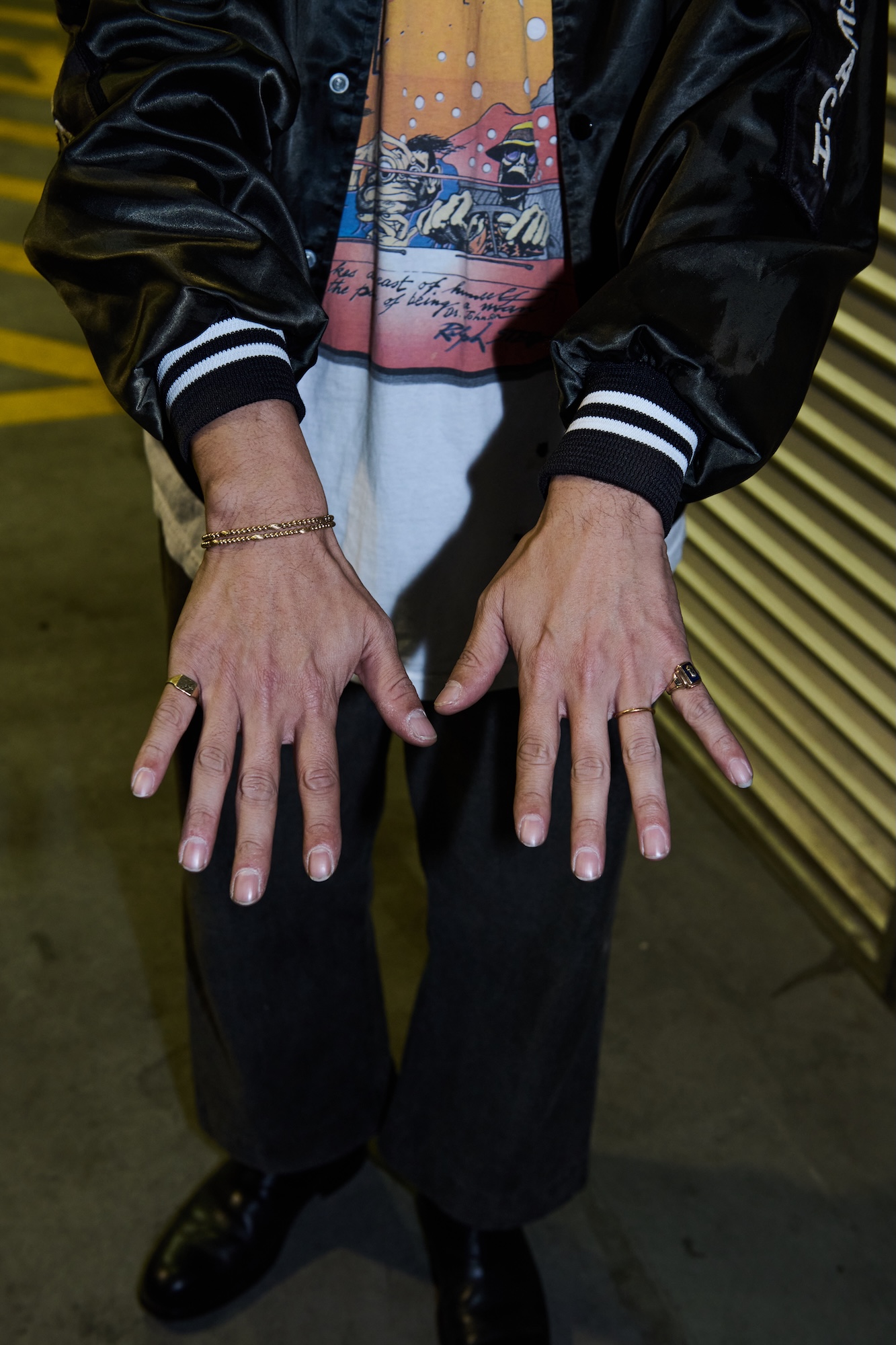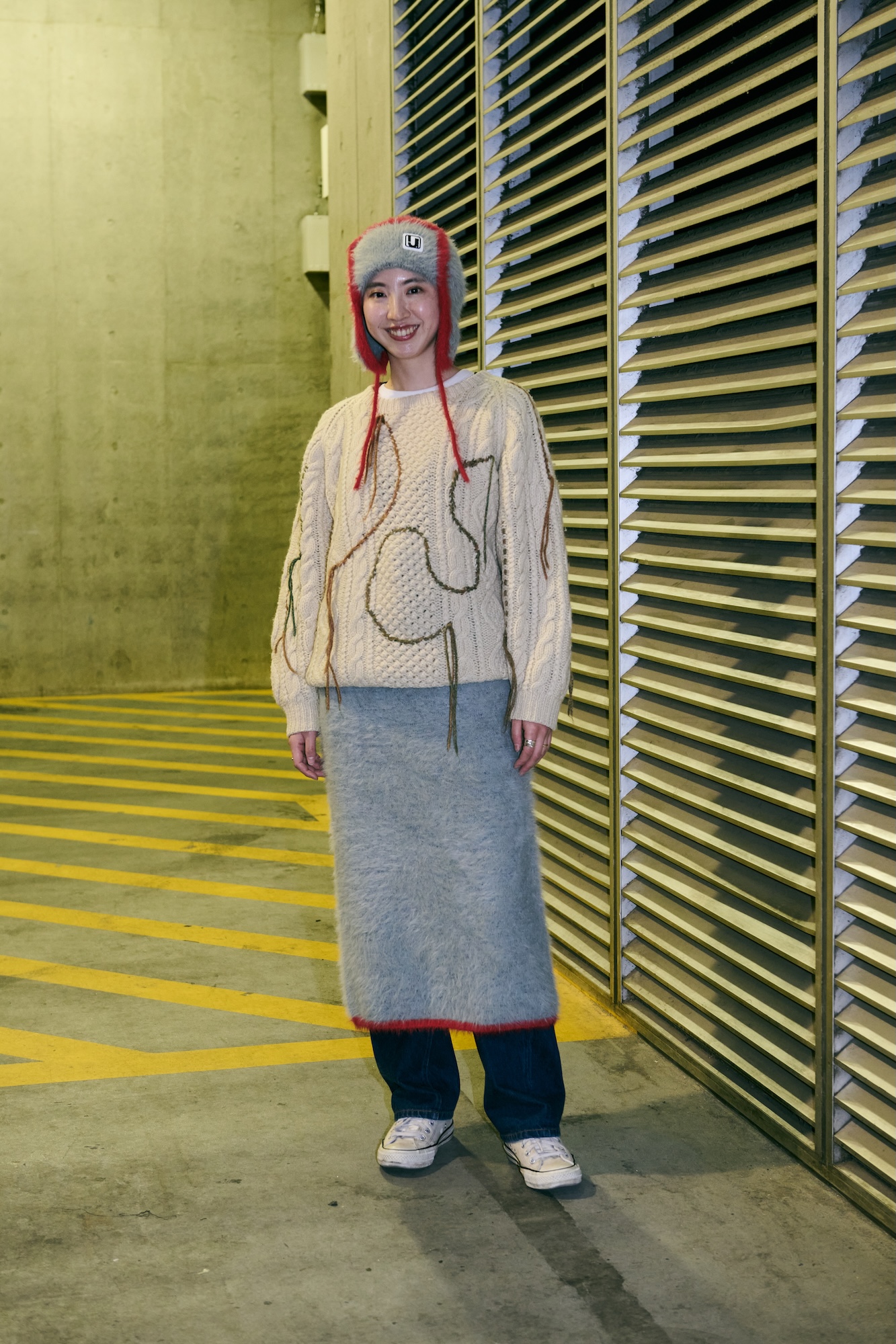 来場者はトップスに古着を取り入れ、足元には昨今注目を集めている「グラウンズ(GROUNDS)」を合わせるなど、古着ミックスのスタイリングを楽しむ人が目立った。色あせたバンドTやジャケットといった定番アイテムに、個性的なフォルムのシューズを合わせることで、ほどよく力の抜けた今っぽい着こなしに仕上げているのが印象的だった。