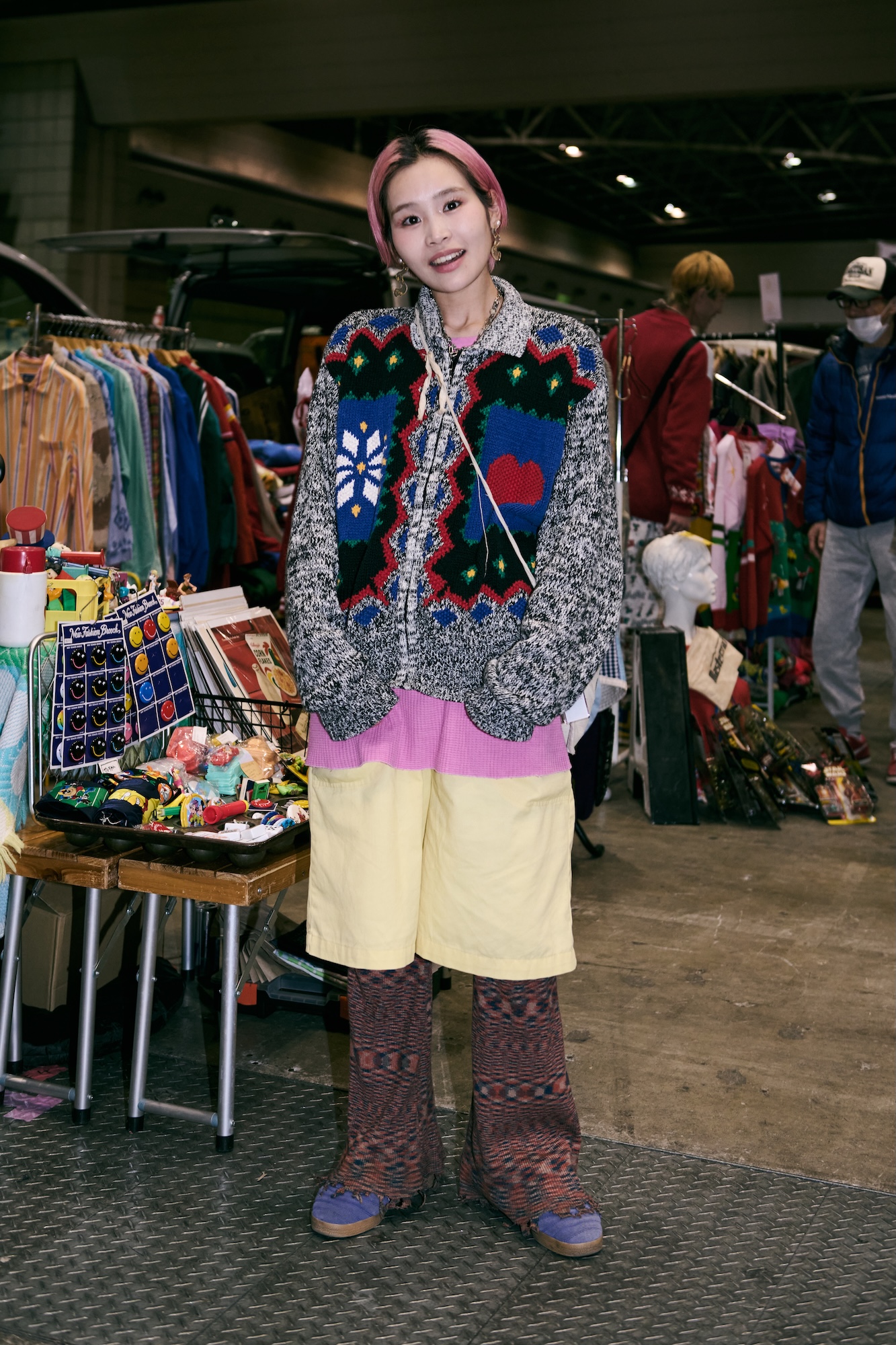 また、ビンテージの無地ジャケットに自身でフェード加工を施したワッペンを縫い付けたリメイクや、アランニットに毛糸を編み込み、糸端を垂らしたディテールを取り入れたリメイクなど、DIYによるカスタマイズを楽しむ来場者の姿もスナップした。