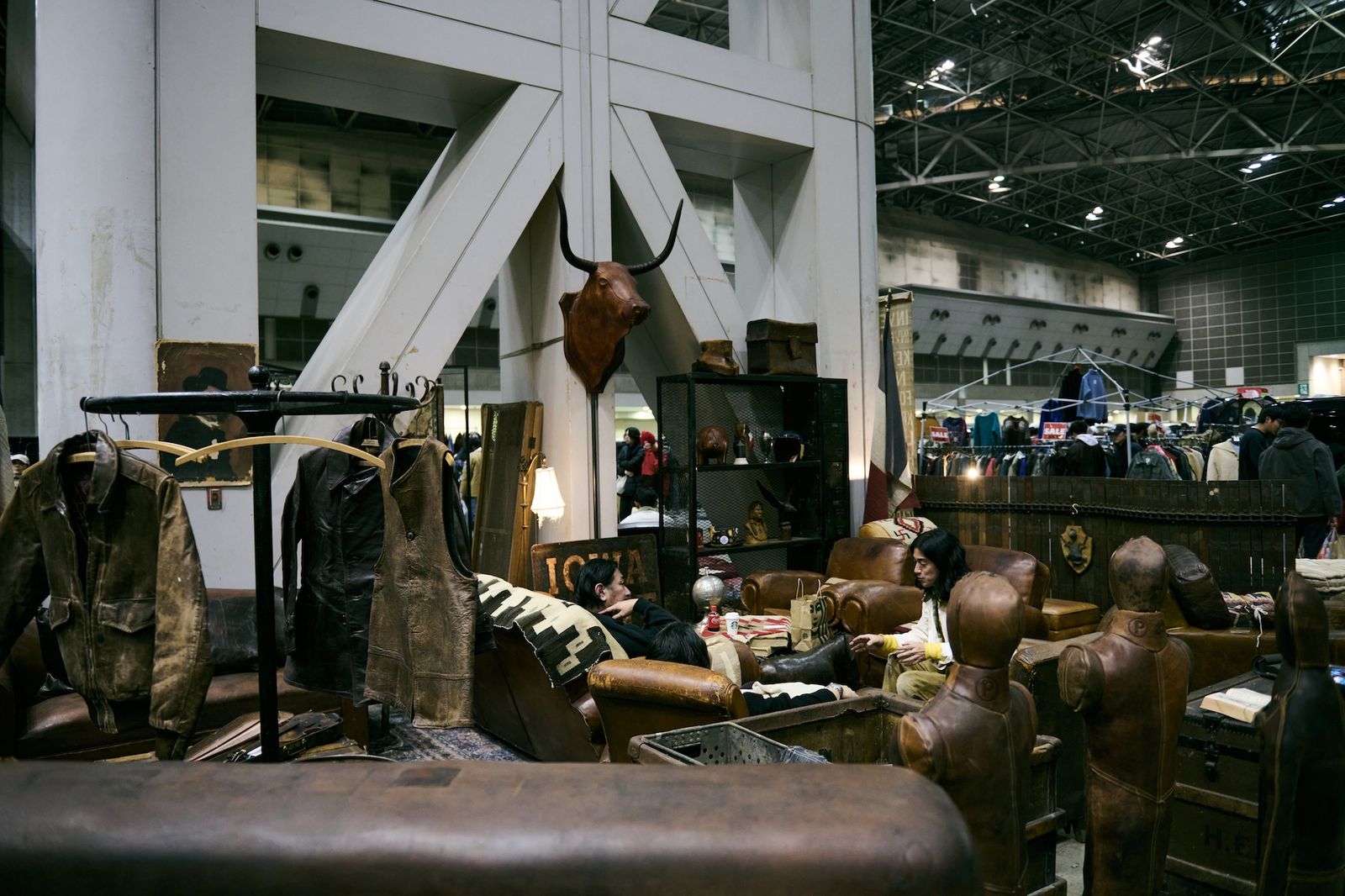 今回は雑貨の販売が少なく、重衣料を主軸とする出店者がメインとなった。根強い人気を誇る「パタゴニア(PATAGONIA)」や「カーハート(CARHARTT)」を目玉商品に訴求する店舗が多く見受けられた。アウトドアウエアを中心に買い物を楽しんでいた来場者は、「2万円ほどの価値があるオールドアウトドアウエアが2000円のコーナーに並んでいたりと、いいアイテムが手頃な価格でゲットできる。バックパックがパンパンになるほど買ってしまった」とコメント。両手にショッピングバッグを複数抱える人の姿もあった。