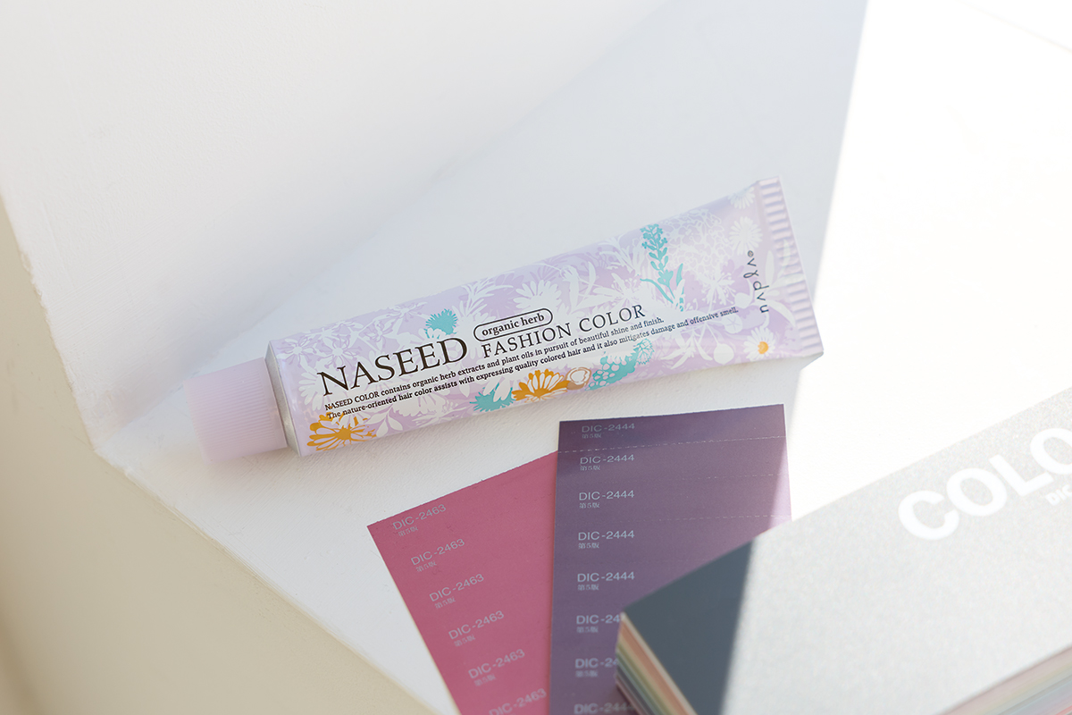 「さらに『ナシード』は、カラー剤特有のアルカリのにおいが残りにくいなど機能の高さにくわえて、褪色後のダメージが少ないのもありがたい。一番の魅力はカラー展開の豊富さ。色を任せてくださるお客さまには、今なら暖色系の春夏色、暖色系の秋冬色とトレンドを踏まえた提案をすることが多い。色のバリエーションが豊富なため、一人一人に似合う色を一つのブランド内で作り出せるのは何よりも強み。お客さまにとっても美容師にとっても選択肢が無限に広がる」。