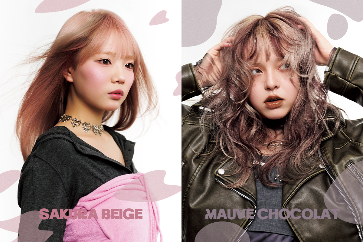 “モーヴショコラ”は、パープルが潜む“新・王道ブラウン”。複雑な履歴の髪が増えている中、いかに艶をまとわせるかが重要になっている。同色は程よく含む紫がブリーチ履歴や褪色による黄みを抑え、くすみ知らずのブラウンを表現。ナチュラルトーンからのトーンアップ使用では、紫みを感じて艶を感じさせる。他色との相性も良く、メインとしても補色としても使用できる使い勝手の良さも特徴だ。今求められる新色2色の魅力を、ヘアカラーのトレンドをけん引するサロン「ミンクス(MINX)」と「ヌル(Null)」の人気美容師2人が、得意のデザインカラーで引き出す。