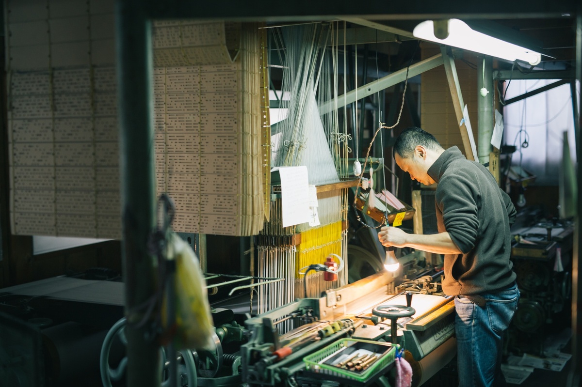 こうした背景から、2015年に創設されたメティエ ダール(LVMH Métiers d’Art)は、日本の優れたものづくりの継承と発展を目的として、2022年12月に世界で唯一の支部となるLVMH メティエ ダール ジャパンを日本に立ち上げました。 最初のパートナーとなったのが、岡山のデニム生地メーカー クロキ(下写真)で、その後、京都・西陣織ブランド「HOSOO」を手掛けるHOSOO COLLECTIVEが加わりました。
