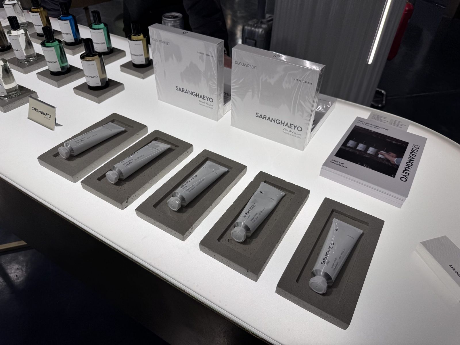 今シーズンの「ピッティ」のテーマは「モーション(MOTION)」。会場内にはフランス人建築家・彫刻家のマルク・レシュリエ(Marc Leschelier)によるインスタレーションが設置され、空間そのものが動きのあるアートとして来場者を迎える。展示はドレスクロージング、アウトドア、中韓ファッションなどにフォーカスした5つのセクションで構成。ニッチフレグランスにフォーカスしたエリア「ハイ ビューティー(HI BEAUTY)」を新設するなど、近年注力するライフスタイル提案をさらに強化した。