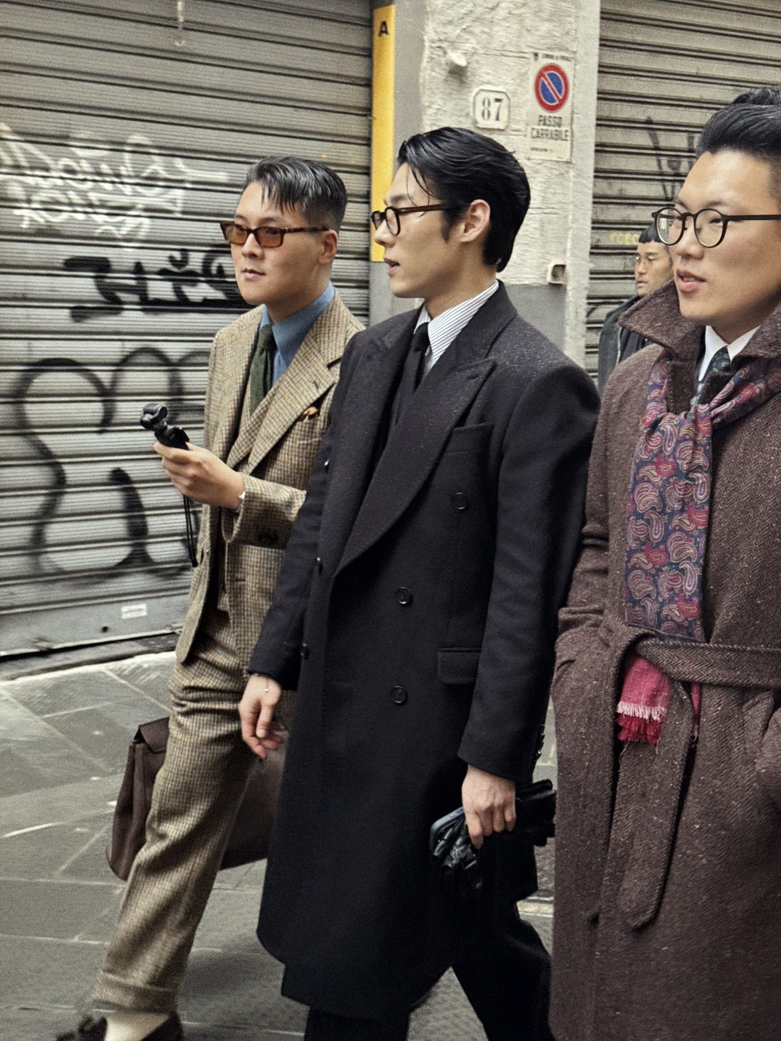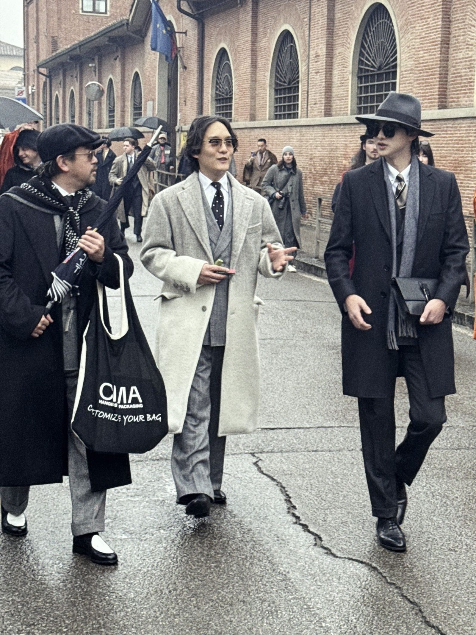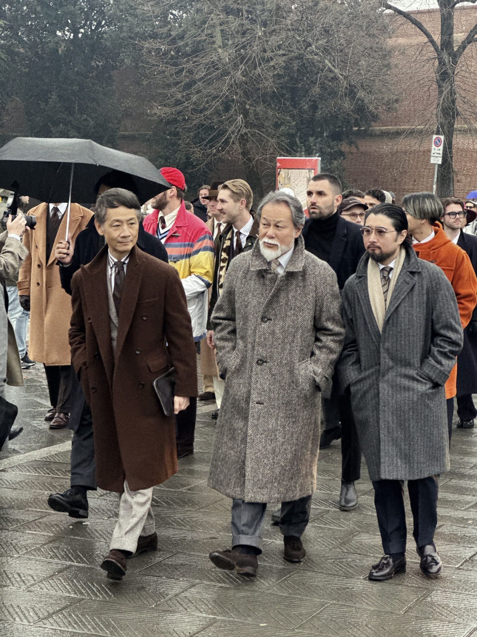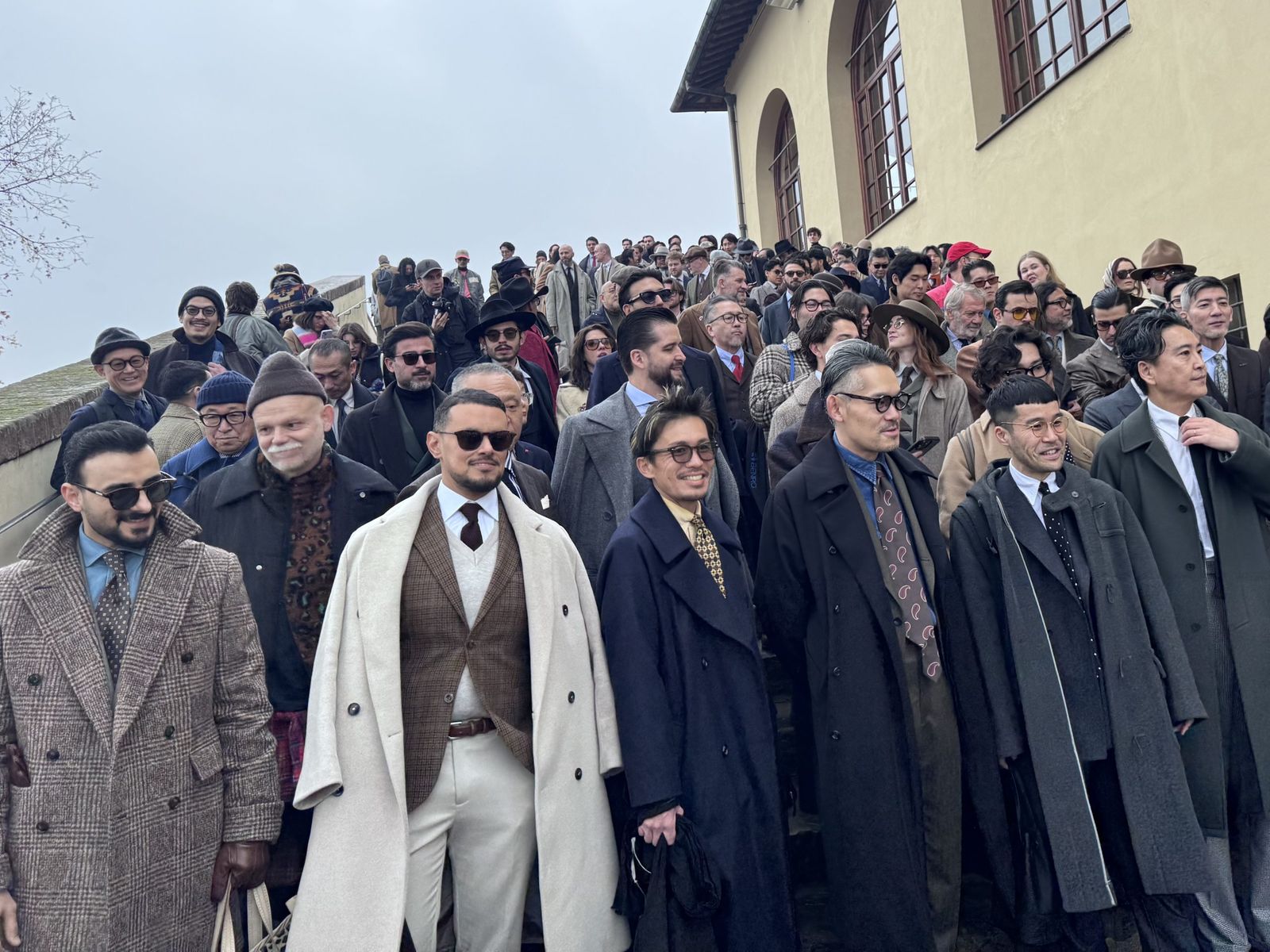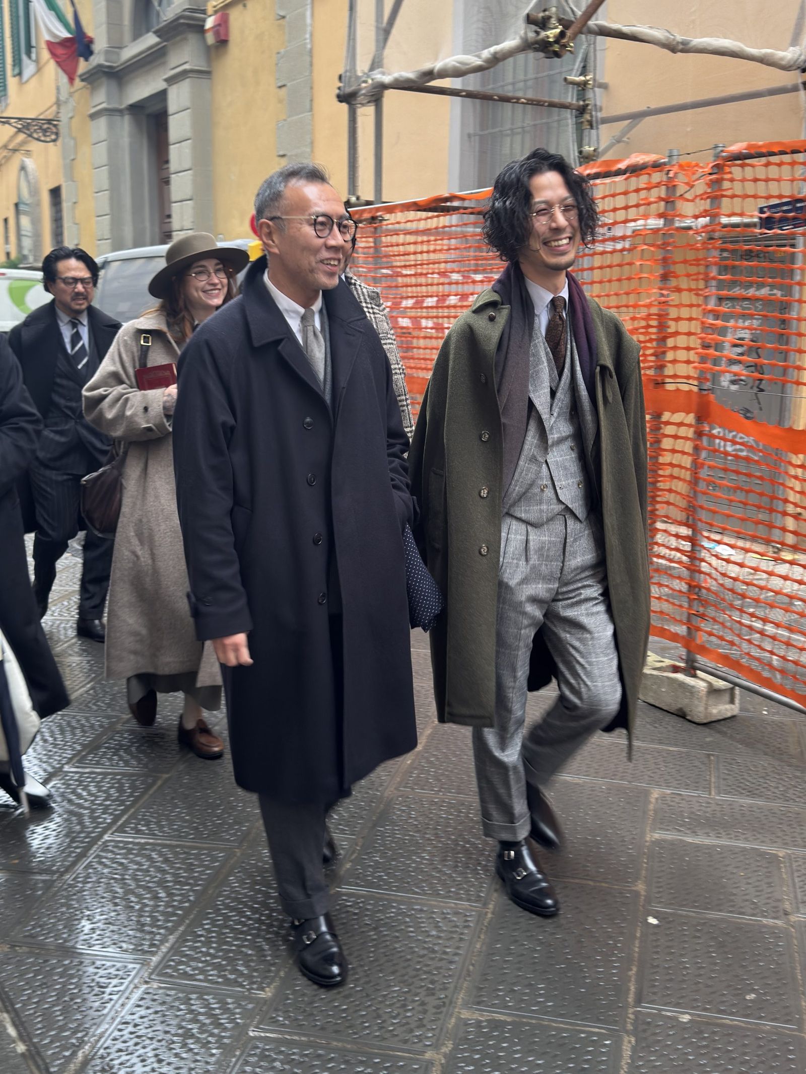 「背広散歩」はこれまで東京・浅草や大阪などで開催し、海外開催は今回が初。仕掛け人の一人である元ビームスPRの安武俊宏氏は、「コロナ禍でスーツを着る習慣がなくなり、『このままではスーツの文化自体がなくなってしまう』という危機感から始まった」と振り返る。「ビジネスや販促目的ではなく、純粋にスーツを楽しむ場として、SNSなどを通じて輪を広げてきた。ピッティというドレスクロージングの“聖地”での開催は念願だった」と感慨を深めた。