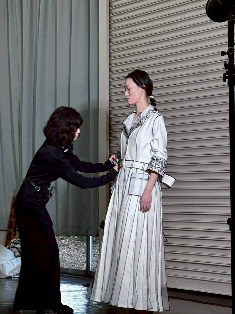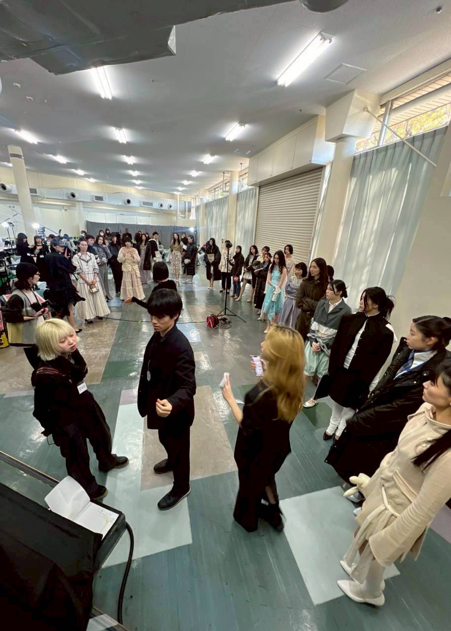 長野桃子(以下、長野):コンセプトを練り始めたのは2025年1月頃。並行して“服造”“演出”“広報”など各部門の担当を決め、服造チームが実際に服作りを始めたのは8月頃です(8月にはルックブック撮影があり、それを終えてから)。また会場の選定を行うため、5、6箇所ほど下見に行きました。