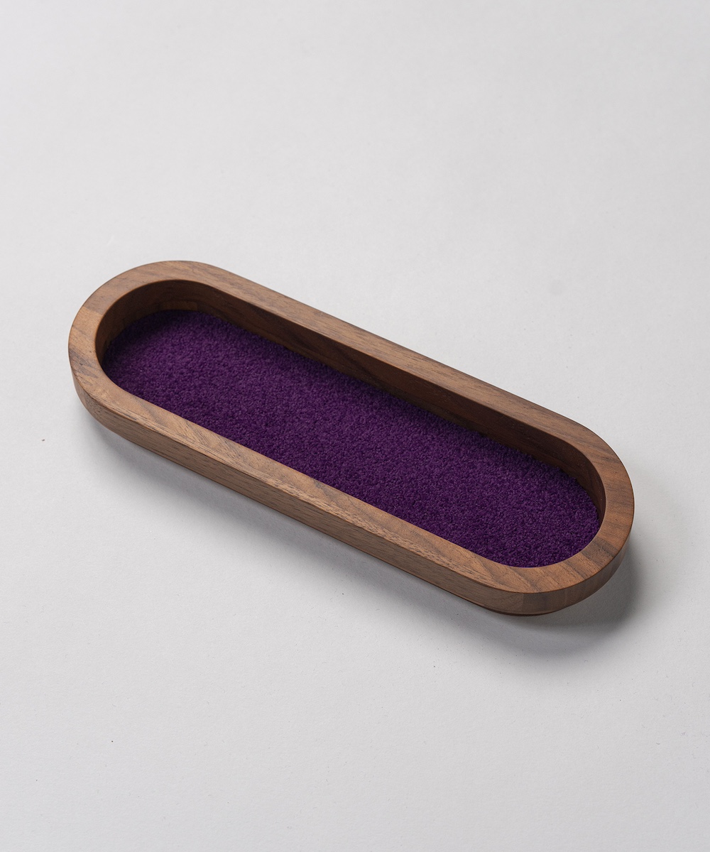 池田:家具作りで出てくる小さな端材があって。今回はウォールナットという素材を使っているのですが、木目も全然均一じゃないので、通常ではあまり表に見える部分では使わないですが、今回はあえてこれを使いました。色合いもモケットともあって、高級感のあるものにできたかなと思います。