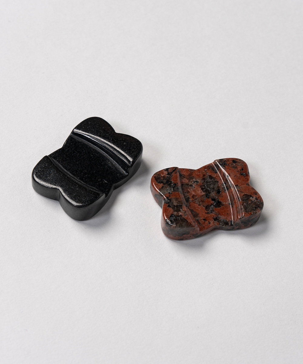 畑野:他にも、今回、ロビー柱の自然石を砕いて、加工した“箸置き”と“コースター”を作ったのですが、これは先ほどの6組のデザイナーと別で、矢橋大理石さんという石のスペシャリストに作ってもらっていて。1966年に、2代目帝国劇場ができた時に、柱の自然石を、実際に施工したのも矢橋大理石さんだったらしく。今回、解体のタイミングでお声がけした際に、たまたまそれが分かって。実際に自分たちで施工したものを解体して、それをまた自分たちの手で加工してもらってプロダクトにする。半世紀以上の時を超えて、自分たちでアップサイクルをするという形で参加していただけたのは、すごい物語としてもいいなと思っています。