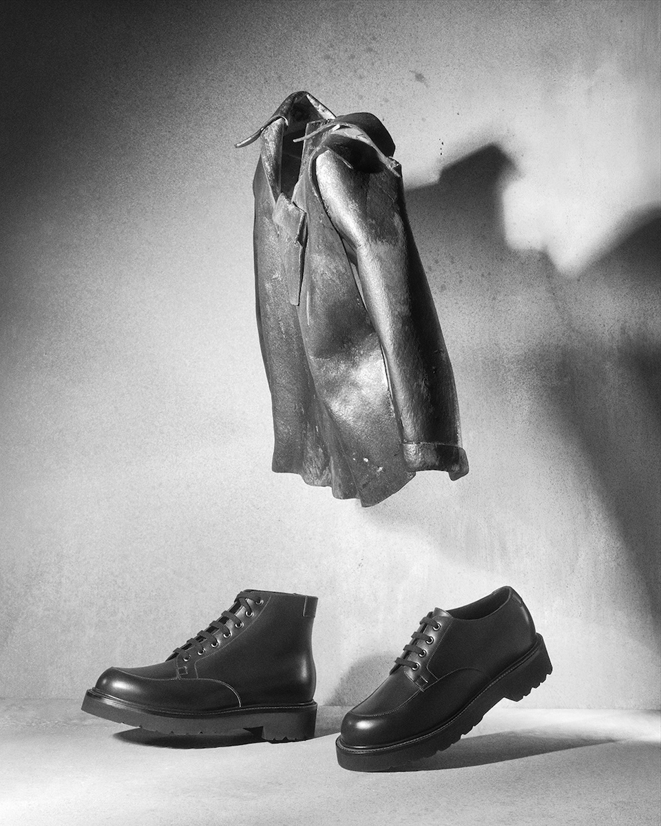 本商品は、ブランドのアイコンモデル“ゴルフ #641”に着想を得て構築された。ゴルフの持つディテールを受け継いだデザインに仕上げた。7アイレットのくるぶし丈で足を包み込み、ホールド感のあるブーツの2型を展開する。取り外し可能なインソールを装備し、快適性を高め、あらゆるシーンに対応する。ワークウエアをベースに頑強さと都会的な要素を融合し、厚く滑らかなブラックのソフトレザーのアッパーであしらい、軽量で柔軟な“ノッチド・ラバーソール”を搭載した。