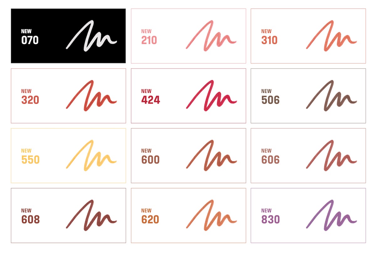 “アーティストカラーペンシル”は新12色に加え、新たなコズミックな質感の新12色が登場し、マットとシマーの2つの質感を楽しめる。ブレンドしやすく、重ね塗りもしやすいのが特徴だ。なめらかに滑る精巧なペン先で、リップ、アイ、フェイスなど、さまざまなポイントメイクをかなえる。“250”、“424”、“450”のカラーはチークカラーやシェーディングとしても使用でき、肌トーンに立体感を与える。