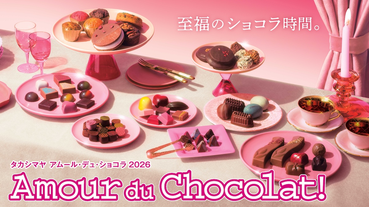 高島屋は、1月13〜2月14日まで、年に1度のショコラの祭典である「タカシマヤ アムール・デュ・ショコラ 2026」を開催する。店頭に100以上、オンラインストアで最大400以上のブランドが一堂に集結。日本初上陸ブランドをはじめ、本イベントのためだけに作られたショコラや、代替カカオ素材と有名ブランドのコラボレーションなど、今年も注目のラインアップがそろう。人気メゾンのパティシエによる実演で、ドリンクとのペアリングを楽しめる「アムール デセール サロン」は、今年も日本橋店と新宿店で実施。さらに来場者自身がカカオ豆を砕く体験や、カカオのテイスティングなどその魅力を楽しむ「アムールカカオサロン」を、新宿店で1月23〜25日までの3日間限定で開催する。