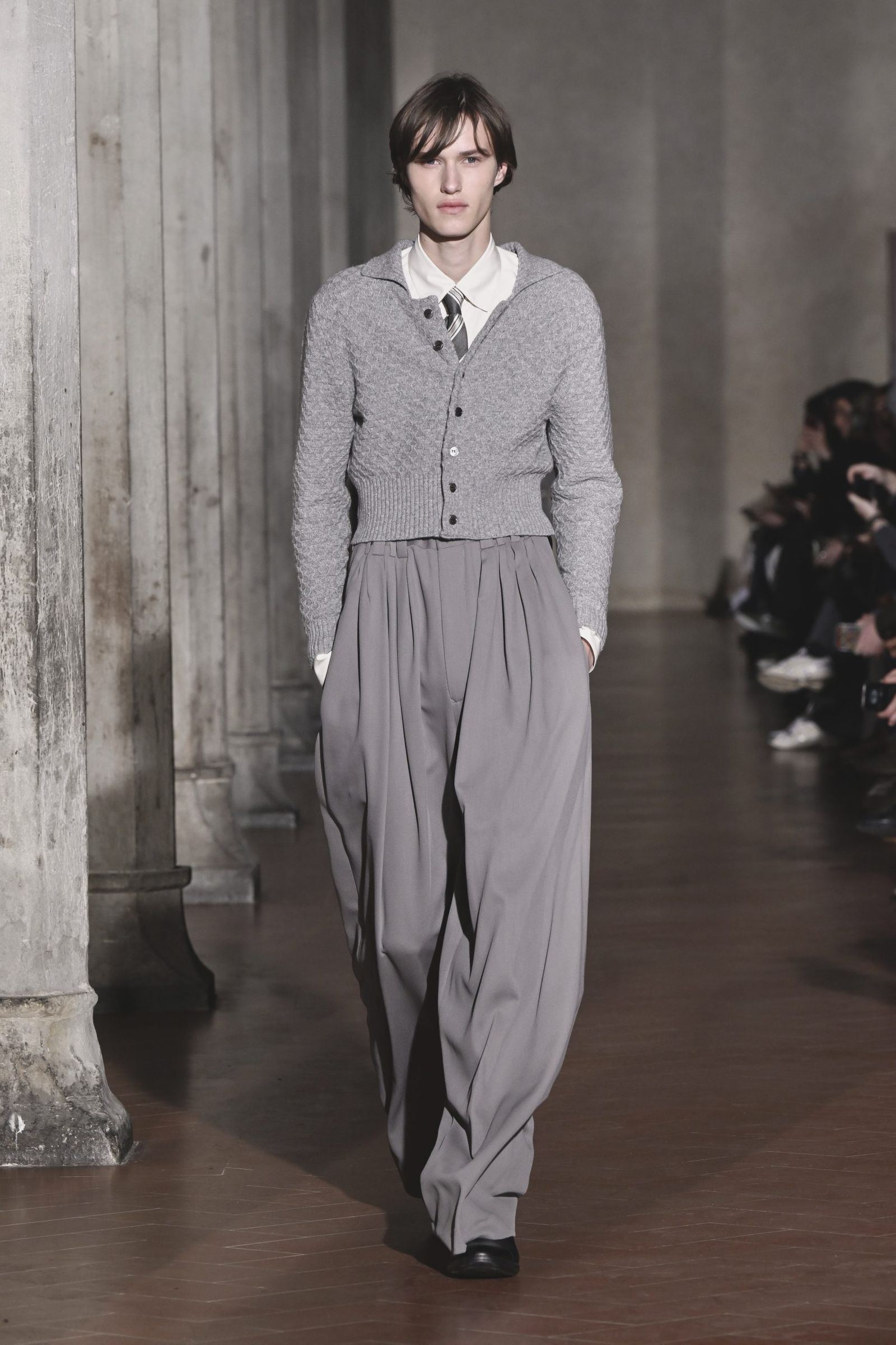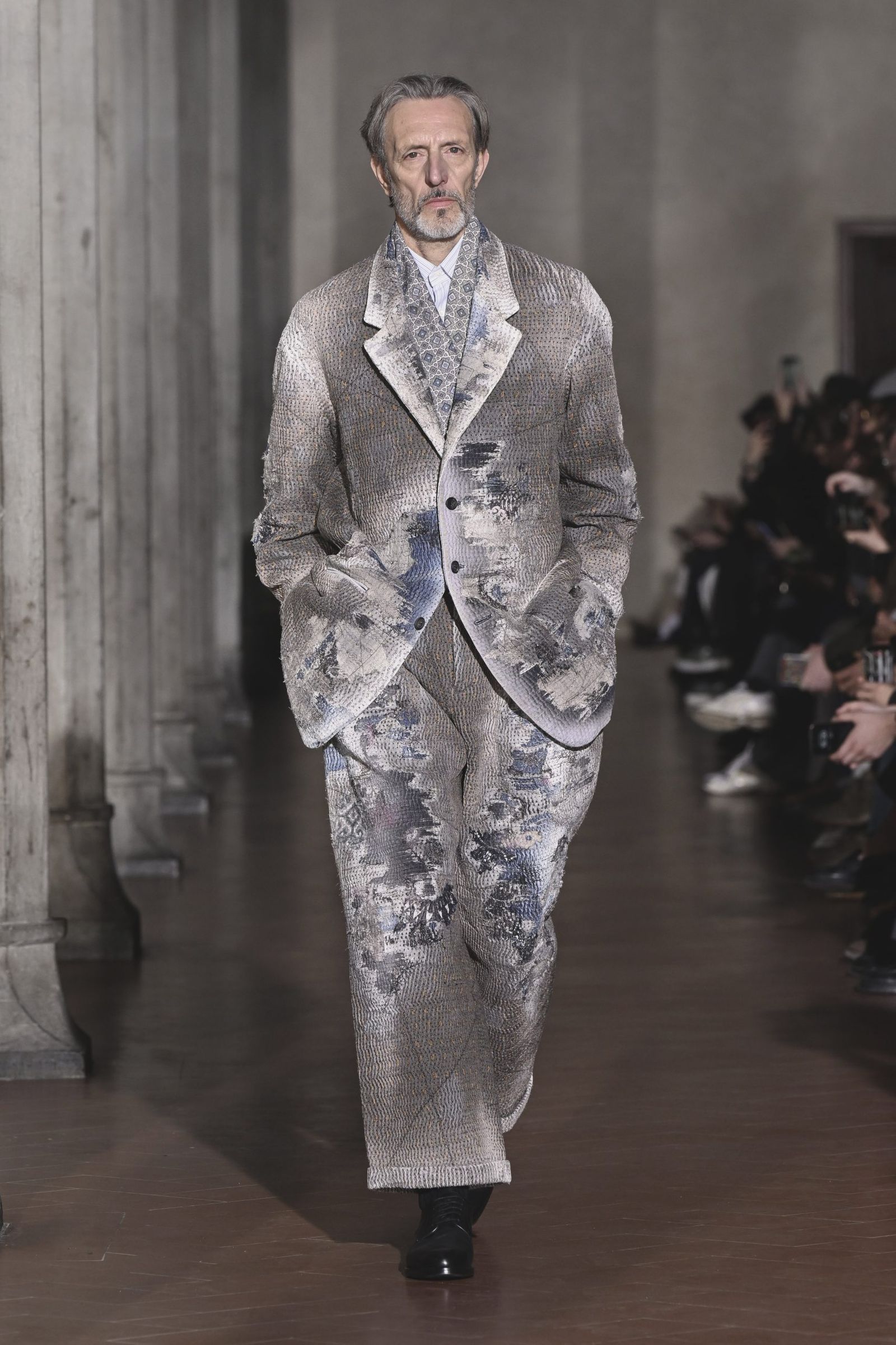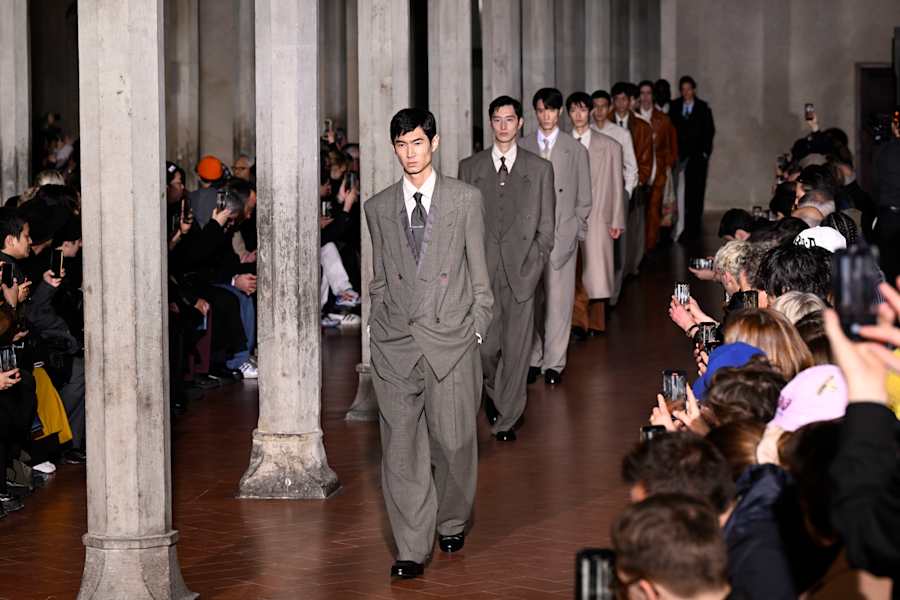 LVMHプライズ2025グランプリの大月壮士が手掛ける「ソウシオオツキ(SOSHIOTSUKI)」が15日、ピッティ・イマージネ・ウオモのスペシャルゲストとして、欧州では初のランウエイショー形式で2026-27年秋冬コレクションを披露した。