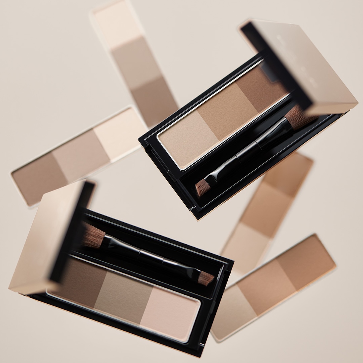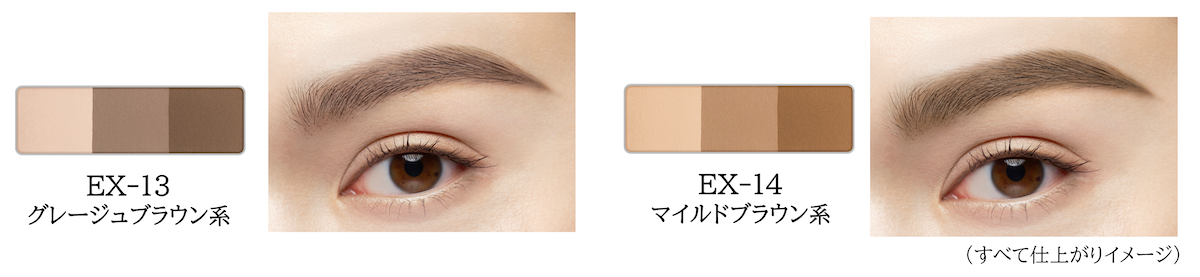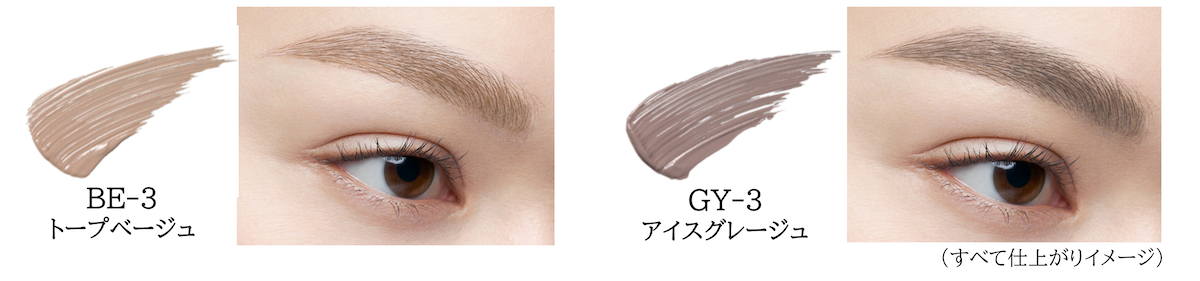 “3DアイブロウカラーZ”(新2色うち復刻1色、各935円)は、トープニュアンスの限定色をそろえる。暗すぎない絶妙なトープニュアンスの低彩度カラーの淡い発色で自眉を主張せず肌に馴染んで他のメイクを引き立てる。