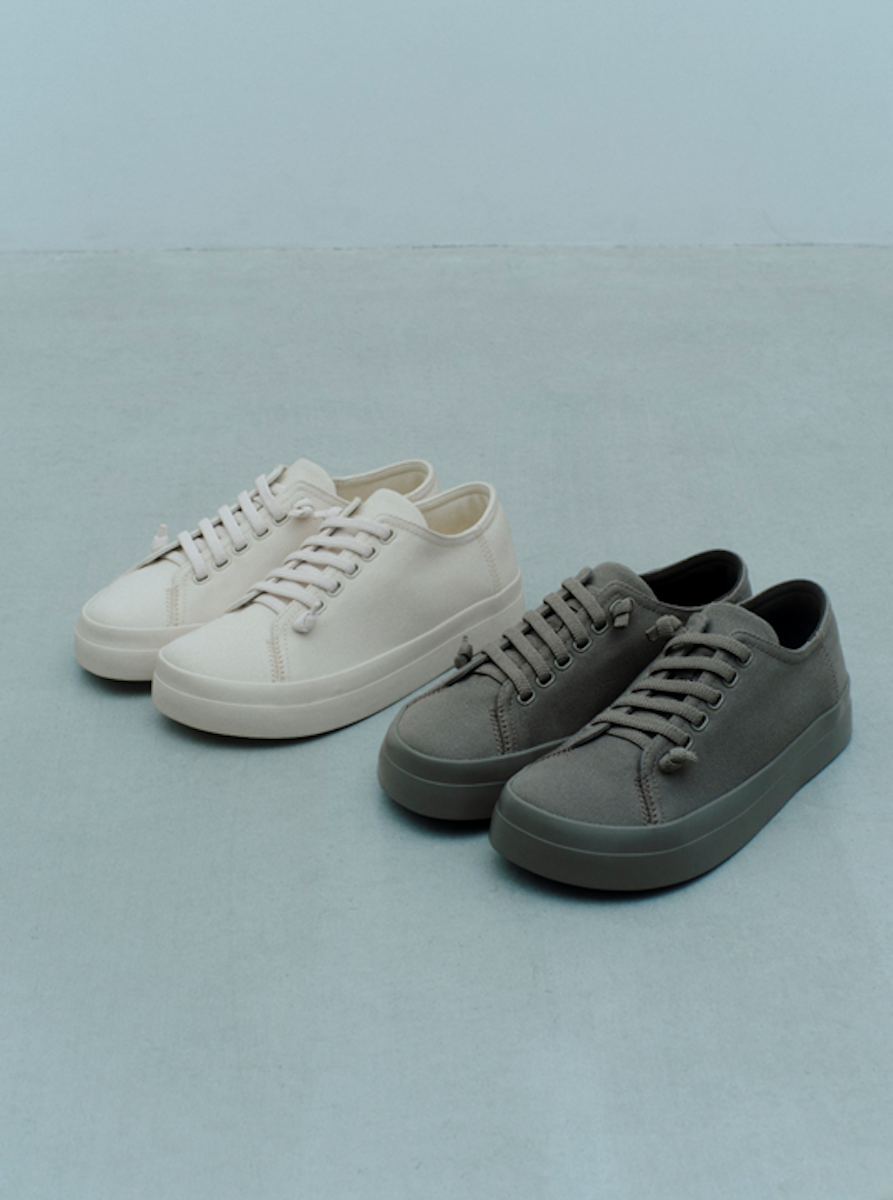 シューズでは、バルカナイズ製法を用いたキャンバスローカットスニーカー(1万5900円)を3月に発売。軽量性とクッション性を考慮した中空構造のソールを採用し、ゴム紐仕様で着脱性を高めた。さらに、レザーヒールベルトクロッグシューズ(各1万7900円)も4月に展開する。