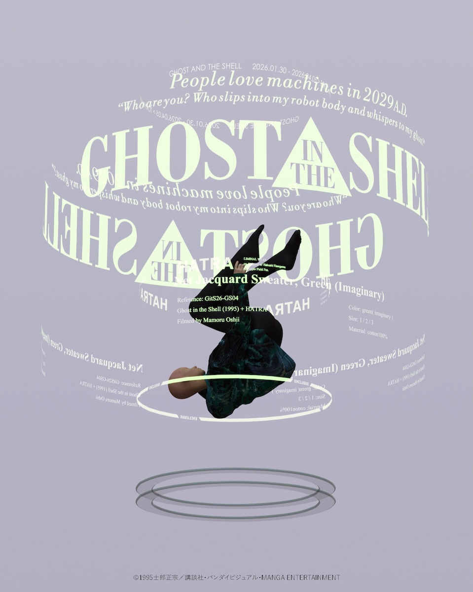 ハトラ(HATRA)」は、士郎正宗原作、1995年に公開された押井守監督によるアニメ映画「GHOST IN THE SHELL/攻殻機動隊」とのコラボレーションアイテムを発売する。一般販売に先駆けて、1月30日から虎ノ門のトウキョウ ノード(TOKYO NODE)で開催する展示会「攻殻機動隊展 Ghost and the Shell」の会場で先行販売する。