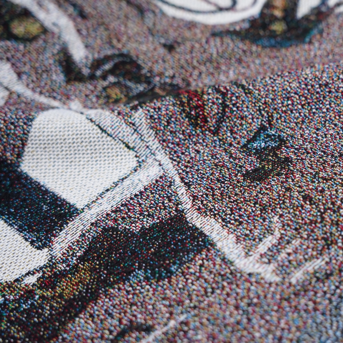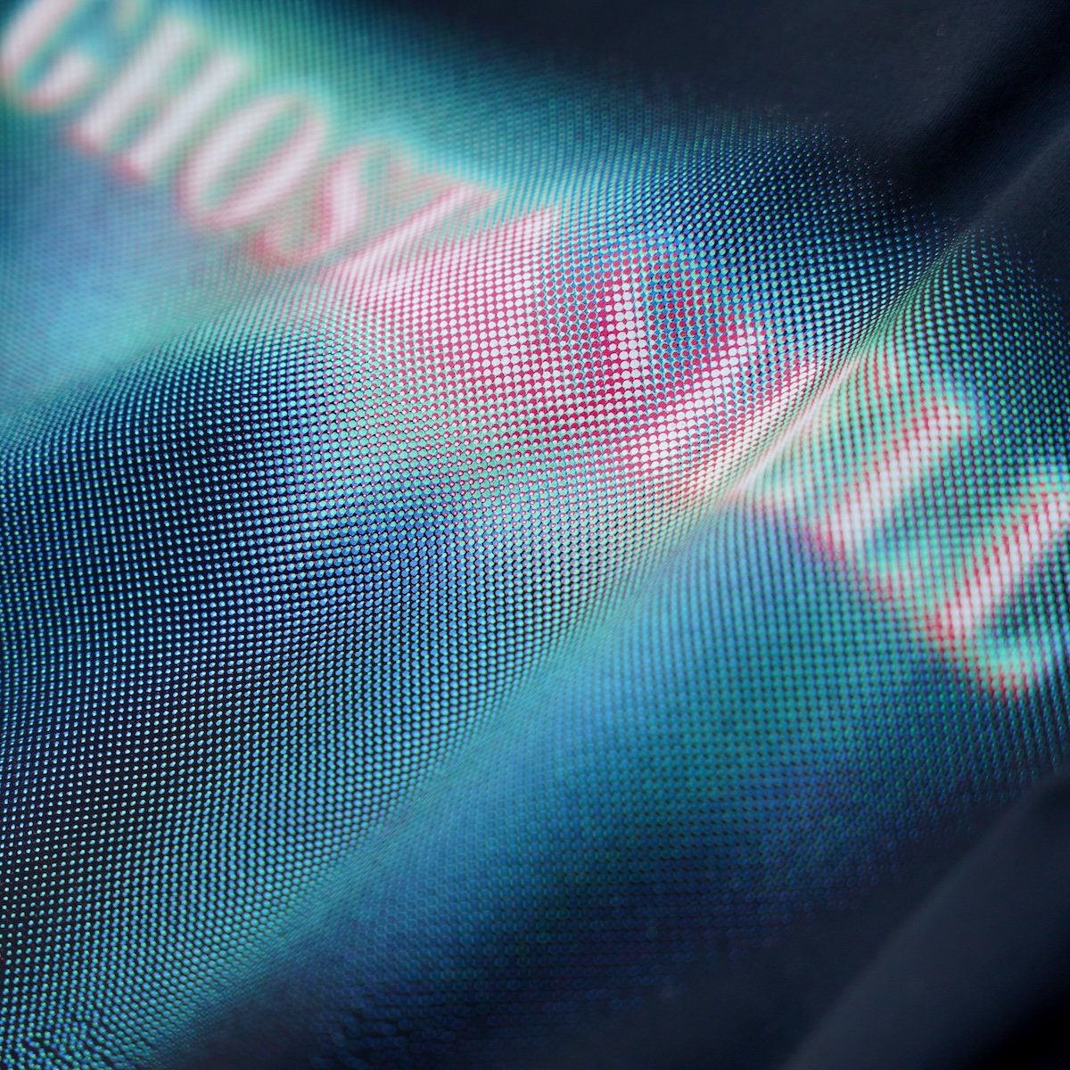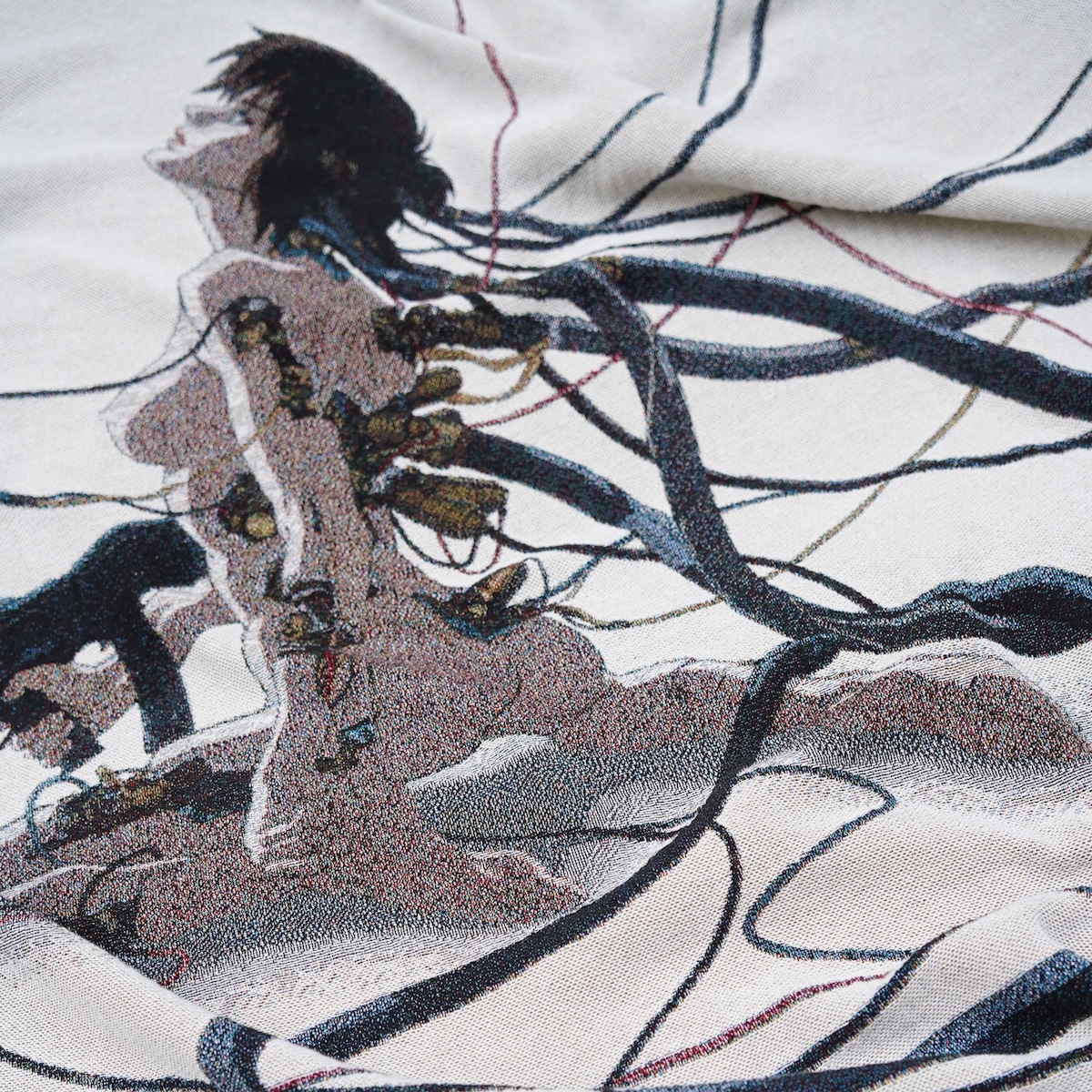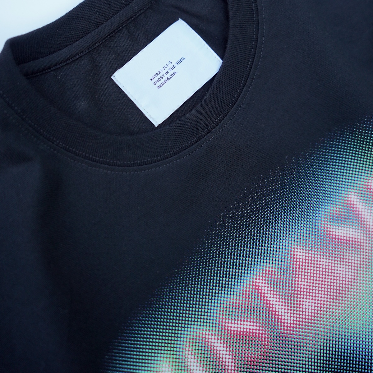 本アイテムは、デザイナーの長見圭佑がブランド設立以前から深く影響を受けてきた「GHOST IN THE SHELL/攻殻機動隊」について、“粒子”をキーワードに表現したカプセルコレクション第1弾だ。「ハトラ」は近年、糸の組織で布の柄を表現する手法であるジャカードをコレクションの中心に展開してきた。インターネット以降の意識やアイデンティティへの予言的なヴィジョンを世界中に浸透させてきたとされる「GHOST IN THE SHELL/攻殻機動隊」をジャカードで織り込むことで、本作品の新たな一面を照らすことを試みた。