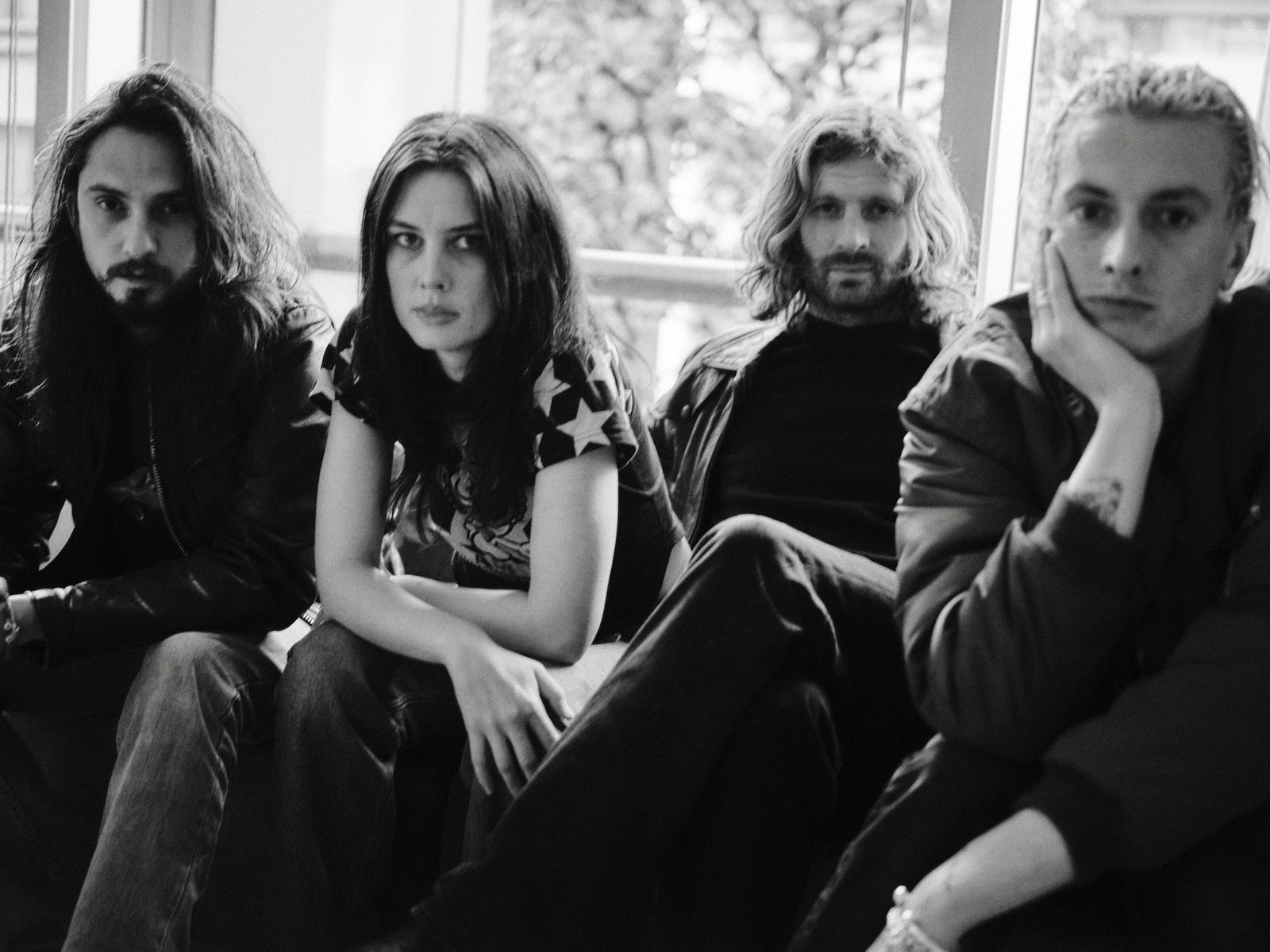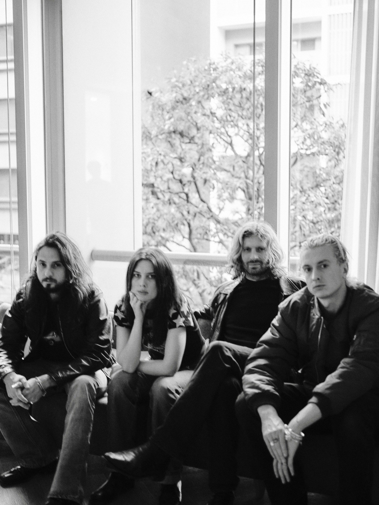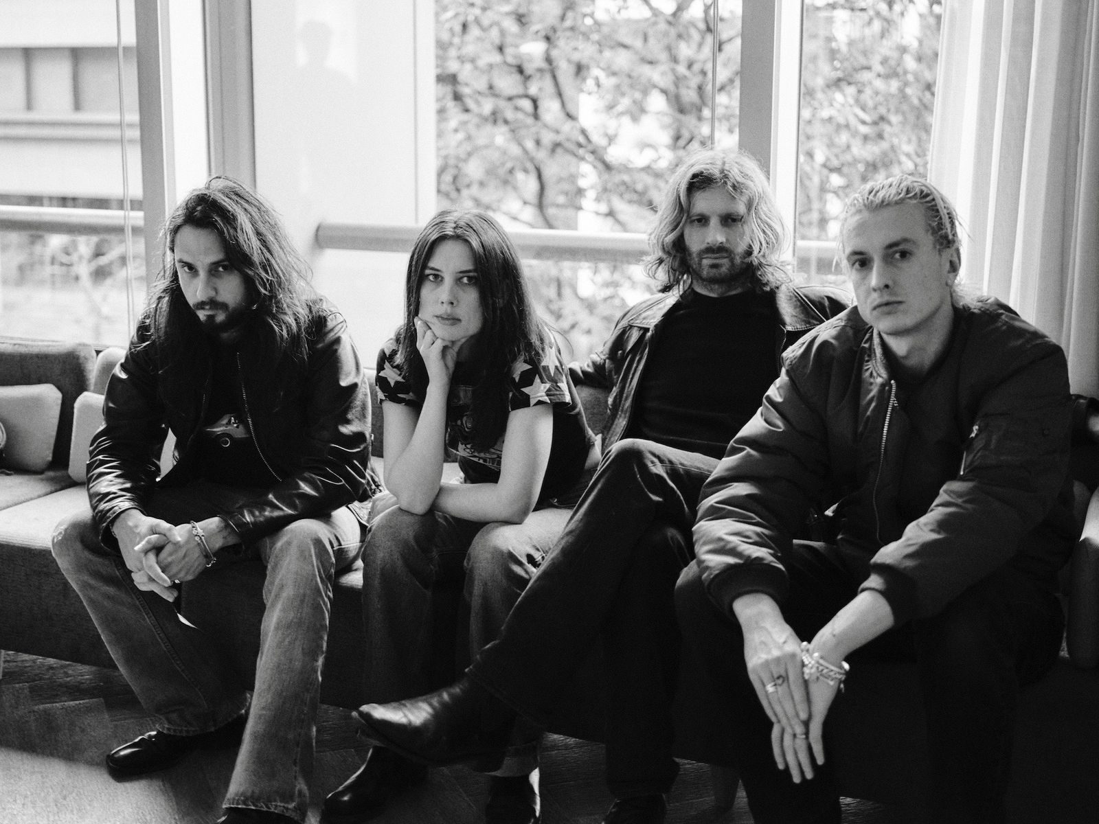 サウンドとビジュアルの両面において劇的な変化を果たしたという意味で、「The Clearing」は間違いなくキャリア最大の野心作である。この変化の背景を探るべく、1月4日に幕張メッセで開催されたフェス「ロッキング・オン ソニック(rockin’on sonic)」(以下、「ロキソニ」)出演のために来日したウルフ・アリスの4人——エリー・ロウゼル(Ellie Rowsell、Vo/G)、ジョフ・オディ(Joff Oddie、G/Vo)、セオ・エリス(Theo Ellis、B)、ジョエル・エイミー(Joel Amey、Dr/Vo)に話を訊いた。