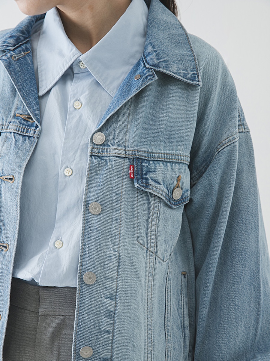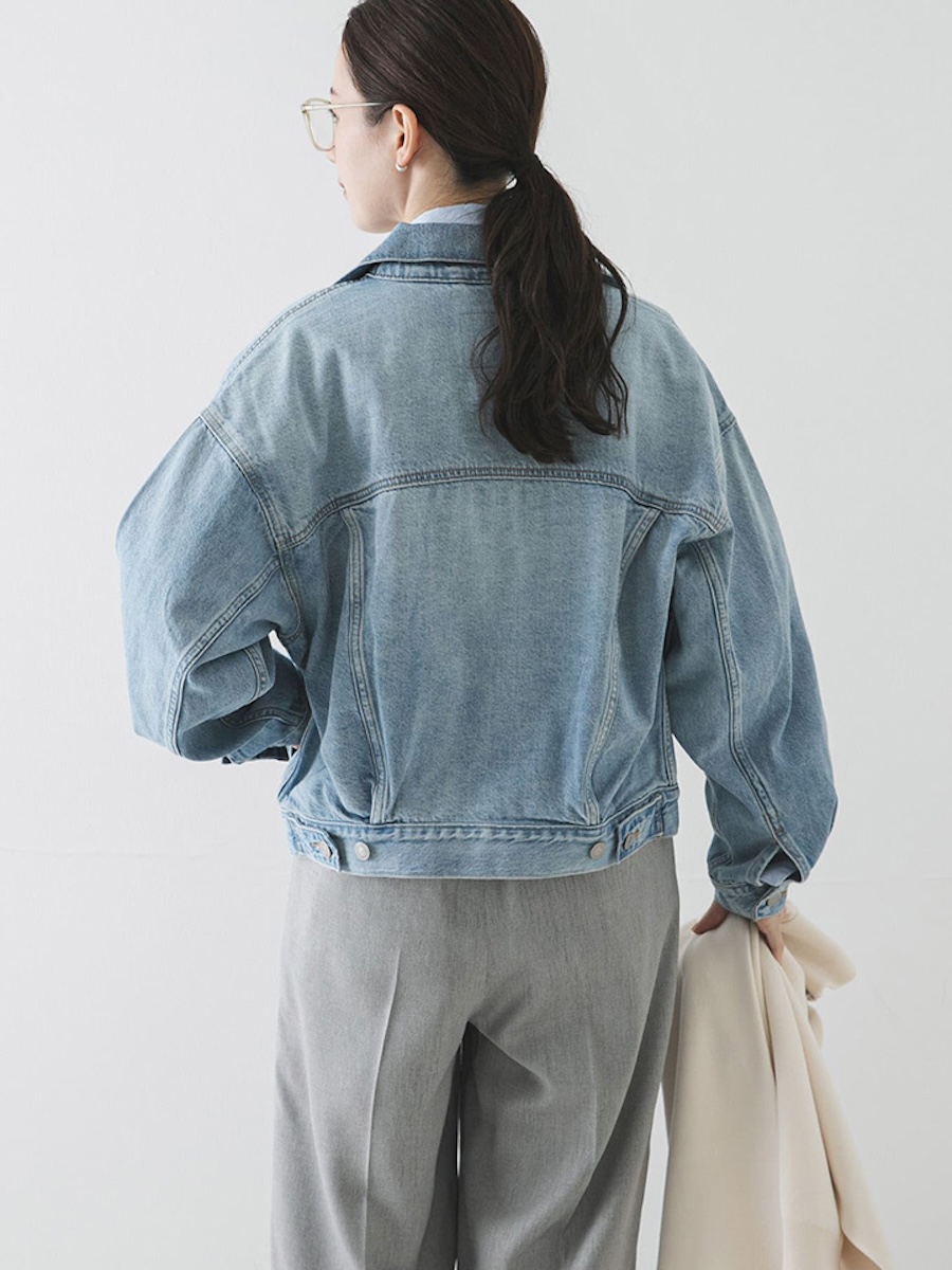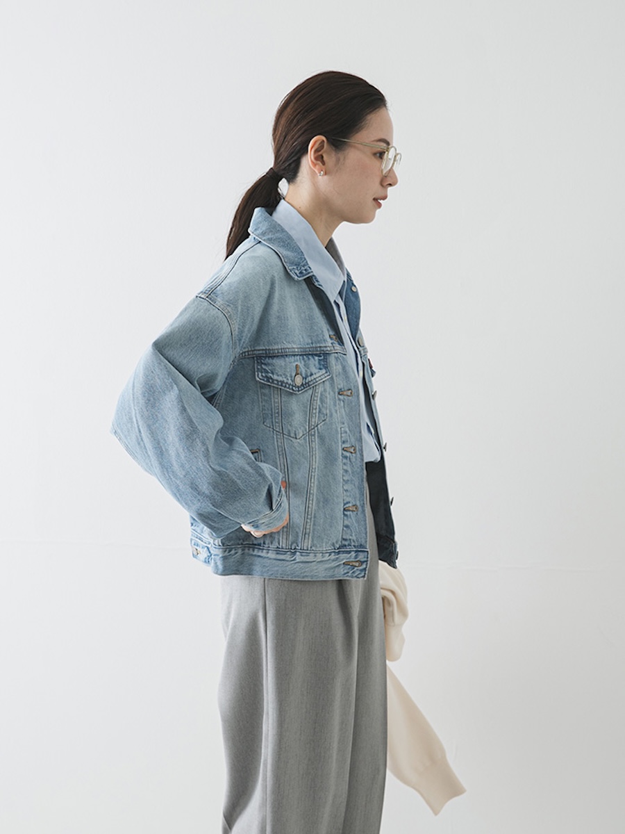 同アイテムは、ボディーラインに沿った程よくコンパクトなシルエットで、現代のストリートスタイルに馴染むタイムレスな一着に仕上げた。通年使いやすいミッドオンスの綿100%デニムを使用し、着込むほどに肌に馴染む質感が特徴だ。