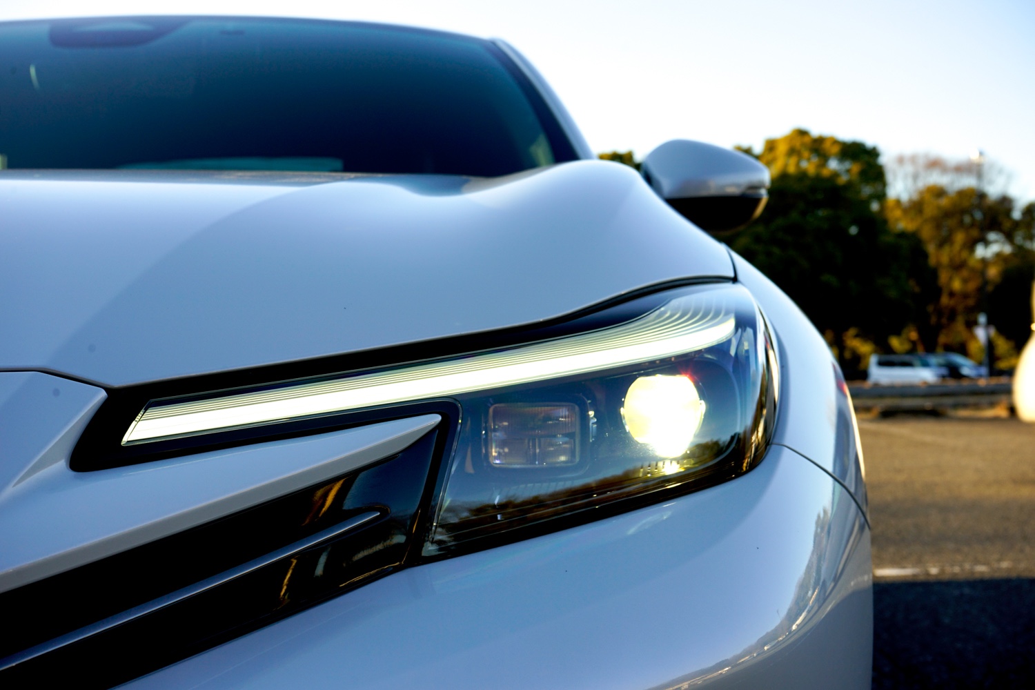 低く、広く構えた大枠のスタイルは先代までを踏襲しながらも、ロングノーズ、ショートデッキのレイアウトとは異なる。ノーズを縮めてルーフの頂点をやや高く前方寄りに設定し、 まさに揚力(浮き上がる力)を受けながらの滑空を思わせる、個性的なシルエットを形作っている。薄くエッジのきいたヘッドライトにはストライプのディテールを施し、左右に広げた翼のようなダイナミックさを演出。前後のバンパー下部に配したブルーのアクセントも、アイコニックな造形の一つだ。