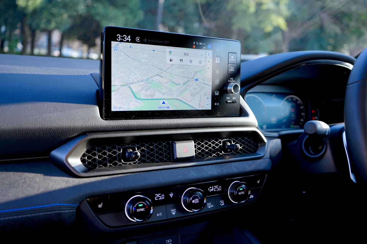 “S+”ボタンを押すと、ホンダ初搭載の制御技術“ホンダ S+シフト“が作動し、走りの高揚感が一段引き上がる。仮想の8速ATを介して、加減速に応じたエンジン回転数を実際に制御し、シフトショックを含めた加速フィールまで体感できるのだ。作動中は車内に響くサウンドも一段と存在感を増し、シフトダウン時には自動でブリッピングして快音を響かせる。メーター内には擬似的なタコメーターが表示され、アクセルをしっかりと踏み込めば、レッドゾーンまできっちり回り切ってから変速。基本はオートだがパドルシフトでの変速も可能で、つい低速ギアで回転数を上げたくなる。サウンドやシフトショックも嫌な誇張がなく、乗っている感覚は「ほとんど純内燃機関車」だ。