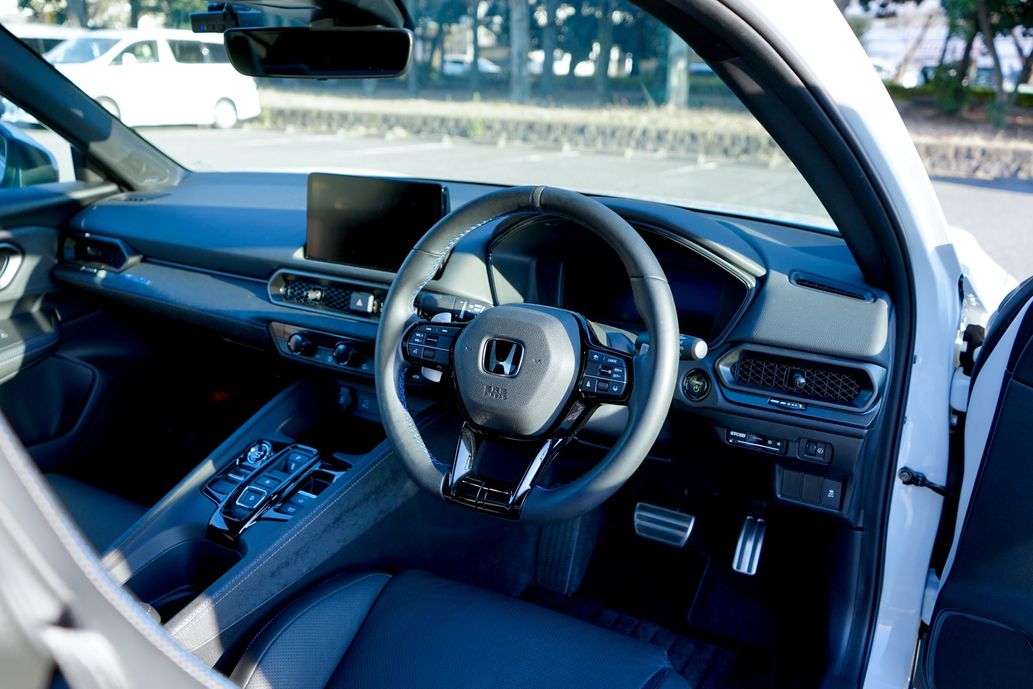 同モデルは、ホンダ独自の次世代“e:HEV”をスポーティーに仕立てて搭載する、変速機を搭載しないハイブリッド車。高速巡行時以外はモーターで駆動するため、市街地走行時のフィーリングは静かでスムーズ。「ほとんどバッテリーEV」だ。ステアリングは左右1回転ずつで最大舵角に達するスポーティーな仕立て。シャーシを共有する「ホンダ」が走りを極めた5ドアのスポーツハッチバック“シビック タイプR”譲りのキビキビとしたステアフィールが特徴だが、全ての舵角で鋭敏に反応するわけでなく、切り始めはゆったりとしたマージンを設けているところが、「やる時はやる」紳士的なチューニング。急ブレーキ時には、ブレンボ製の4ポッドキャリパーが全輪をガッチリ挟みこんでピタリと頼もしい。手元のパドルシフトでは、回生ブレーキの効きを8段階で細かく調節できる。これによってほぼワンペダル走行が可能で、足の乗せ替えも少なくスマートに走行できた。