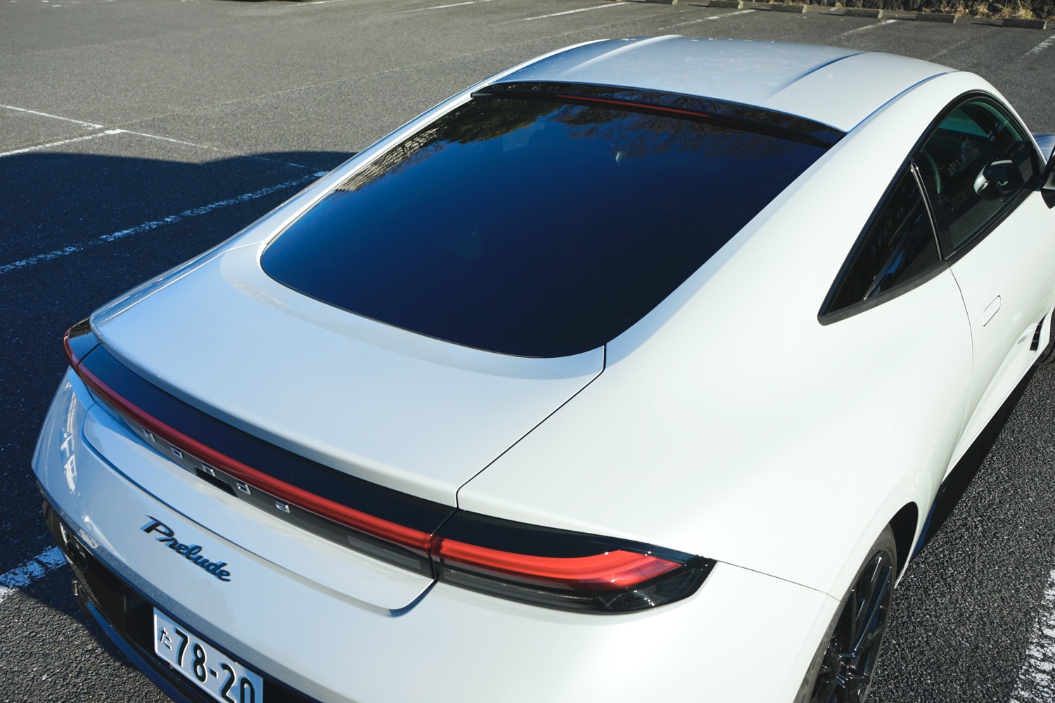 エクステリアの中でも、リヤの造形がとりわけ印象的だ。なだらかなルーフラインと一文字に光るテールライト、“Prelude”の筆記体ロゴの組み合わせが洒落ている。さながら欧州メーカーのRRスポーツのような垢抜けた佇まいだ。マフラーを見える箇所に出さなかったのは、未来感を押し出す演出だろうか。信号待ちでは、後続車から見える姿を想像して、思わず得意げな表情になってしまう。