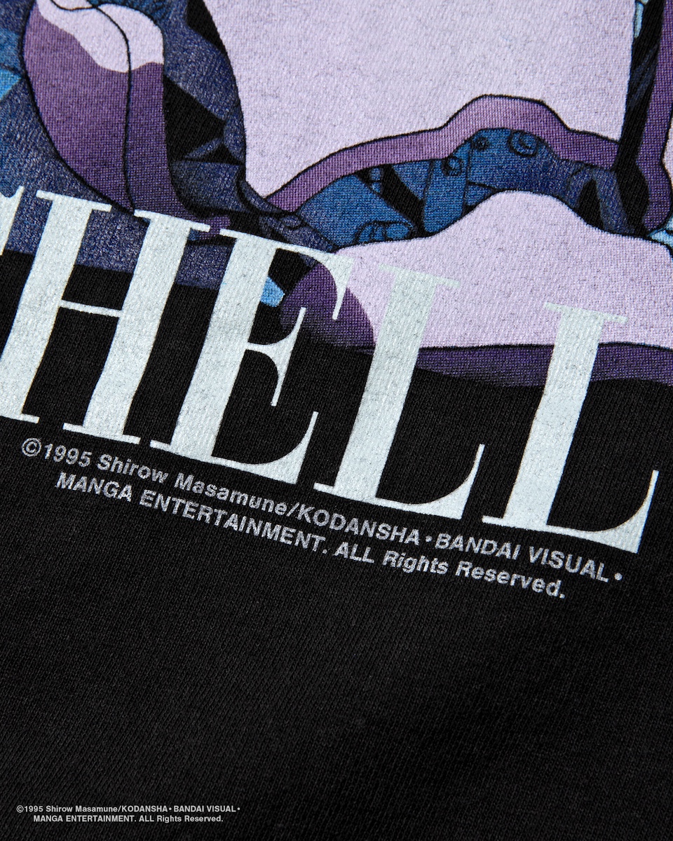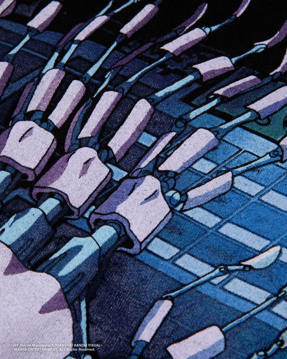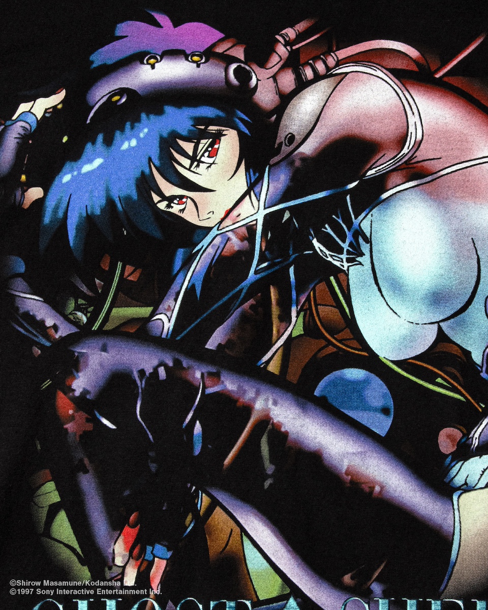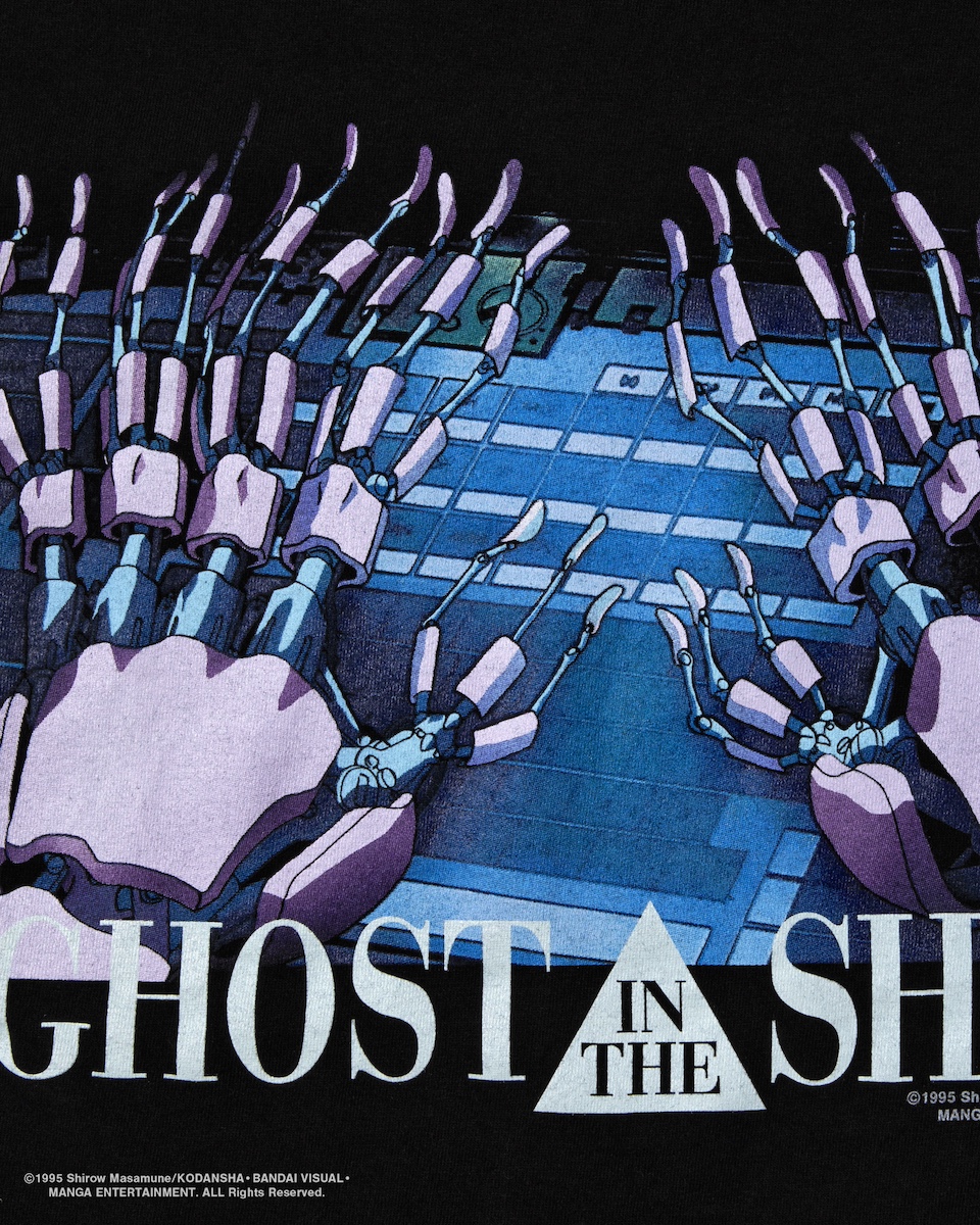 今回のコラボレーションでは、1997年に発売されたプレイステーション用ゲーム「攻殻機動隊」のジャケットビジュアルを使用したモデル、95年公開の押井守監督作「GHOST IN THE SHELL / 攻殻機動隊」のビンテージTシャツをオマージュしたモデル、さらにシリーズの中でも人気の高い“タイピング”シーンを採用したブランド「インフィニット アーカイブスとのトリプルコラボレーションによる、計3型を展開する。
