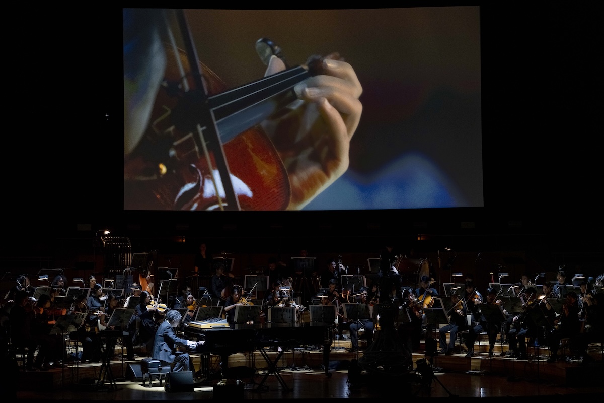 舞台の中心には、渋谷の亡き妻マリアをモデルとして25年に製作された“アンドロイド・マリア”が登場し、渋谷のピアノや大阪フィルハーモニー交響楽団のオーケストラ、高野山僧侶による声明と交わる。大型スクリーンに投影する映像は、大阪・関西万博フランス館の芸術監督を務めたビジュアルアーティストのジュスティーヌ・エマール(Justine Emard)が担当する。アンドロイド・プログラミングはコンピュータ音楽家の今井慎太郎が手掛ける。