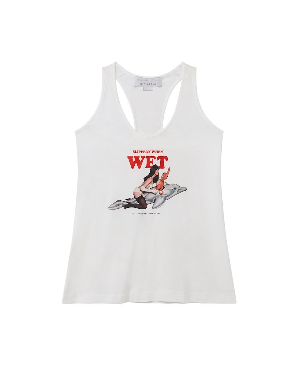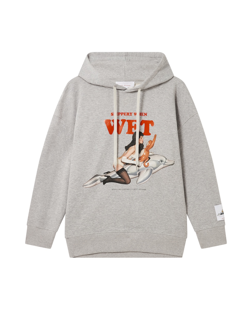 同コレクションは、両者に共通する動物への愛を込めたプレイフルでセクシーなアイテムをそろえる。また、ジェフ・クーンズのアート作品"アンタイトルド (ガール ウィズ ドルフィン アンド モンキー)"とステラ マッカートニーが2001年に初めて発表したランウエイショーで掲げたスローガン“スリッパリー ウェン ウエット(Slippery When Wet )”を融合し、2025年秋冬コレクションで初披露したオーガニックコットンTシャツもカプセルコレクションとして登場する。ほか、アイコニックなタンクトップ、フーディー、オーガニックコットンTシャツ、RWS認証ウールを使用したチャンキーニットなどをコレクターズピースとして限定でそろえる。