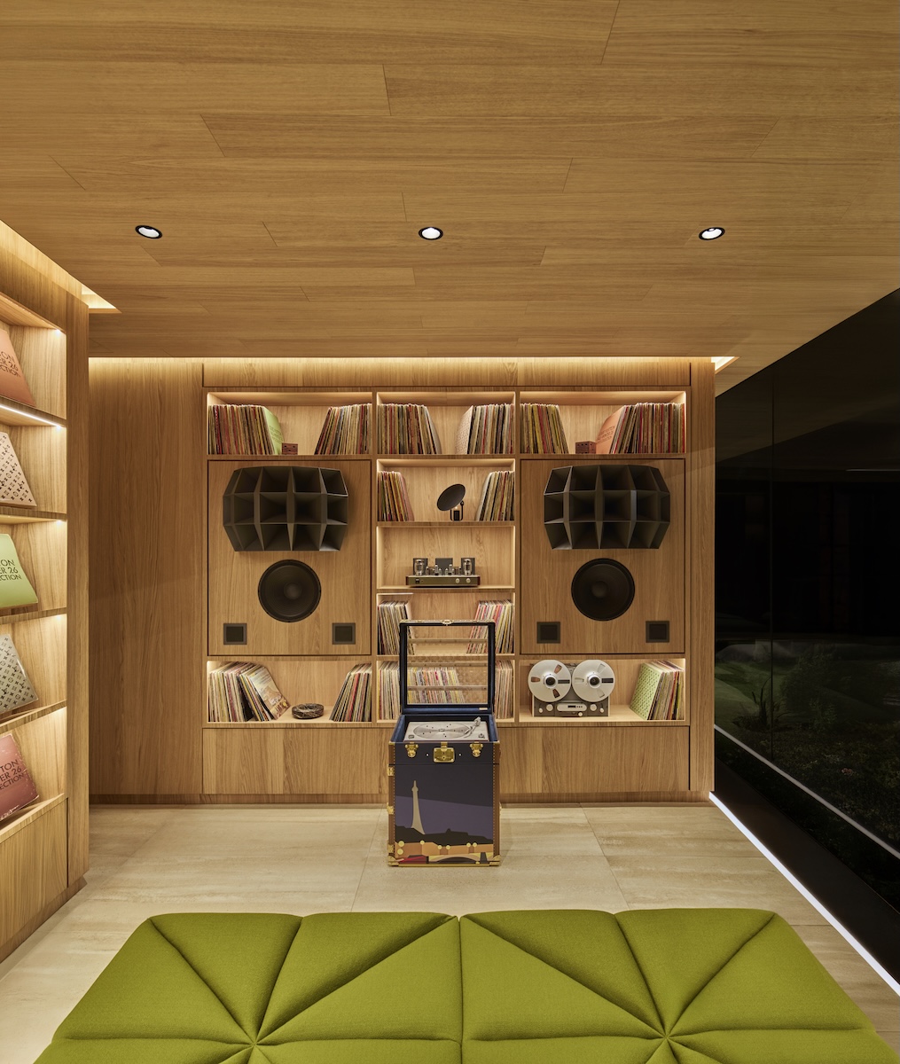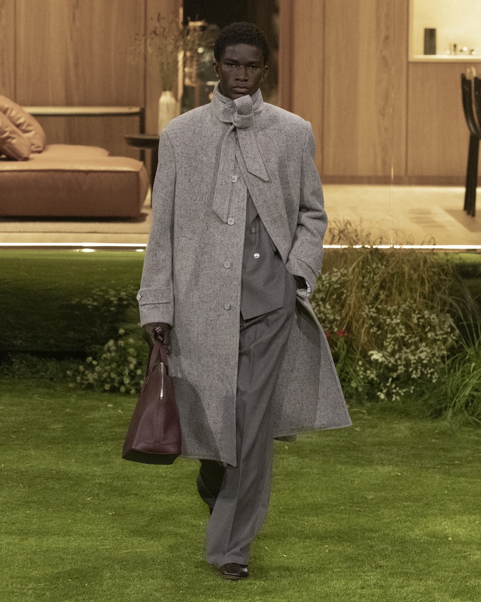 就任から一貫して“ダンディー“の探求を続けるファレル・ウィリアムス(Pharrell Williams)が「タイムレス」と題して描いたのは、未来のダンディー。そのライフスタイルを表現するため、会場内にガラス張りの洗練されたプレハブ住宅「ドロップハウス(DROPHAUS)」を設けた。これは、ファレル自身がクリエイティブ・アドバイザーを務める日本の企業ノットアホテル(NOT A HOTEL)との協業でデザインしたもの。ショーのためにファレルがデザインした家具が配置されたリビングや寝室、ミュージックルームなどがあり、豊かな暮らしを想起させる。そんな家を囲む庭がランウエイとなった。空間全体には、メゾンのマスター・パフューマーであるジャック・キャヴァリエ・ベルトリュード(Jacques Cavallier Belletrud)が庭をイメージして開発した香りが漂う。