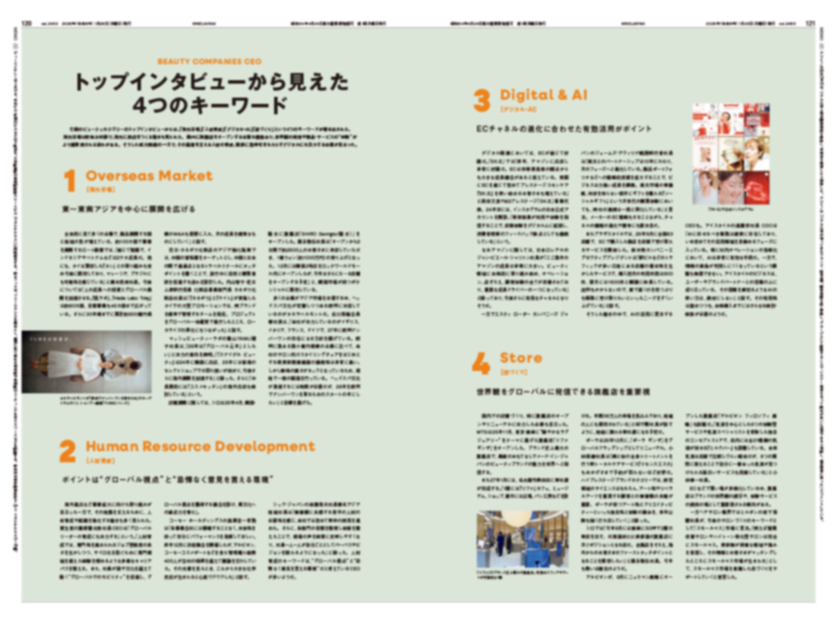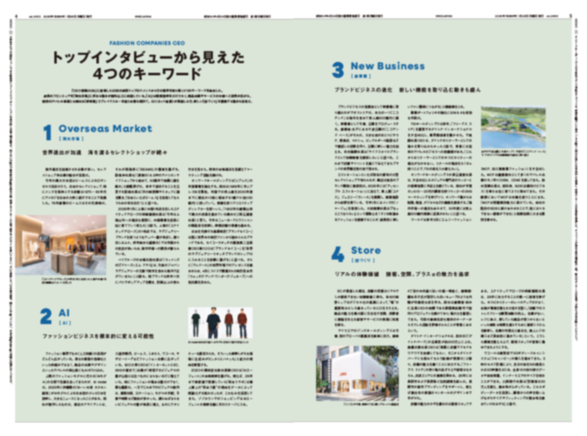 「WWDJAPAN」1月26日号は新年の恒例企画「CEO特集2026」を、124ページの大ボリュームでお届けします。今回はファッション企業25社、ビューティ企業29社の計54社(55人)の経営トップのインタビューを掲載しました。