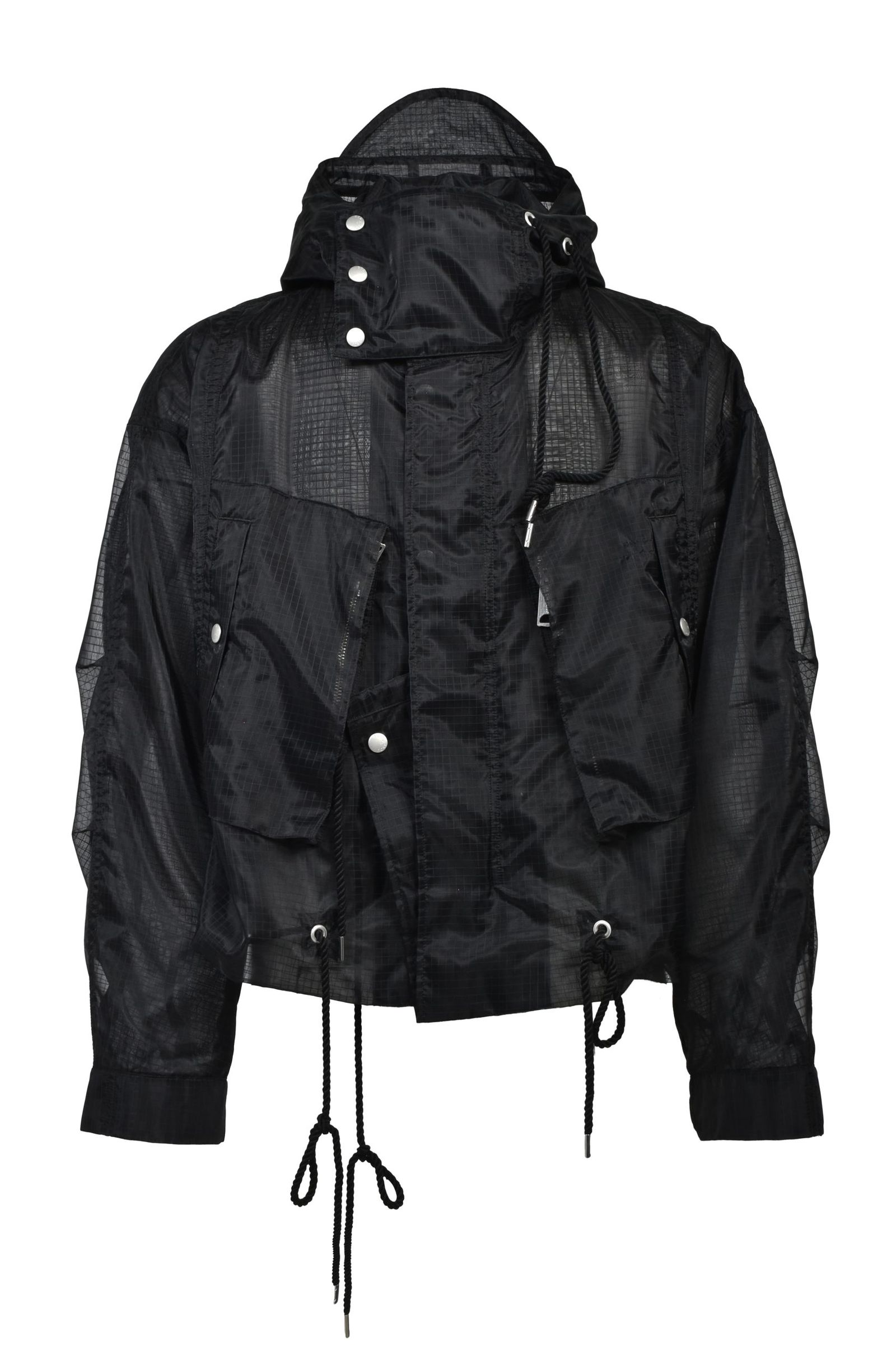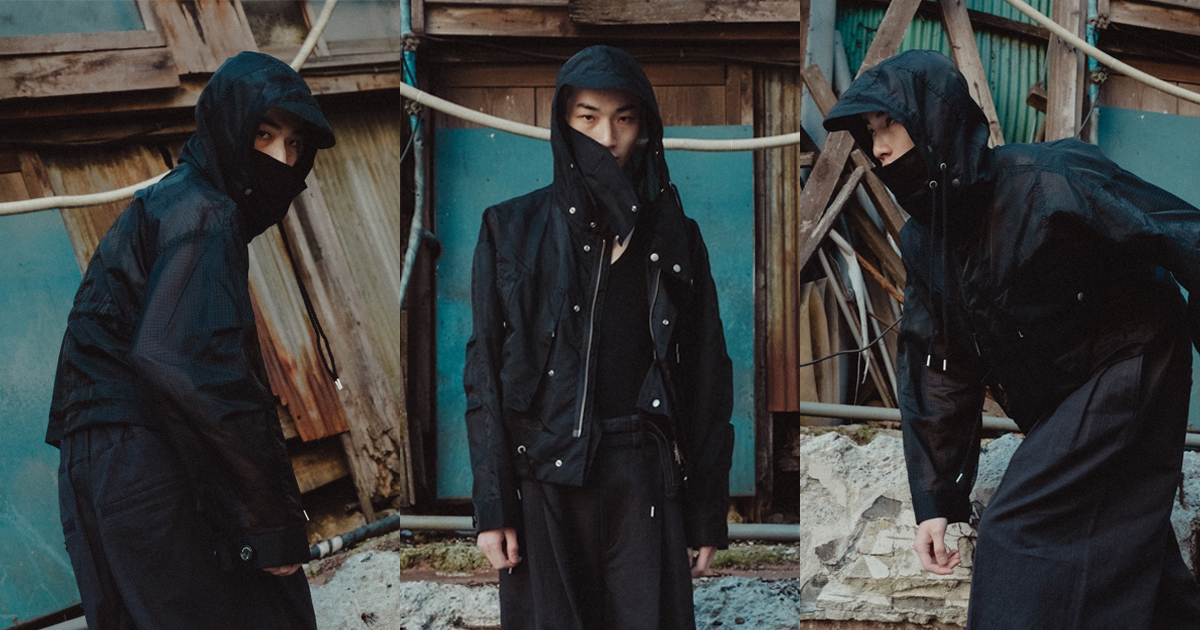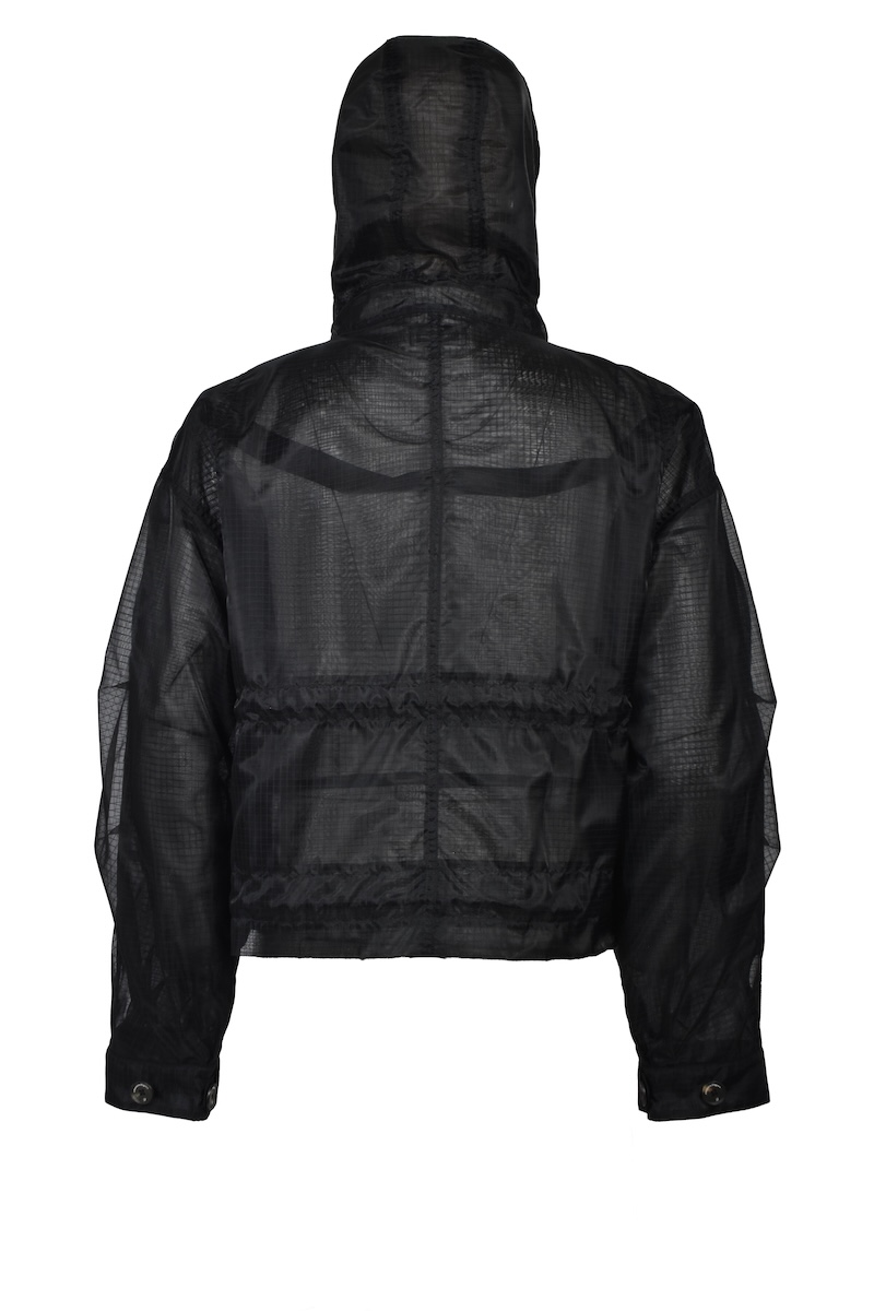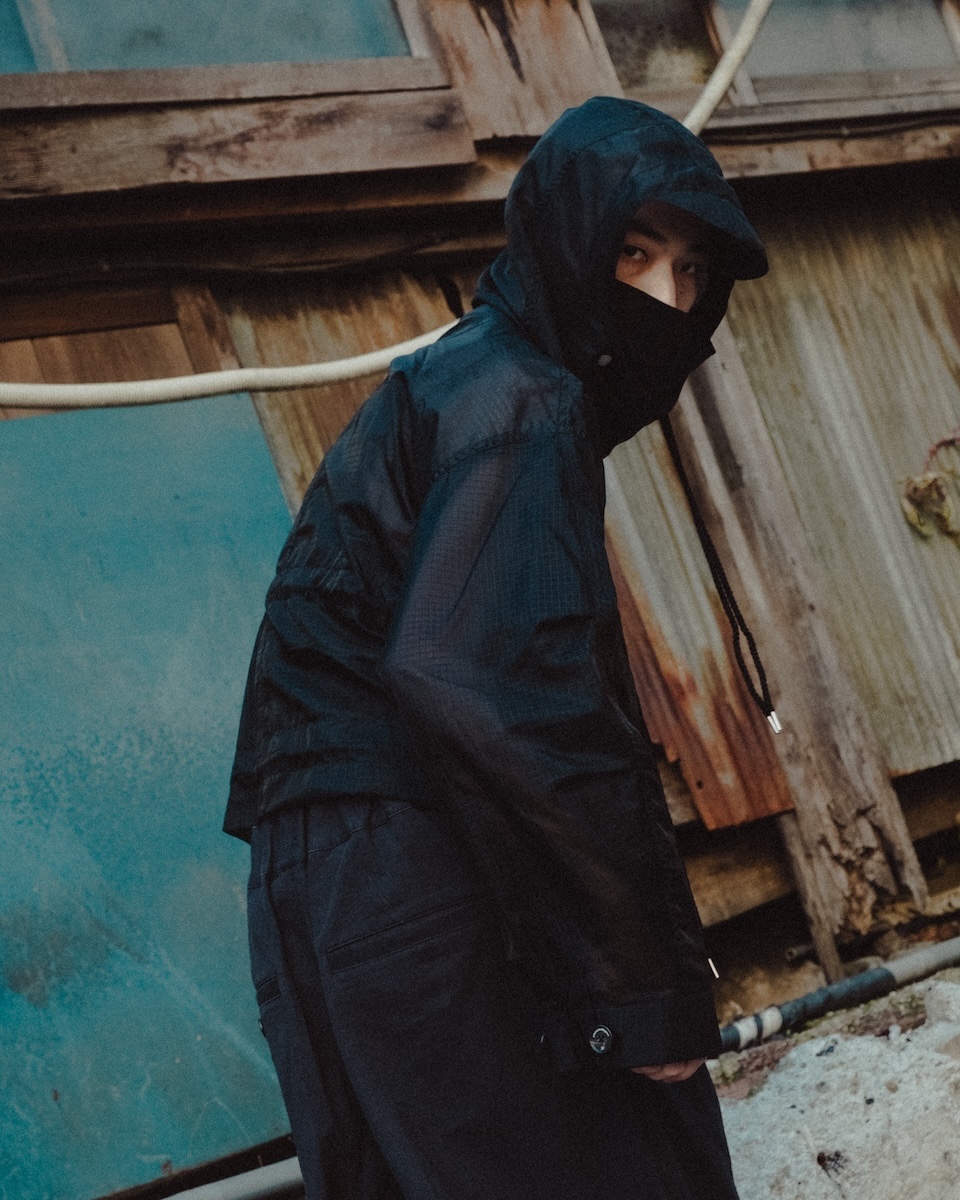 シアーリップストップはシルクのような軽やかさが特徴のナイロン分繊糸を使用する。ハリ感を表現するジッガー染色機で染め上げ、シワのない綺麗な表情に仕上げた。0、1、2の3サイズを用意する。