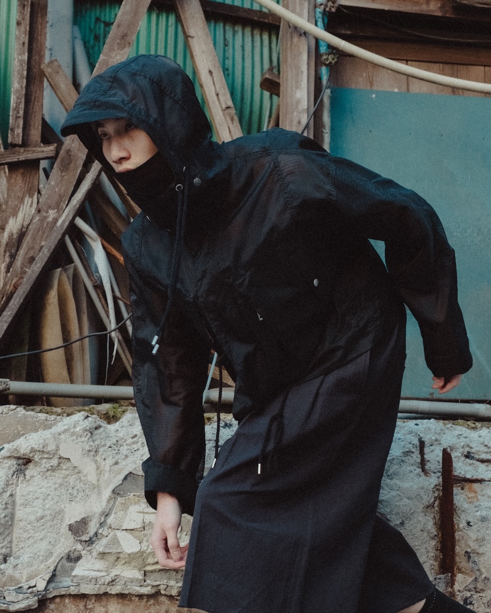 モッズコートを折り返したようなおもしろみあふれる“Short Mods”は2026年春夏コレクションで一度作成を休止しているが、ヌビアンが取り扱いを始めた19年春夏コレクションでラインアップのあったフード付きデザインに生地から別注をかけ今回復刻した。