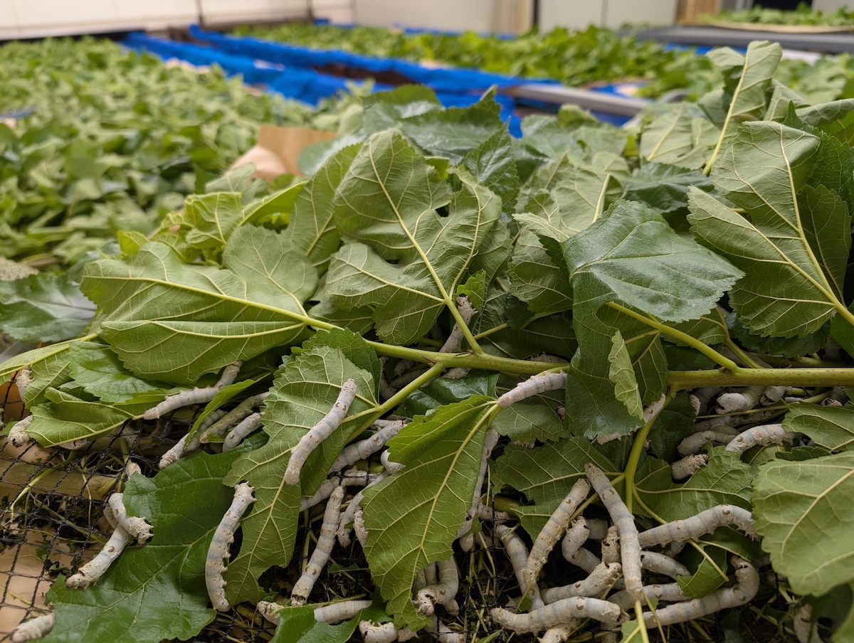 佐藤:品種選定は、日本で有数のカイコ専門研究機関である群馬県の技術センターなどと共同研究を行っている。食用に適したカイコの品種に加え、餌となる桑の品種による影響も大きいため、栄養価と味の二つの軸で検証を重ねた。その結果、栄養価が高く育てやすい品種にたどり着き、現在はその蚕を用いて生産を行っている。