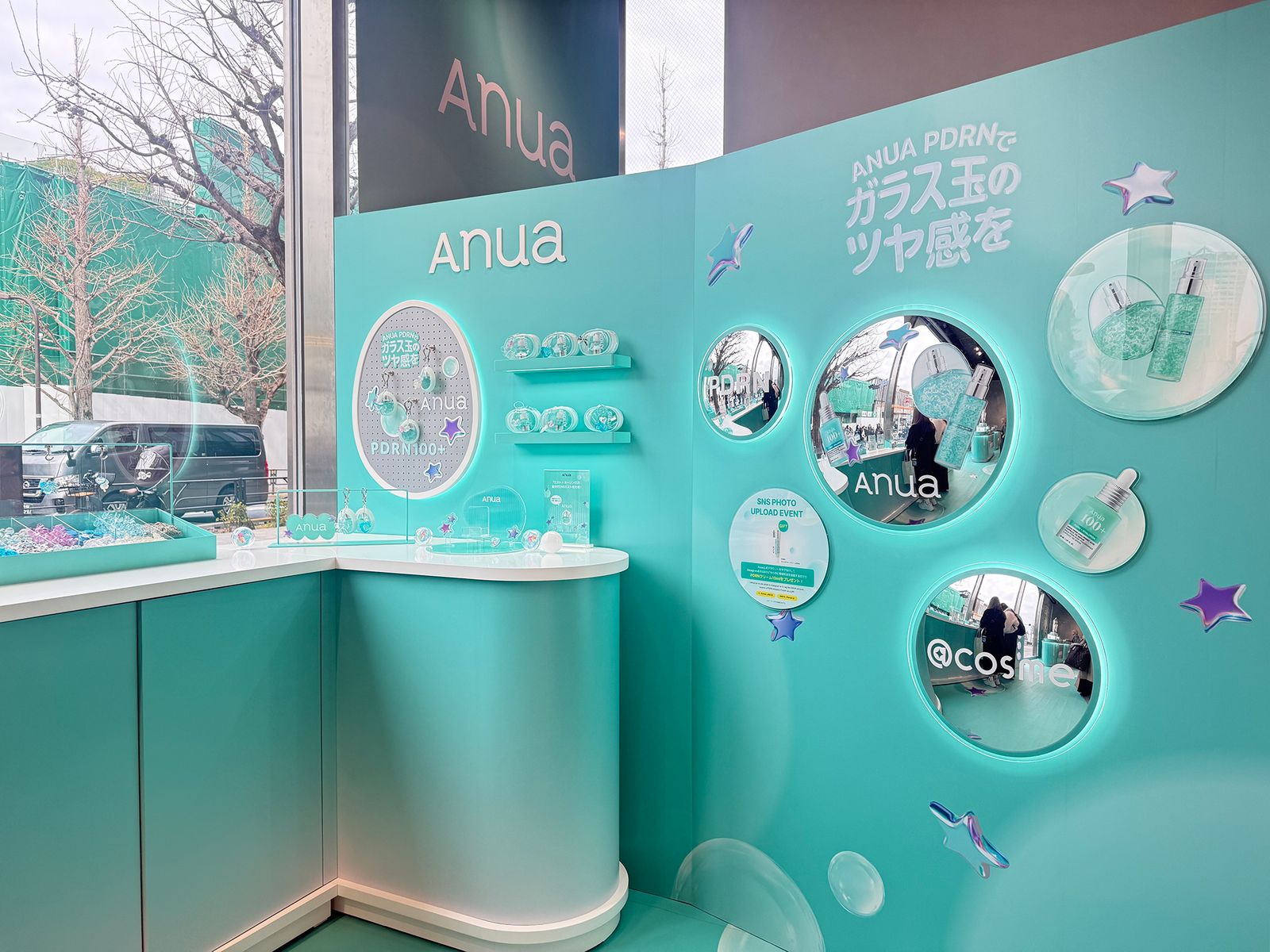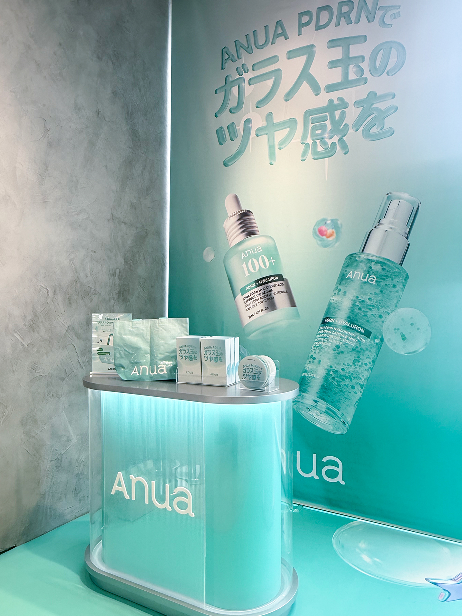 同イベントは、「ANUA PDRNで、ガラス玉のツヤ感を。」をテーマに、“PDRN”ラインを中心とした商品をラインアップ。製品を象徴するエメラルドグリーン一色の会場で、みずみずしい潤いの世界を表現している。新製品“PDRNヒアルロン酸ハイドレイティングミスト”をメインに、製品をタッチアップできるほか、スキンチェッカーで肌の水分量などを計測することも可能だ。自分の肌に合ったスキンケアアイテムをじっくり選べる。