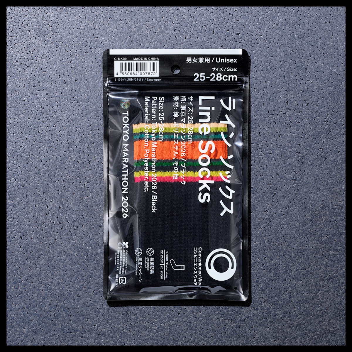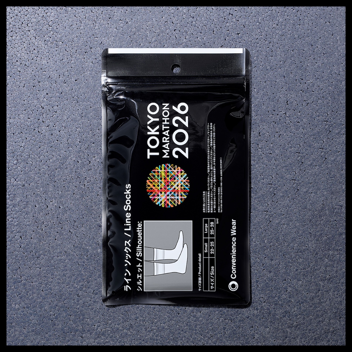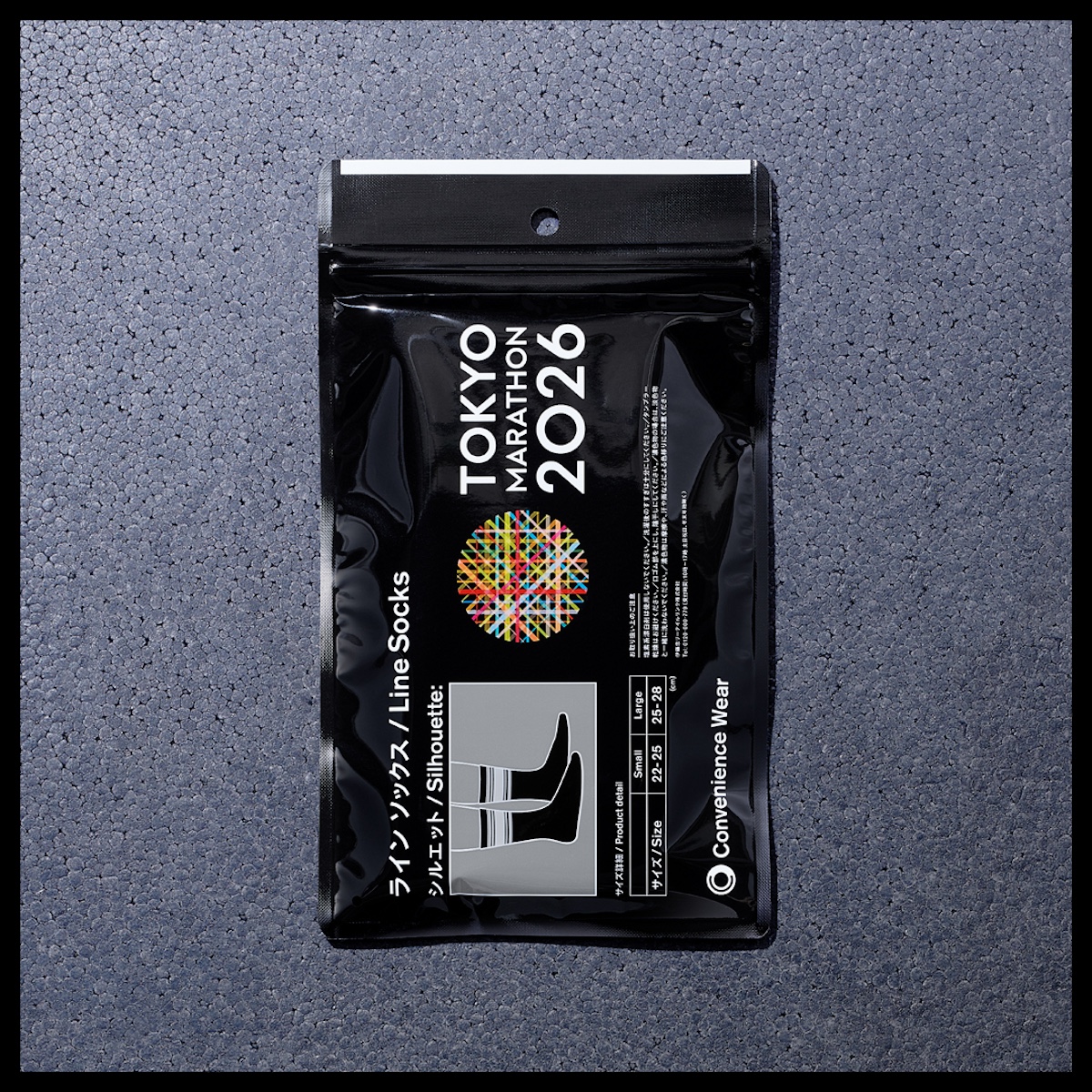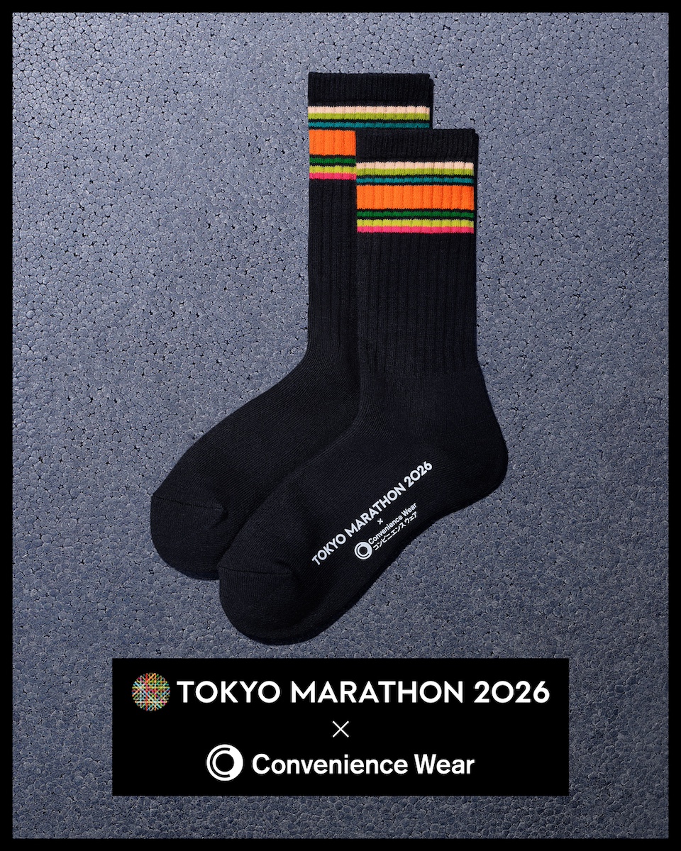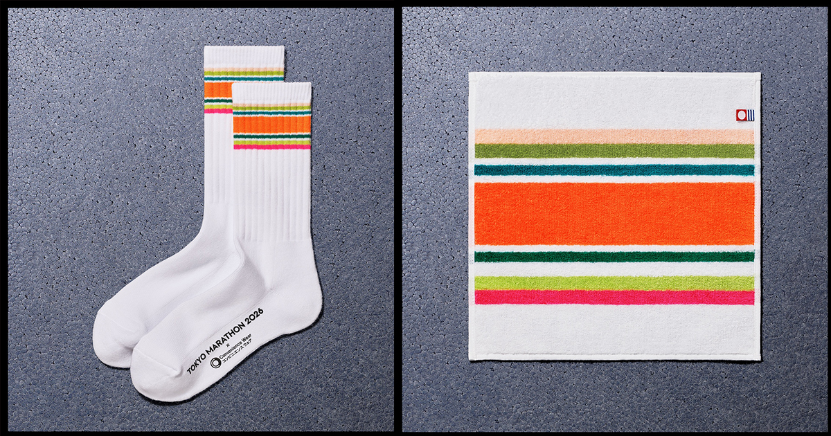「コンビニエンスウェア」を手掛ける落合宏理デザイナーは、「世界7大マラソンの一つである東京マラソンと『コンビニエンスウェア』の初のコラボレーションが全国で展開されます。スタートゲートの配色を落とし込んだラインソックスとタオルのデザインが、開催当日にランナーの皆さんと応援する方々の力になることを願っています」とコメントした。