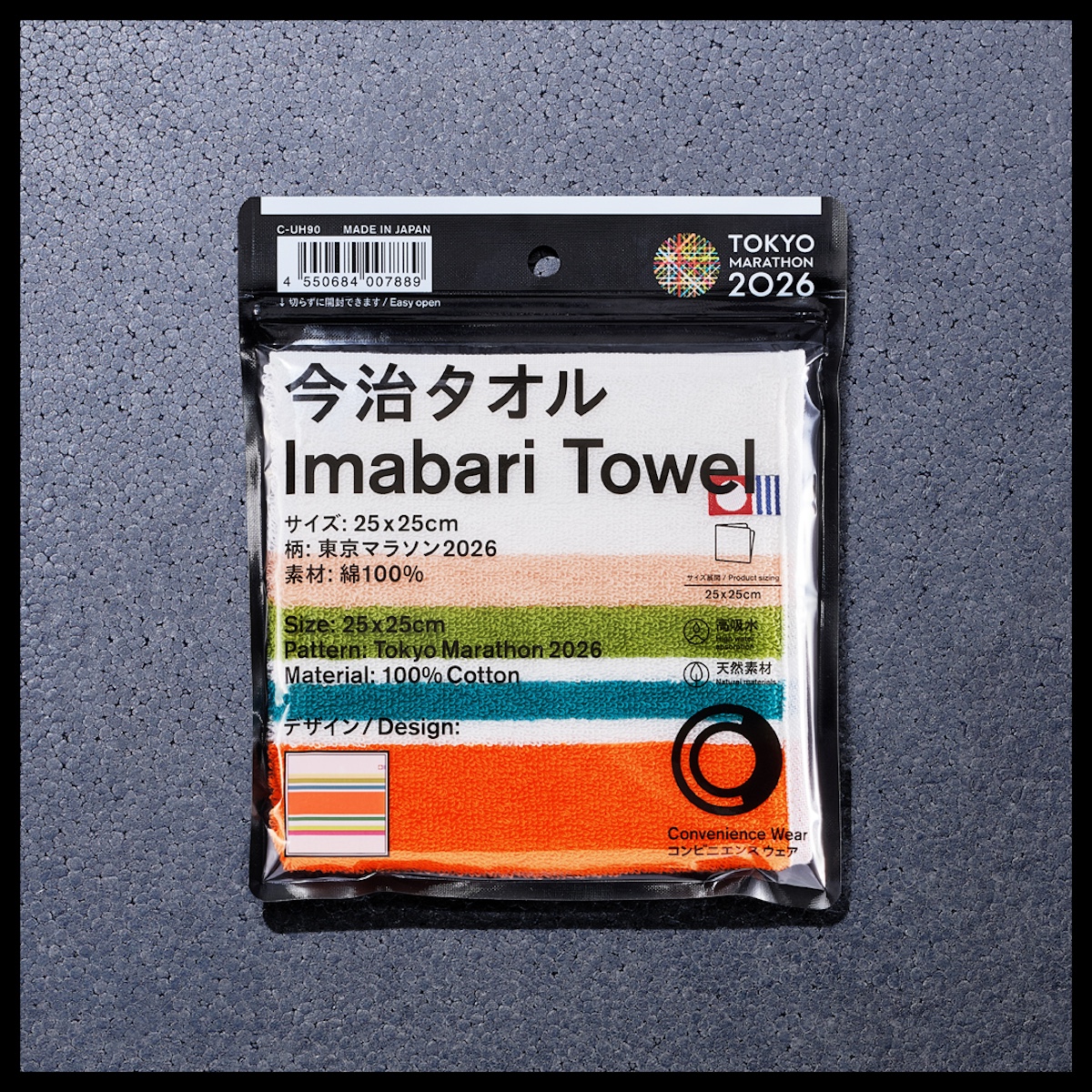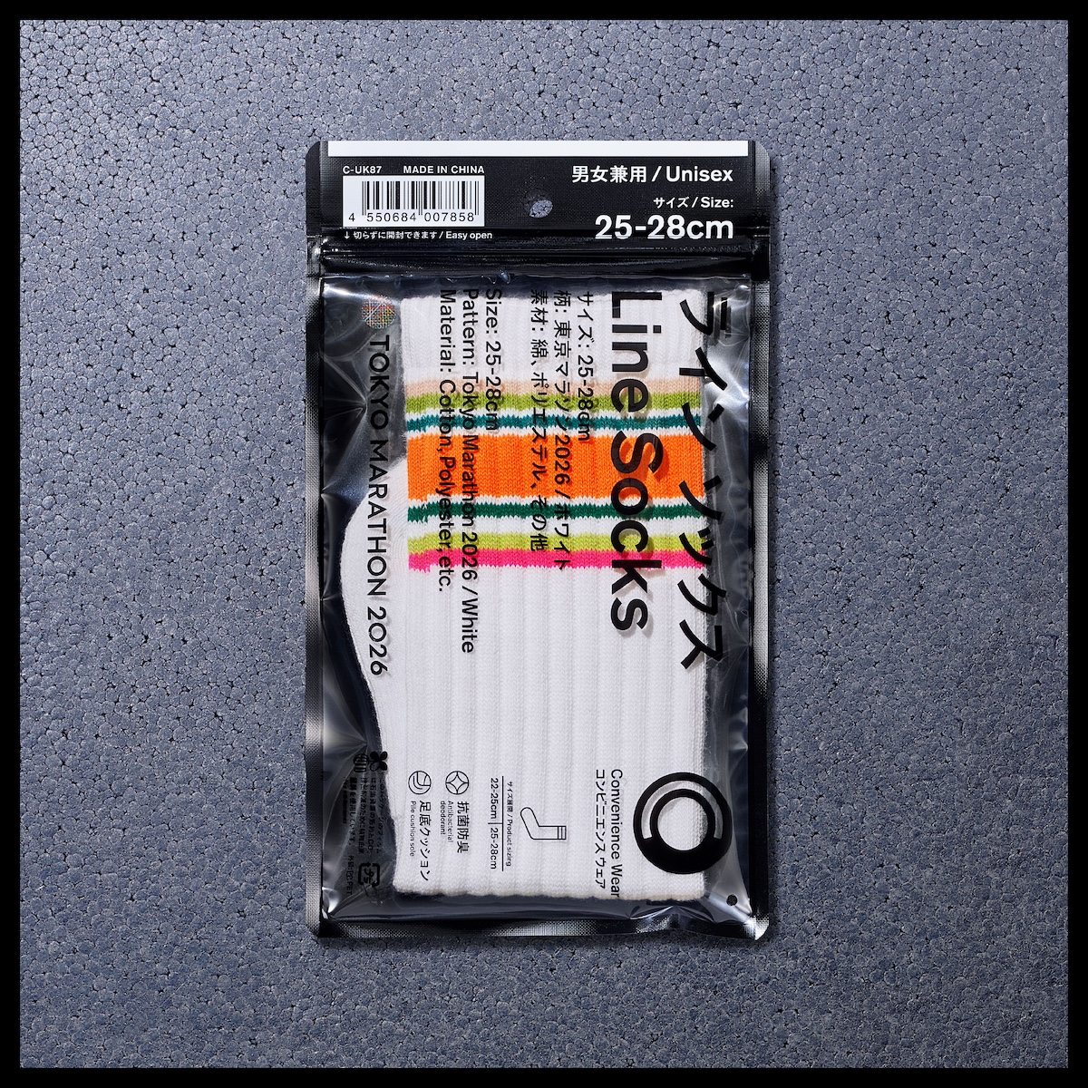今回登場するのは、「東京マラソン2026」を象徴するカラーリングを取り入れた“ラインソックス”(600円)、“今治タオルハンカチ”(800円)、“今治マフラータオル”(1500円)の3型(※今治タオルハンカチ、今治マフラータオルは東京限定での展開)。東京の街や大会期間の高揚感を日常の中で楽しめるデザインに仕上げ、スポーツイベントを“応援する文化”として取り入れる新しいスタイルを提案する。
