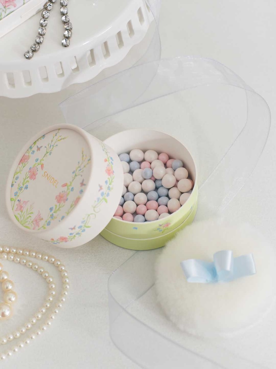 “エターナル ラディアンス パウダー”(限定1色、4620円)は3色のカラーボールが混ざり合うことで、繊細な艶と輝きをかなえる「スナイデル ビューティー」初のボディーパウダーだ。素肌の凹凸や毛穴をぼかしながら、汗や皮脂を抑えてサラッとした艶肌をキープする。