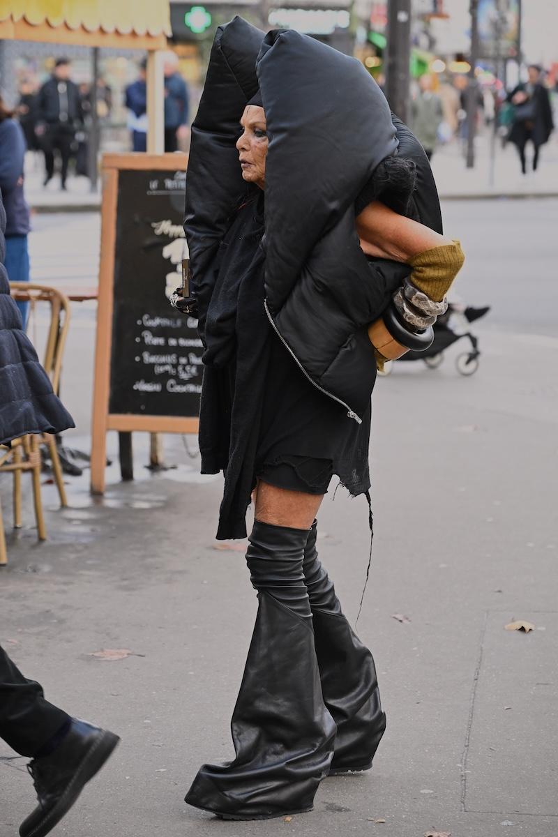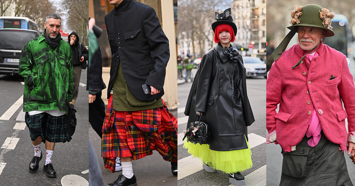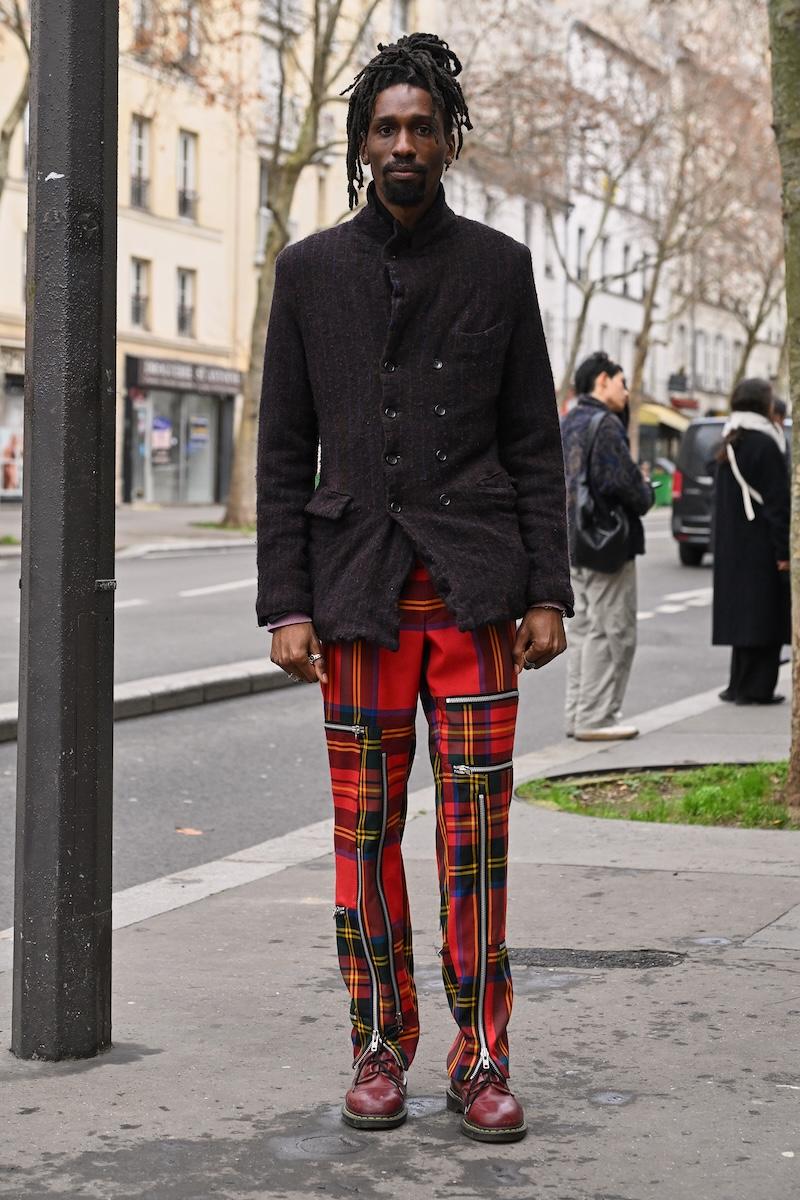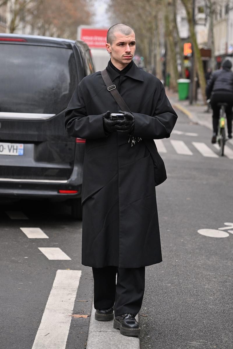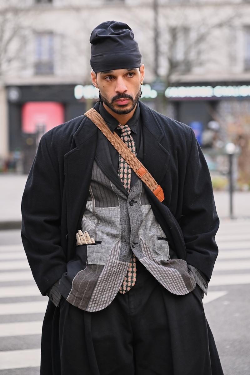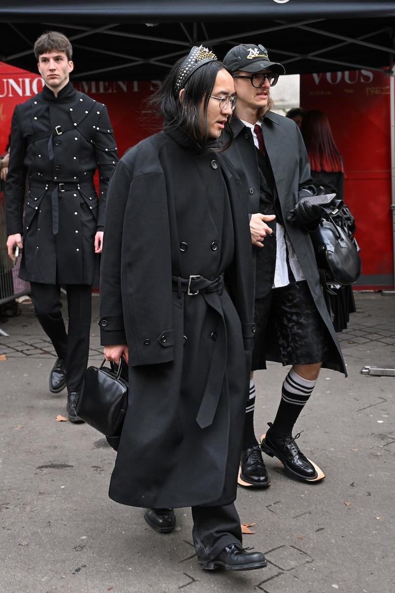最新シーズンのアイテムに過去のコレクションをミックスし、同日にショーを行った「ジュンヤワタナベ(JUNYA WATANABE)」を交差させる装いも多く見られた。足元では、「キッズ ラブ ゲイト(KIDS LOVE GAITE)」との前衛的なコラボレーションシューズが存在感を発揮。さらに加えて、同ブランドのショーでも帽子を手掛ける、パリ拠点の日本人デザイナーによる「ヒヅメ(HIZUME)」のヘッドピースでスタイリングを完成させている。