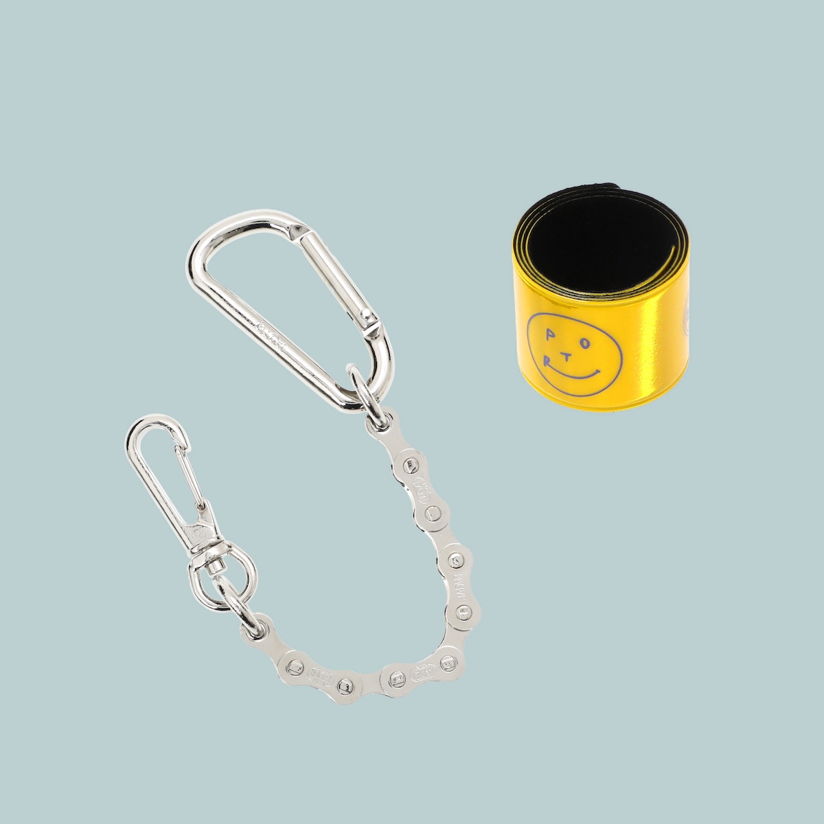 ロールバッグを除く各アイテムには、競技用の自転車チェーンを使用したオリジナルチェーンが付属。100年以上の歴史を持つトップブランド「和泉チエン」製で、バッグや小物、パンツのベルトループなどに取り付けて使用できる。さらに、内装には90周年を記念したタグをあしらい、同様のタグを縫い付けたオリジナル巾着が付属する限定仕様とした。