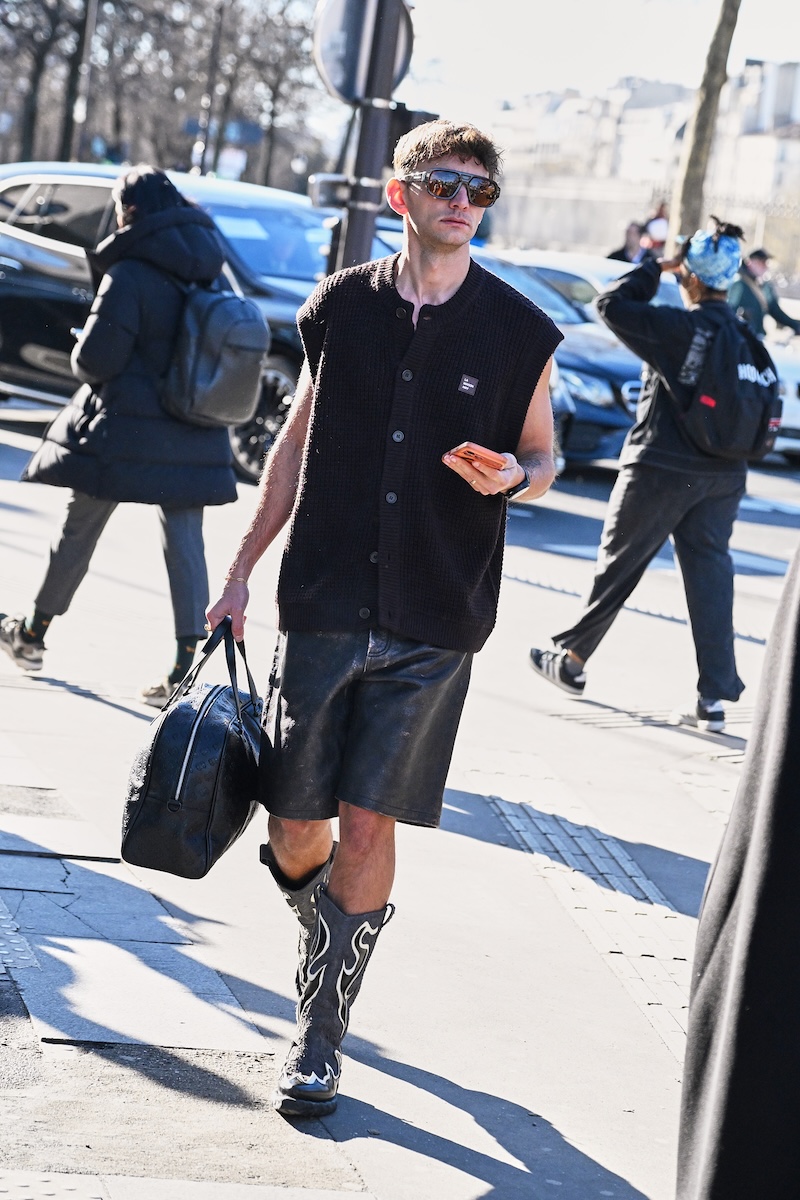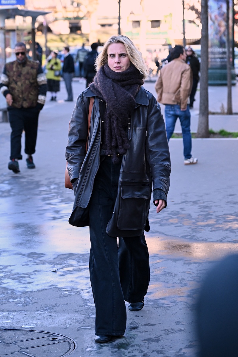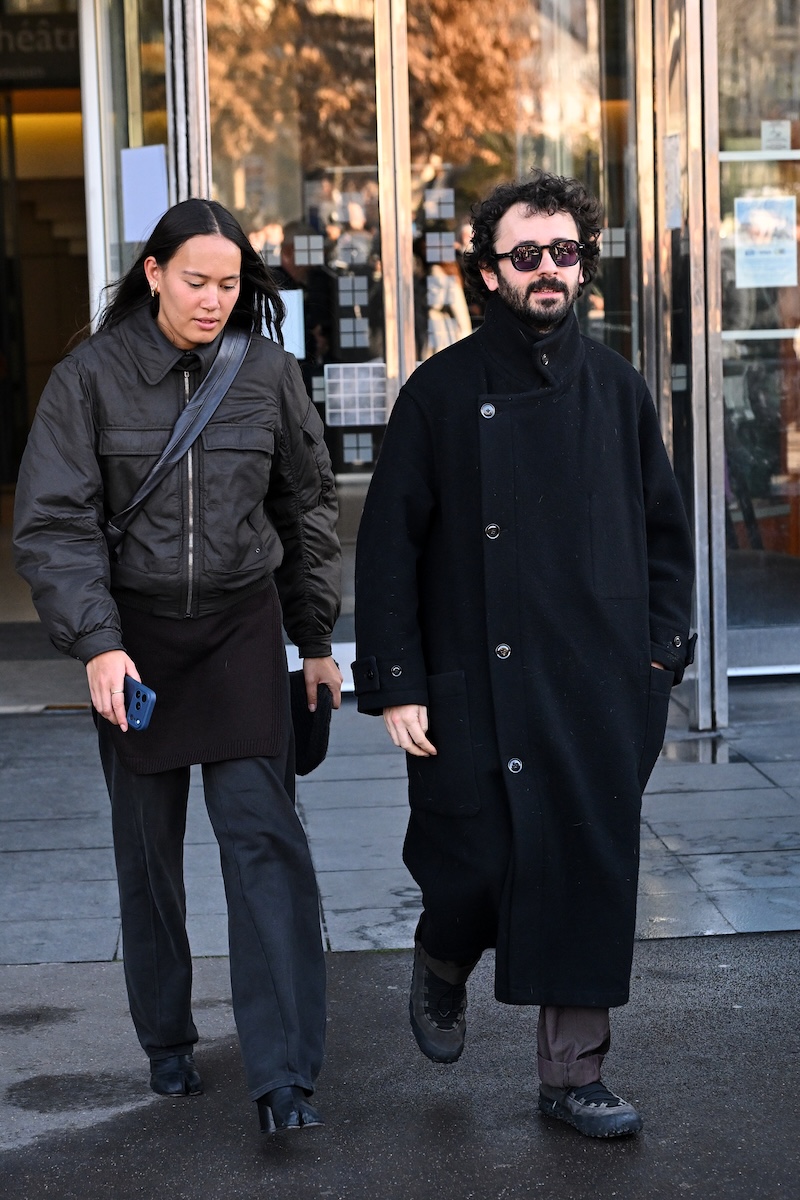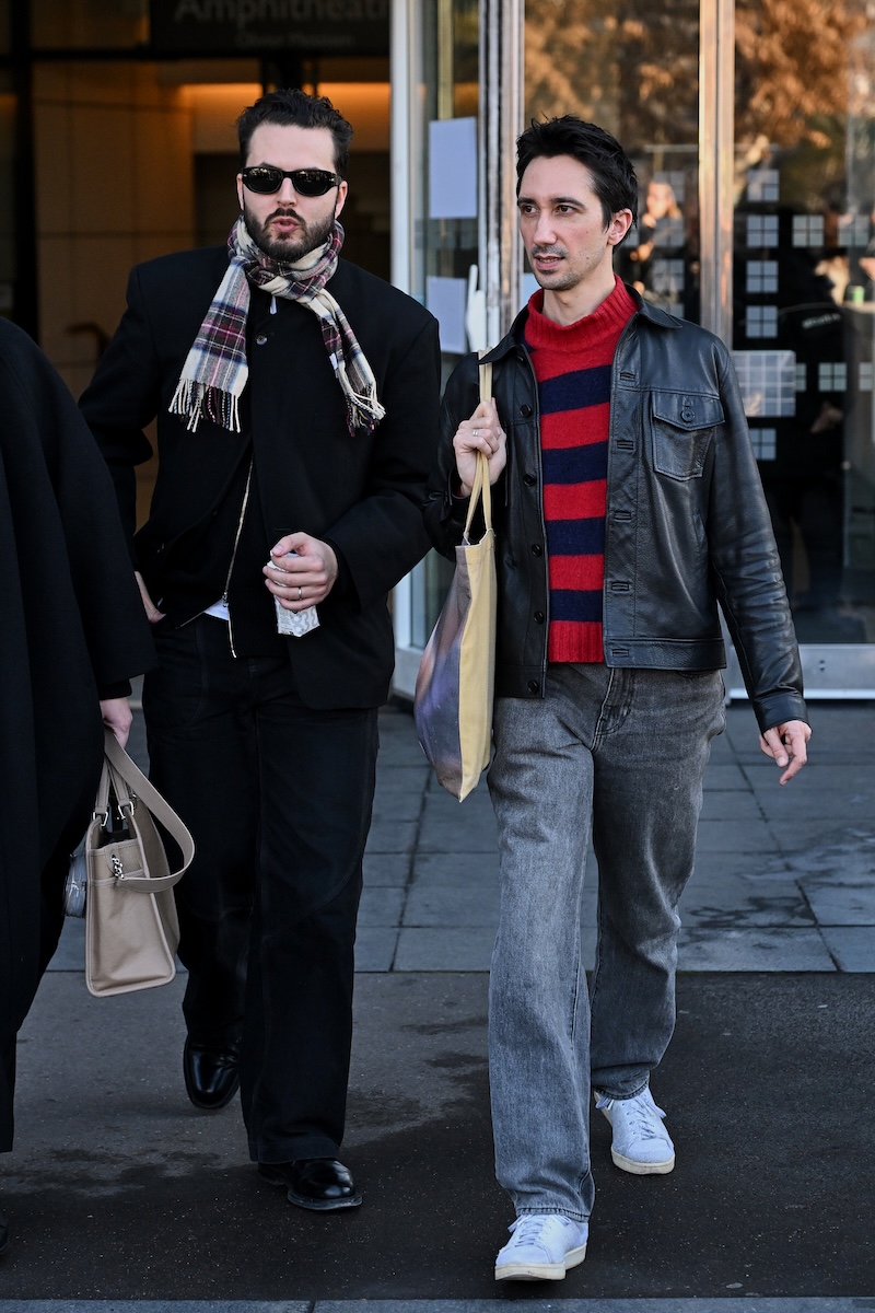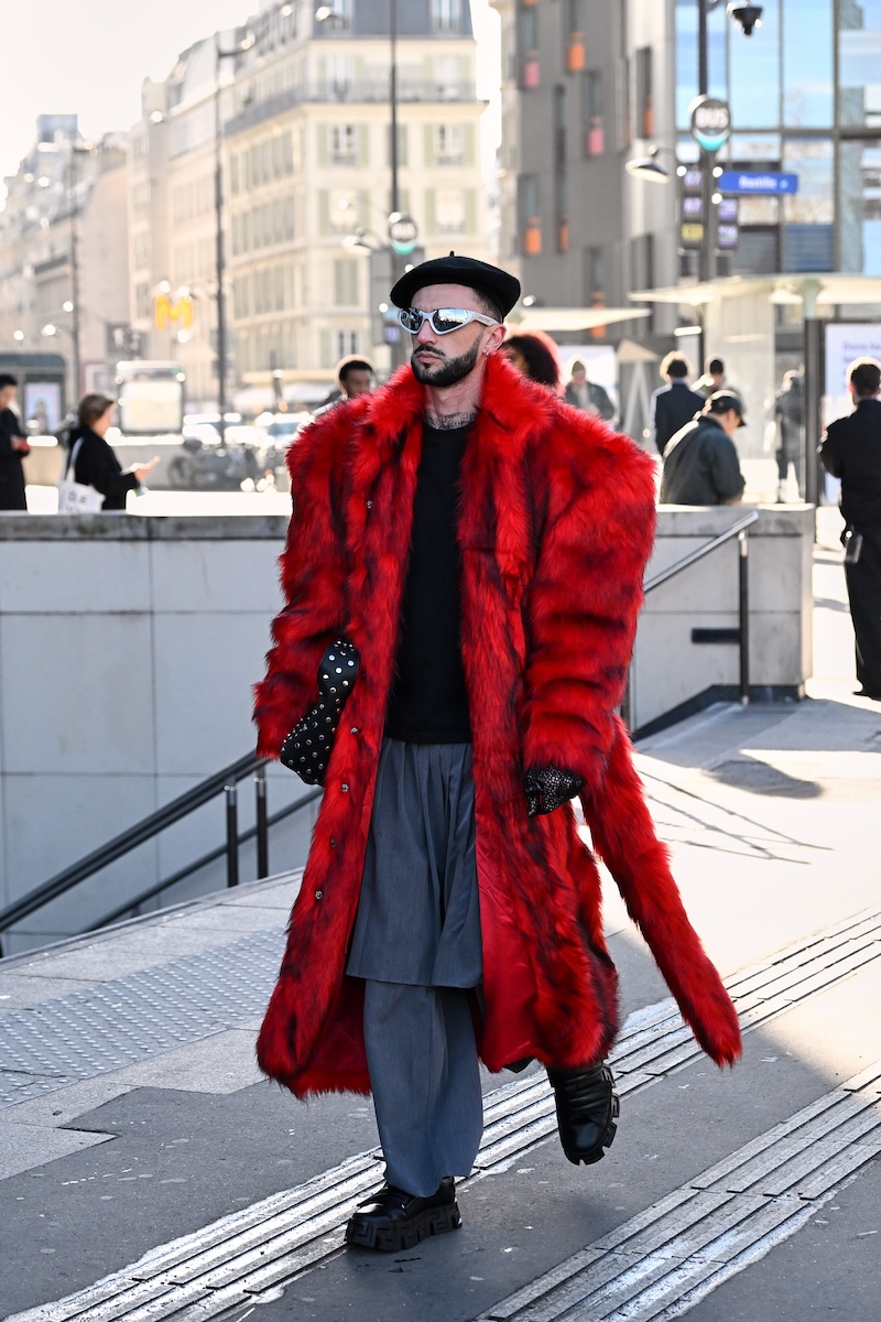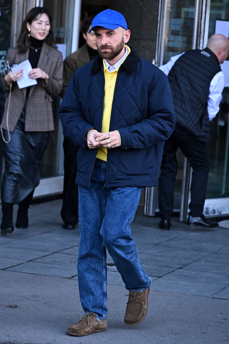 「ルメール(LEMAIRE)」は、2026-27年秋冬メンズ・コレクションをパリで現地時間1月21日に発表した。会場周辺に集ったゲストのスタイルで目立ったのは、黒やブラウン、深みのあるグリーンといったダークトーンを軸にしたレイヤリングだ。厚手のコートの下にニットやシャツを重ね、色数を抑えながらも素材感と分量で奥行きを生む着こなしが多く見られた。全体を貫いていたのは、ワークウエアに由来する実用的なアイテム群。無骨さを残しつつも、シルエットやバランスによって都会的に昇華されている点は、「ルメール」ならではのアプローチといえる。中でも支持を集めていたのがラップコートで、身体を包み込むような構築が印象的だった。その他のアウターも総じてゆったりとしたオーバーサイズで、力の抜けたエフォートレスなムードを醸し出している。足元はレースアップを中心としたクラシックなレザーシューズが主流。差し色としてマフラーを効かせるスタイリングも多く、ダークトーンの装いにさりげないリズムを添えていた。
