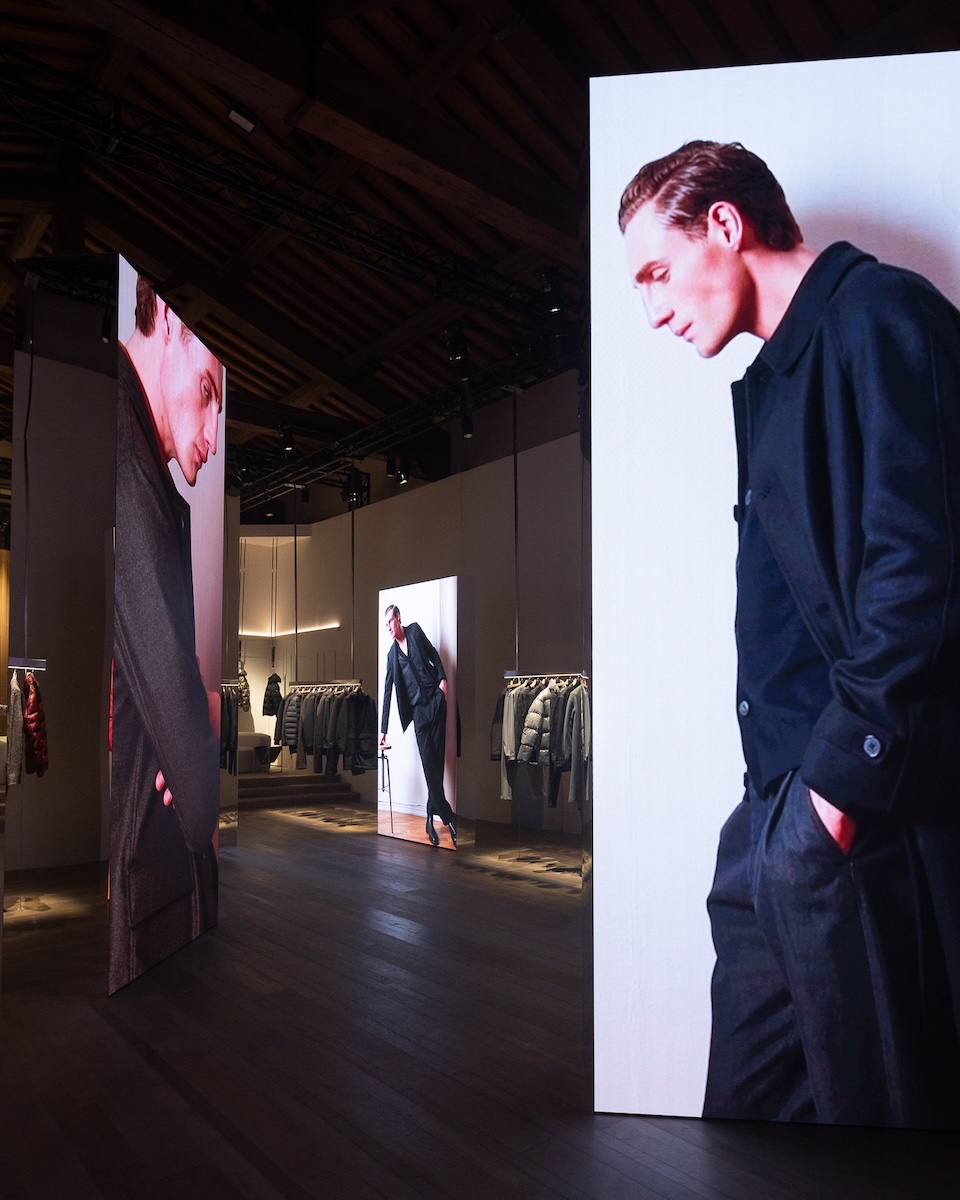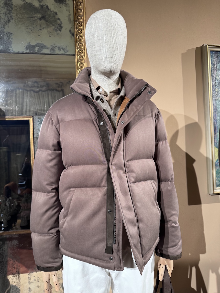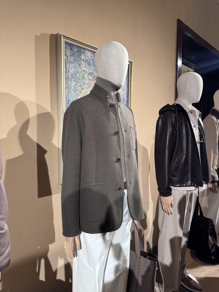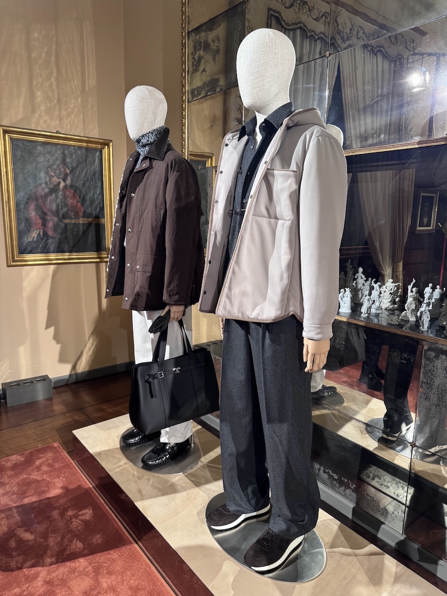 個人的に注目したのは、「アドバンスト」ラインに見られた、濡れたような光沢を放つグロッシーなダウンジャケットです。特に新モデルの“アブソリュート・ブラック”は、合繊素材では表現が難しい「究極の黒」を追求。1型1色のみの展開という潔さが、スポーティーな枠を超えたモードな迫力を生み出していました。イタリアの老舗らしい職人技と、現代の気候やマーケットに即応する柔軟さ。「ヘルノ」ならば、暖冬という逆境さえスタイルの味方に変えてしまいそうですね。